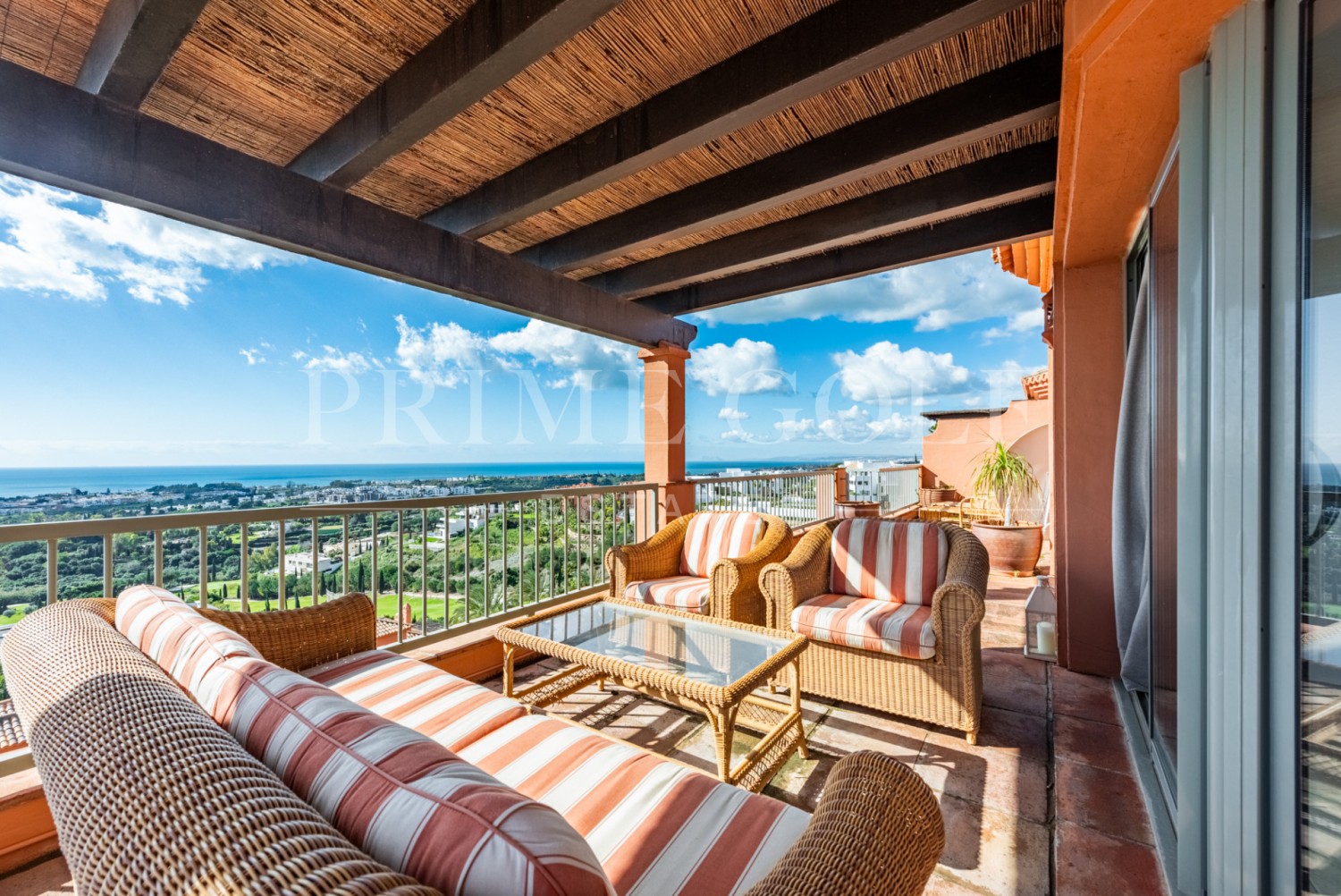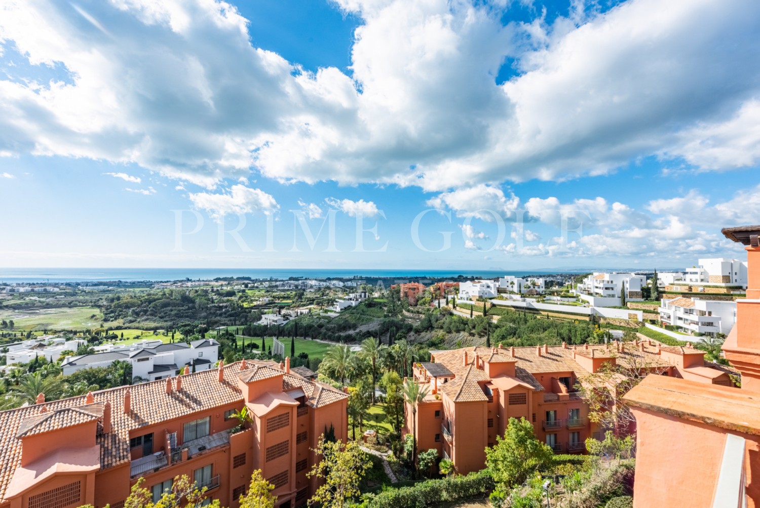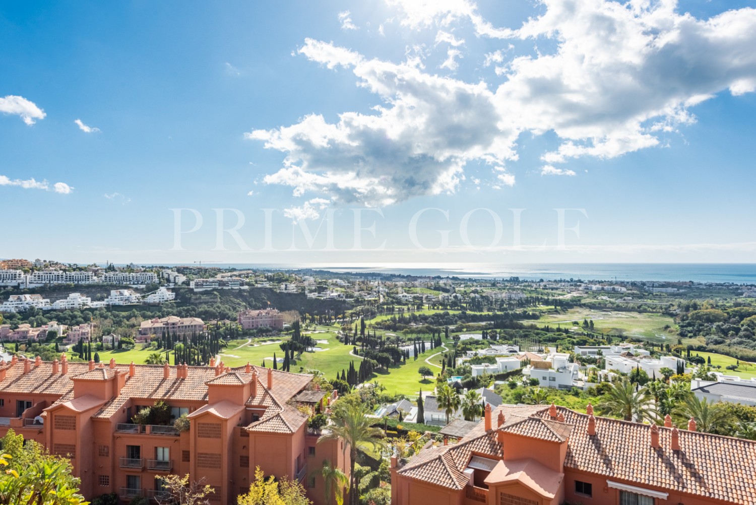 Located within the prestigious Royal Flamingos community in Benahavis, Malaga, this exquisite penthouse offers an unparalleled blend of luxury, comfort, and breathtaking scenery. Rarely do properties in these highest located buildings, boasting the most captivating views, come onto the market. Situated within the renowned Los Flamingos/Villa Padierna resort, this home is a true gem. The property features a wrap-around terrace, allowing you to soak in panoramic views of the sea, mountains, golf course, and even a serene lake. All living accommodation and terraces are conveniently located on one level, making it a perfect choice for those seeking ease and elegance.