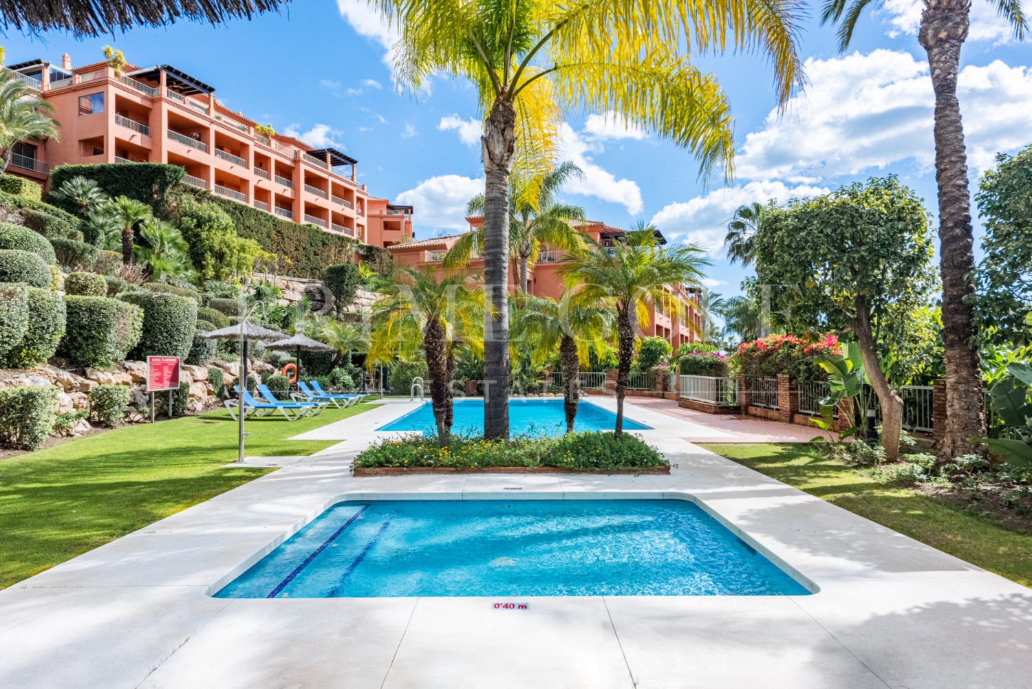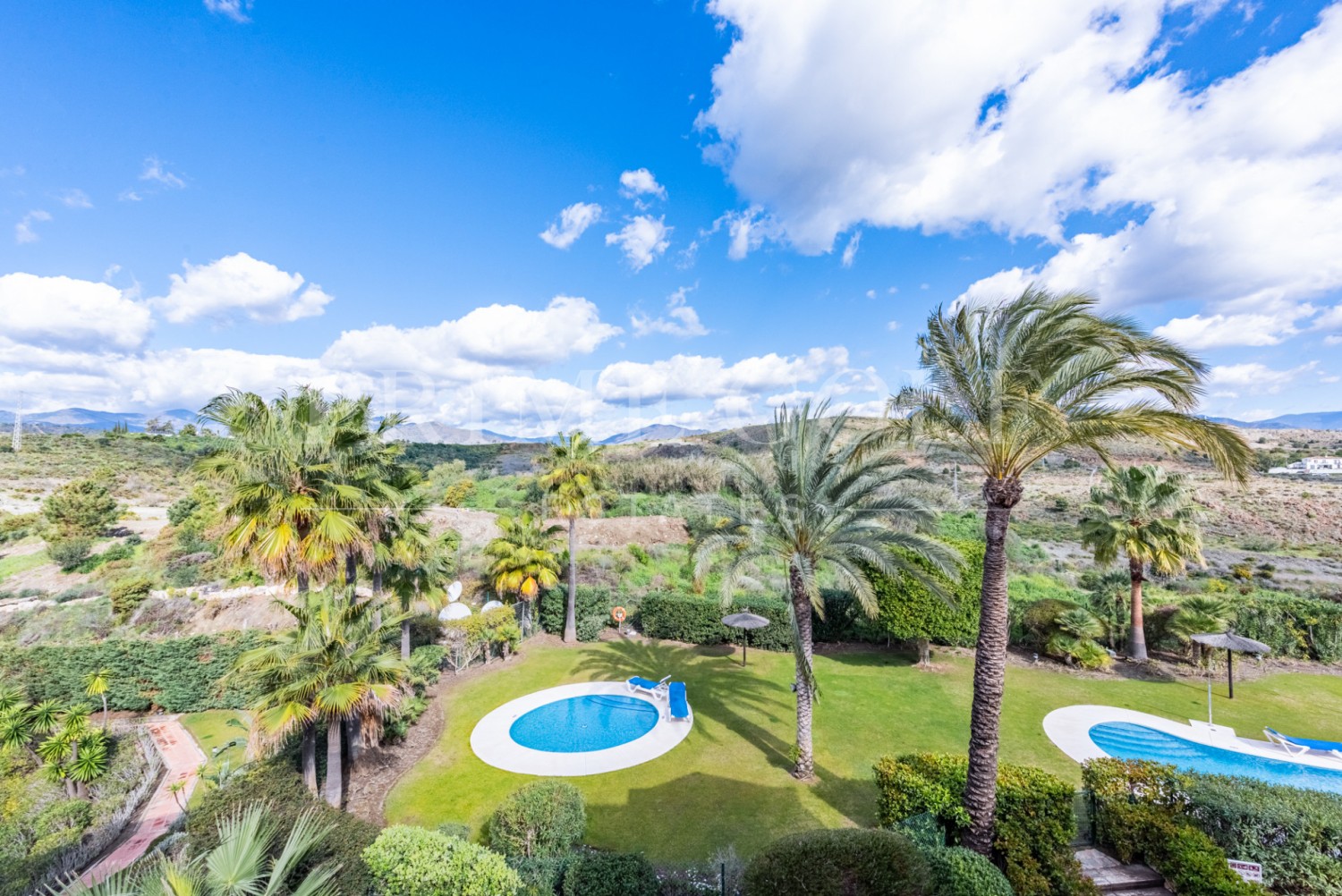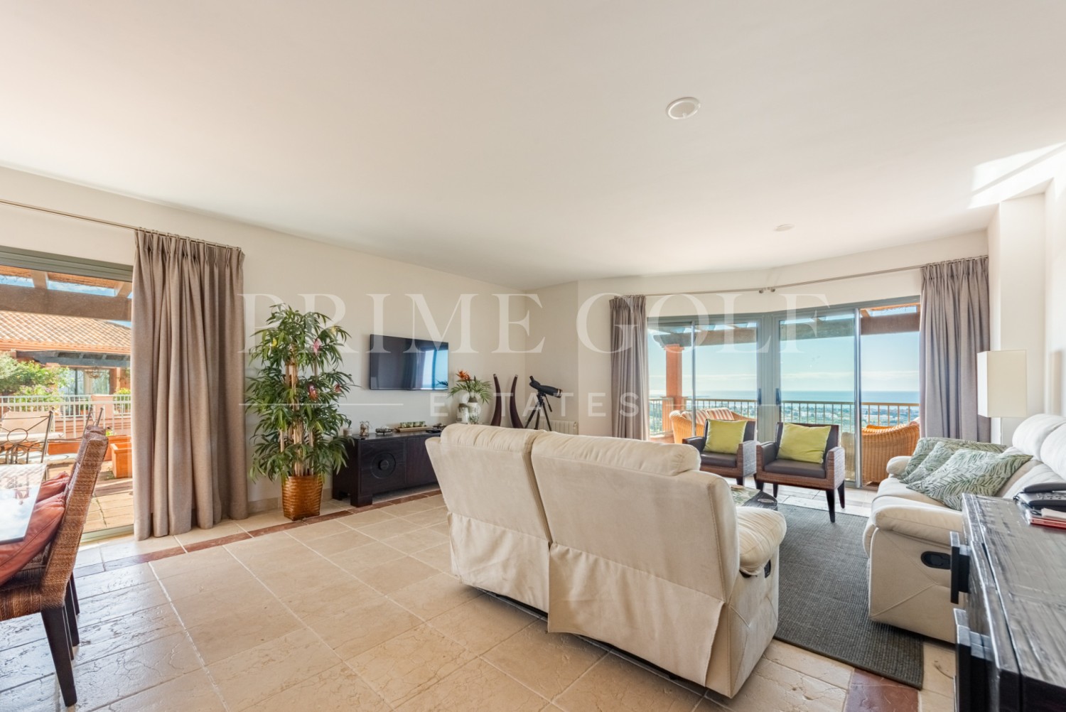 Located within the prestigious Royal Flamingos community in Benahavis, Malaga, this exquisite penthouse offers an unparalleled blend of luxury, comfort, and breathtaking scenery. Rarely do properties in these highest located buildings, boasting the most captivating views, come onto the market. Situated within the renowned Los Flamingos/Villa Padierna resort, this home is a true gem. The property features a wrap-around terrace, allowing you to soak in panoramic views of the sea, mountains, golf course, and even a serene lake. All living accommodation and terraces are conveniently located on one level, making it a perfect choice for those seeking ease and elegance.