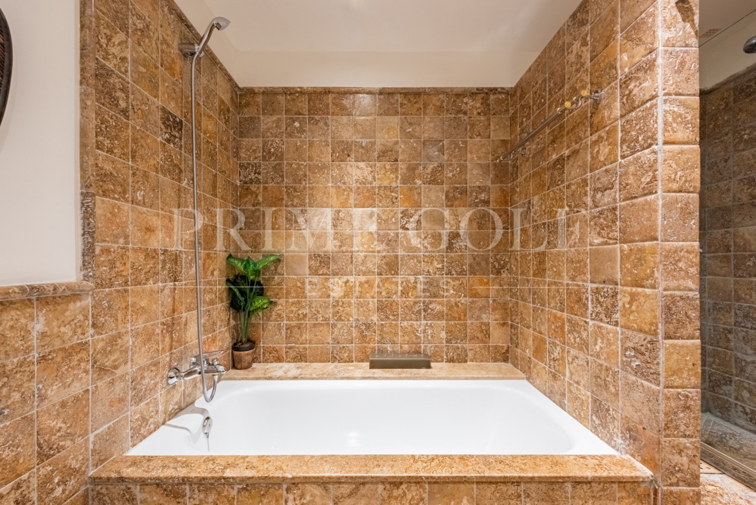 The penthouse spans an impressive 156m² of built space, complemented by a vast 142m² terrace. It comprises three spacious bedrooms and three bathrooms, two of which are en-suite, ensuring privacy and comfort for all residents. The interiors are designed with sophistication, featuring marble floors, fitted wardrobes, and a fully fitted kitchen equipped to meet all your culinary needs. The property is in excellent condition, with optional furniture available to suit your personal style.