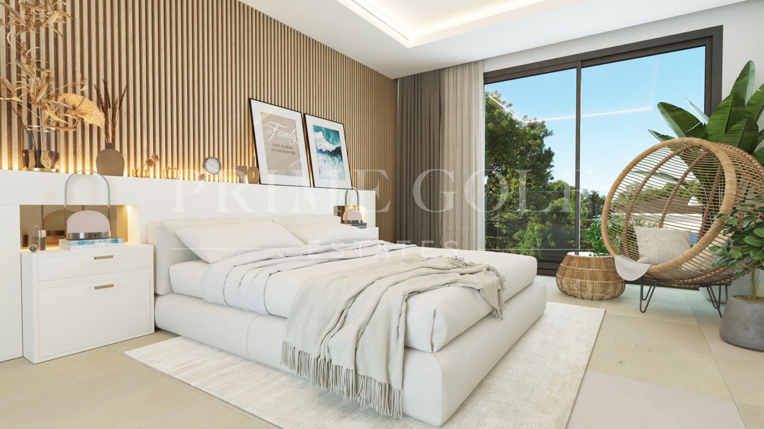 This stunning luxury Villa SRC 81 is located in the prestigious San Roque Club, 10 minutes from Sotogrande. With its prime front line golf position, this villa offers breathtaking views of the golf course and panoramic vistas. The property boasts a spacious plot area of 2.104m², providing ample space for comfortable living. The villa features 4 bedrooms, each with its own ensuite bathroom and dressing room, ensuring privacy and convenience for all residents.