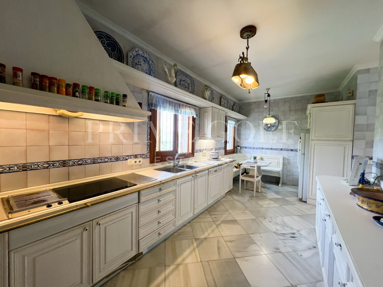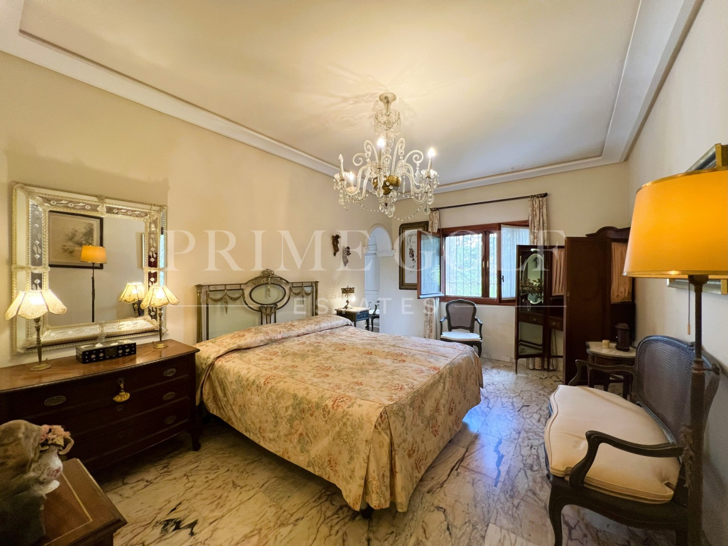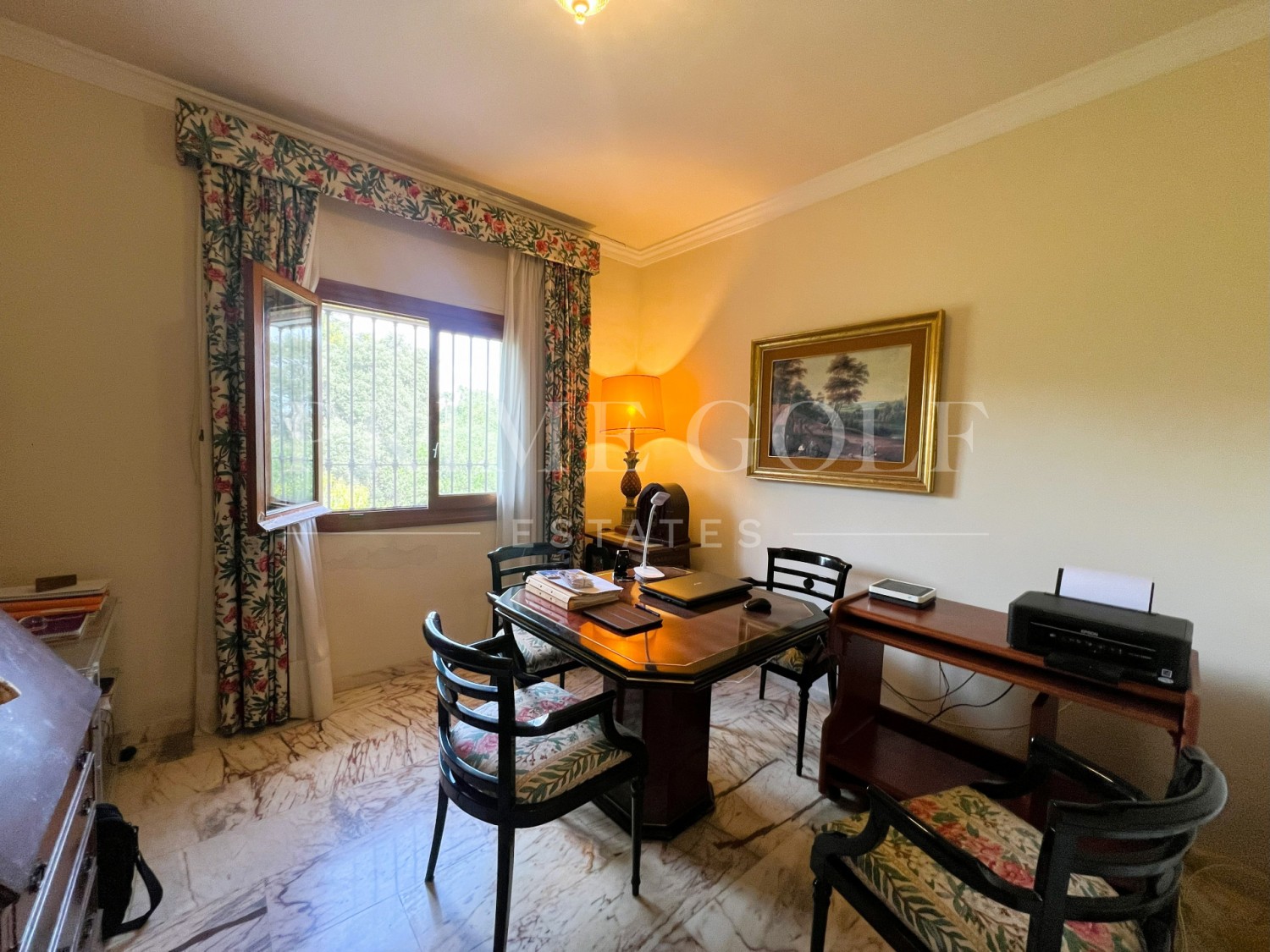 The villa offers a generous built area of 414m² on a substantial plot of 1,628m², providing ample space for comfortable family living and entertaining. Inside, there are four spacious bedrooms and three bathrooms, as well as an additional guest toilet. The property includes a private garage, a well-maintained private garden, and benefits from an advanced alarm system for added peace of mind. Although the villa requires renovation, it provides the perfect canvas for personalisation, allowing new owners to design their dream home to exact specifications.