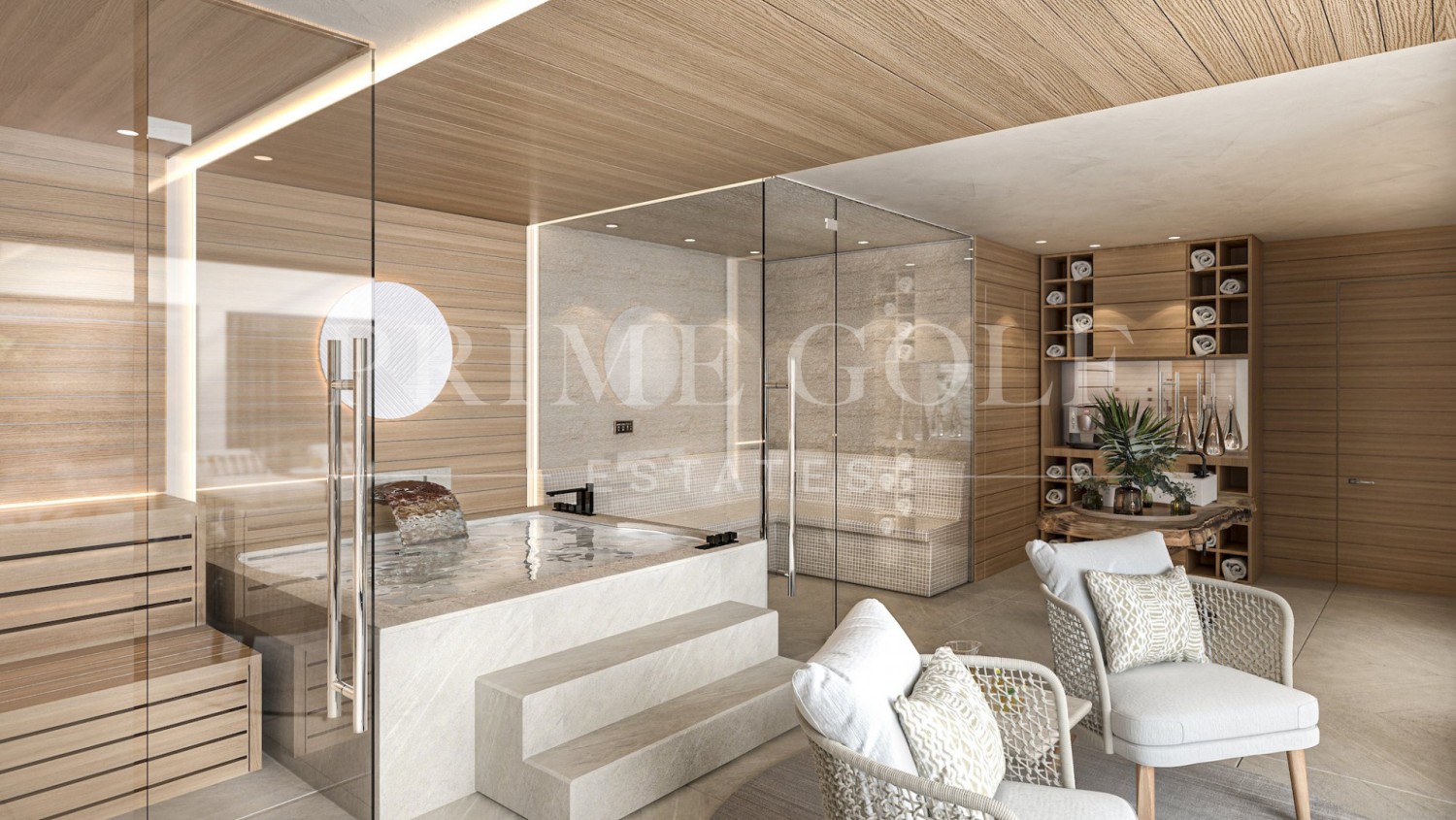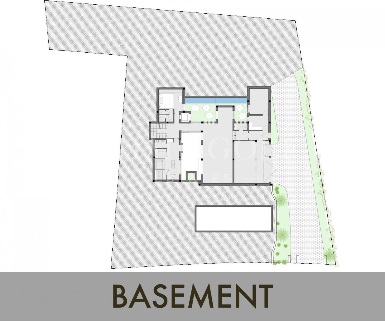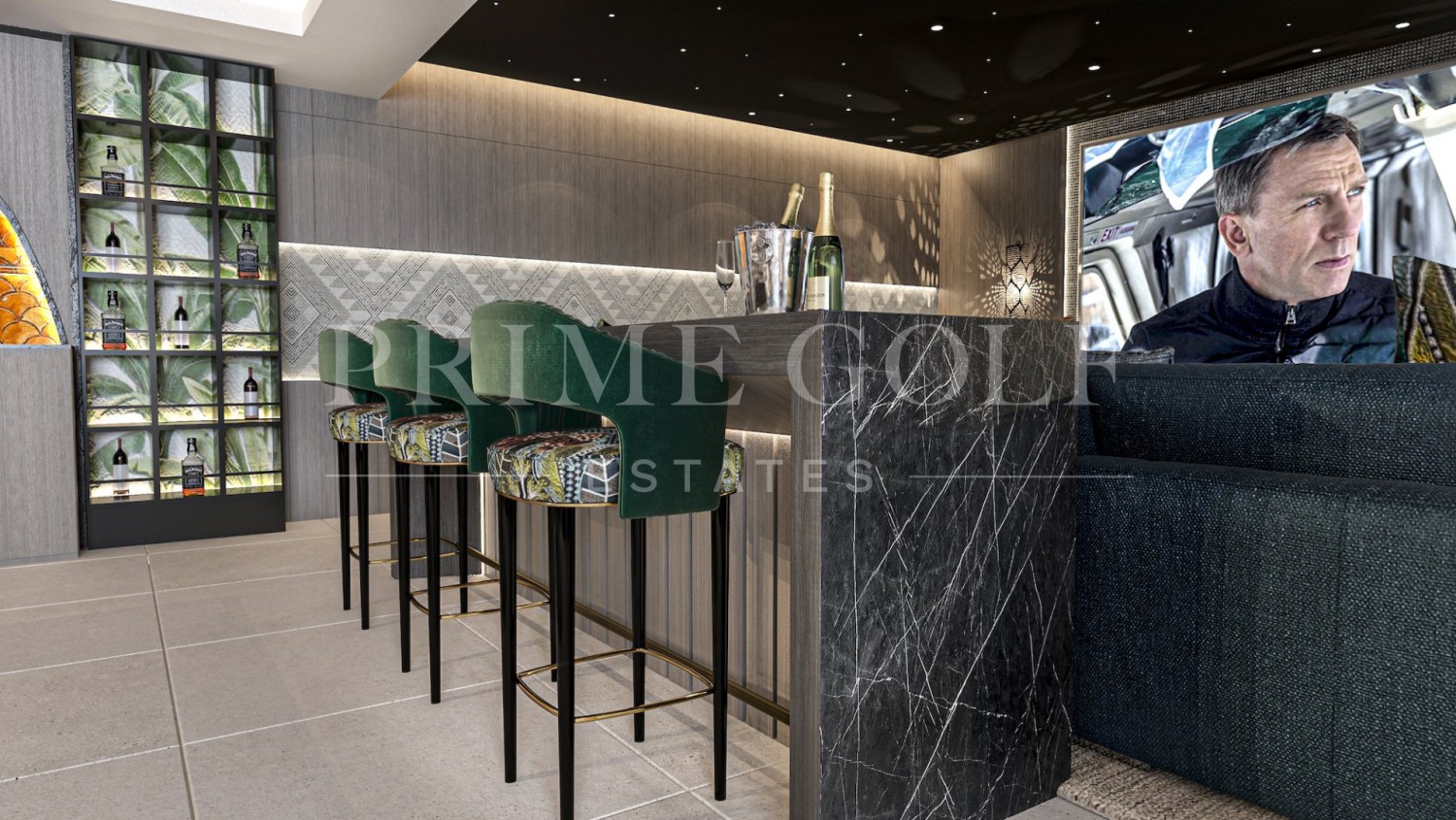 The basement got everything you could wish for, entertaining your family and friends. Coming down the stairs you are immediately welcomed by two interior garden areas with water features, nicely dividing up the spa with sauna and hamman and the large playroom with cinema, wine cellar and bar. Further in the basement you have the fifth bedroom en-suit, a large garage for 3-4 cars, the laundry and technical room.