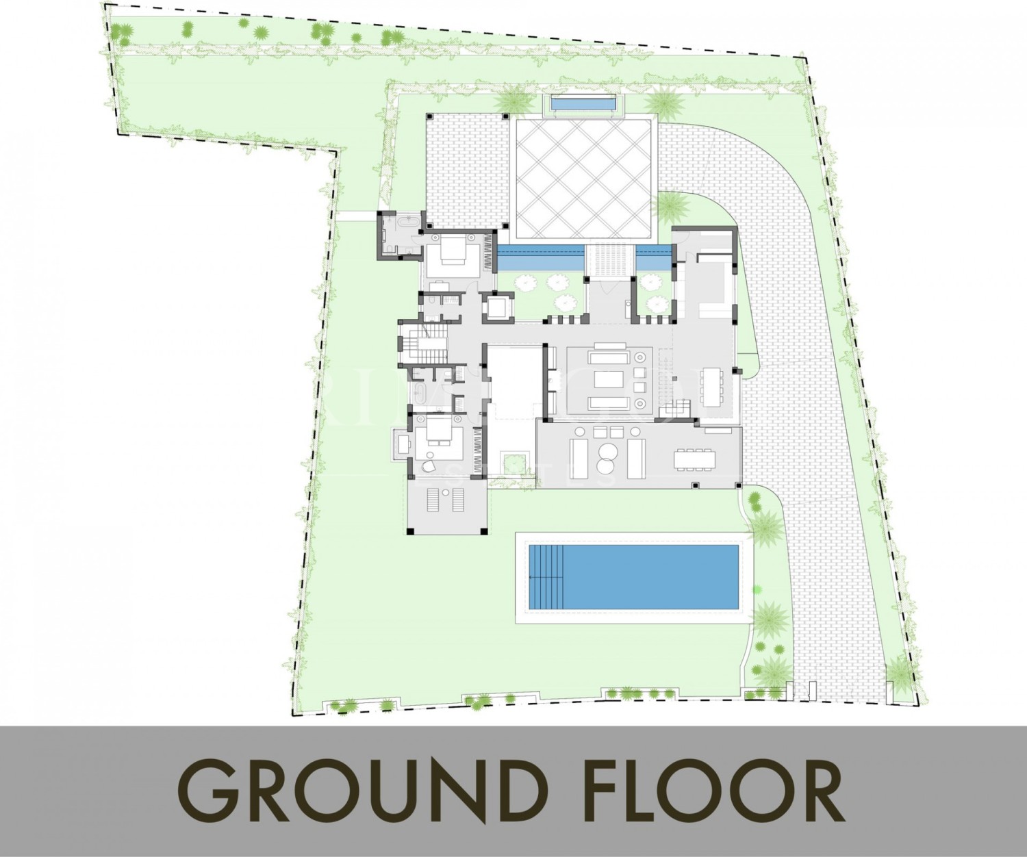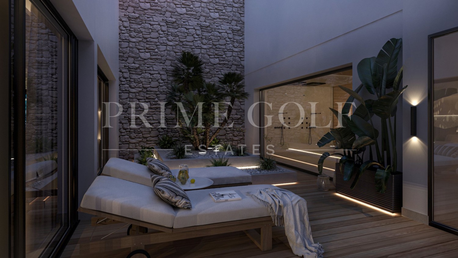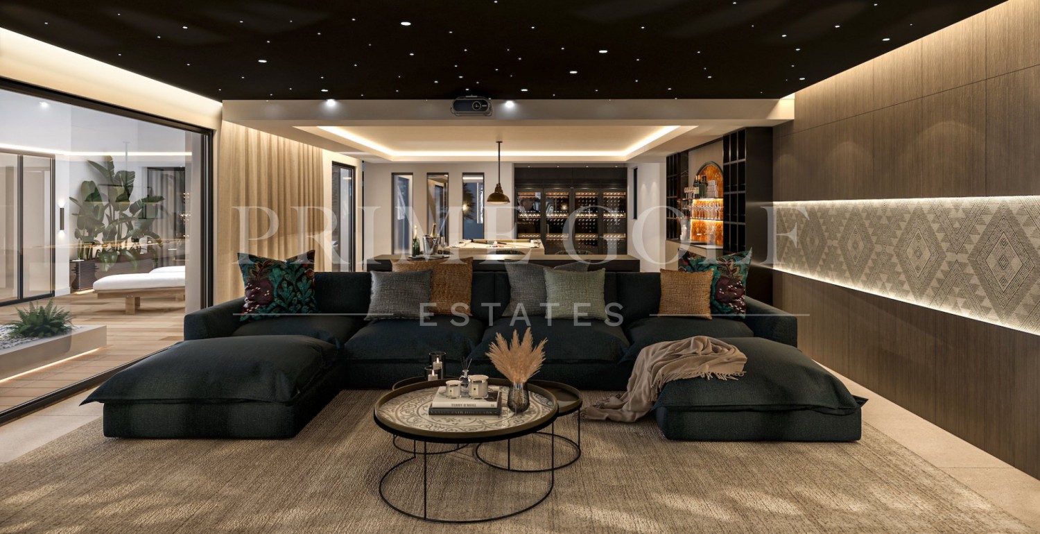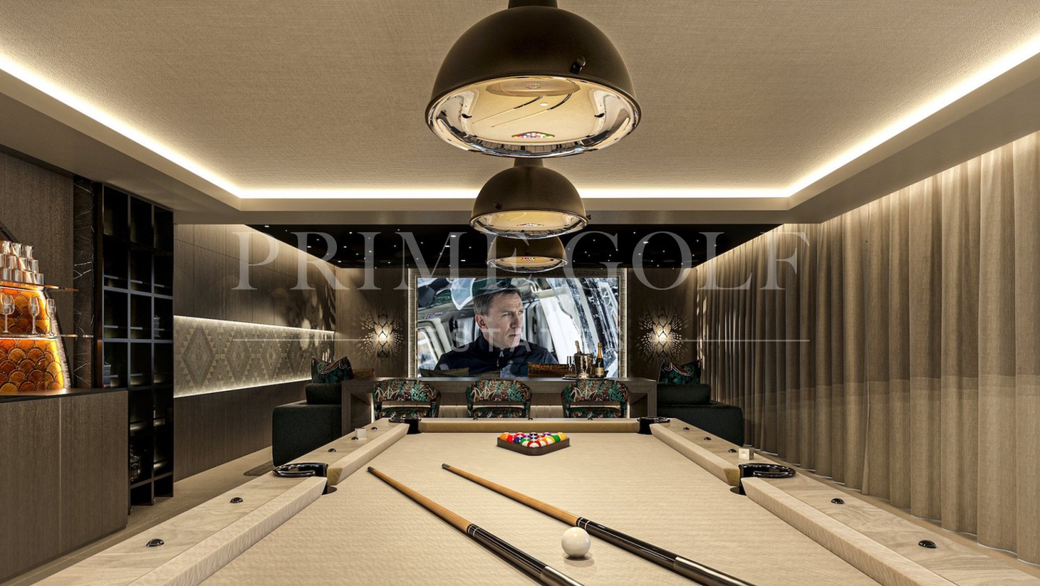 The basement got everything you could wish for, entertaining your family and friends. Coming down the stairs you are immediately welcomed by two interior garden areas with water features, nicely dividing up the spa with sauna and hamman and the large playroom with cinema, wine cellar and bar. Further in the basement you have the fifth bedroom en-suit, a large garage for 3-4 cars, the laundry and technical room.