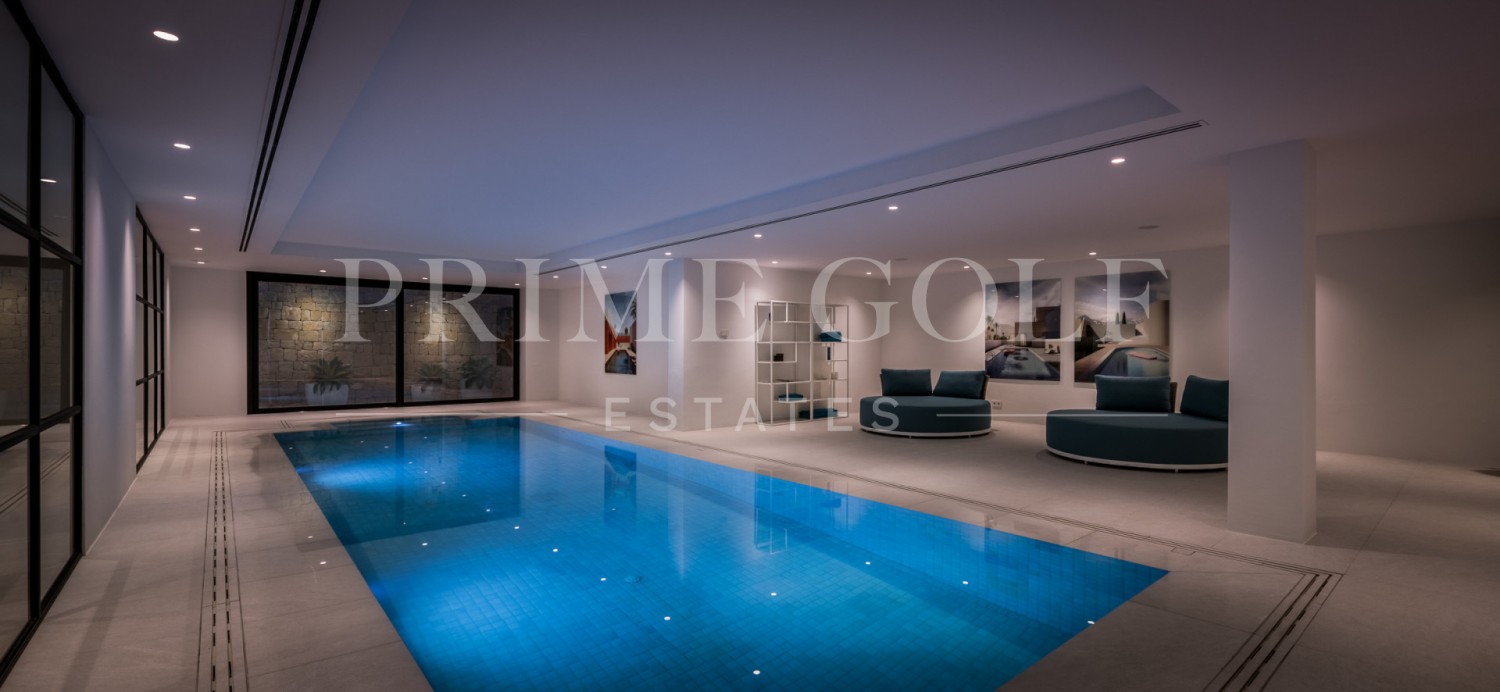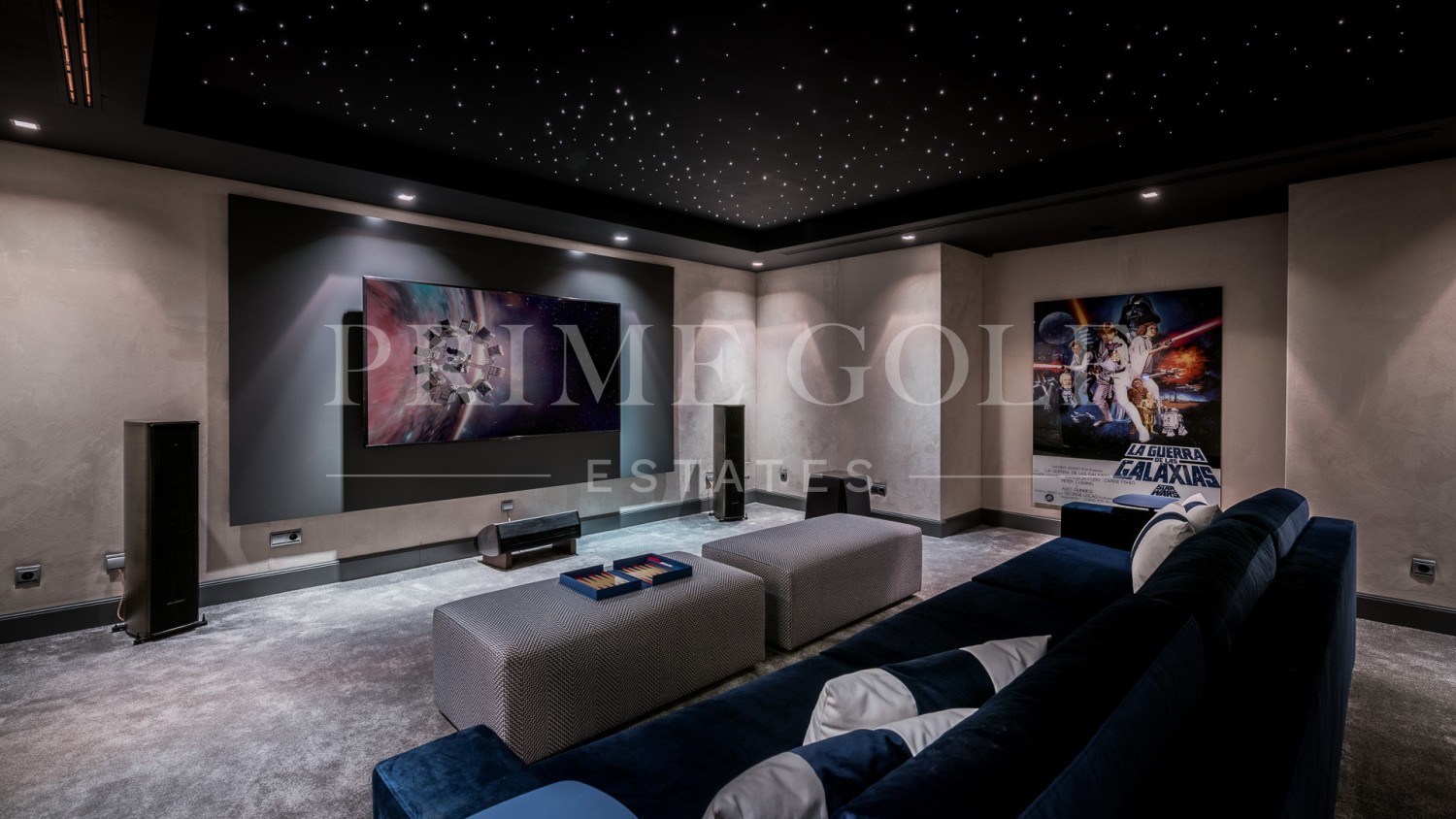 On the lower floor are facilities usually associated with a property in La Zagaleta, which are highly sought-after amenities rarely found in this location. An internal patio and an adjacent chill-out area provide a full-size indoor pool with natural light and ventilation, which could also be used as a yoga / treatment area. A beautiful sauna and shower area is accessed via the pool area, and an enormous professionally equipped gymnasium overlooks the indoor pool. This level also features an equipped wine bodega, a luxurious home cinema, a laundry room and a garage for 2/3 cars accessed by a separate private entrance and a large storage room. The mature garden has a beautiful pool with a shallow area for children, two sun decks for lounging, and ample space for children to play safely and in complete privacy from neighbours. La Cerquilla is the most prestigious community in Nueva Andalucia and is gated with 24-house video surveillance.