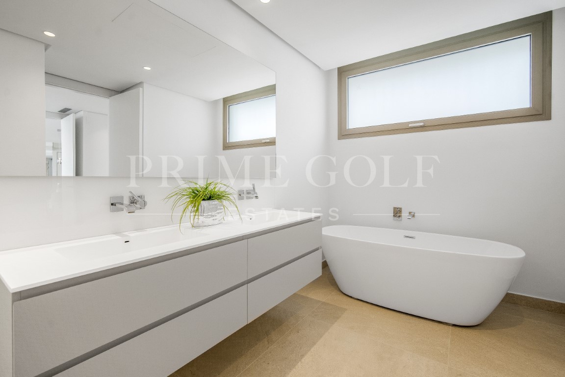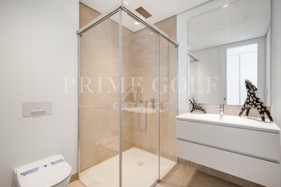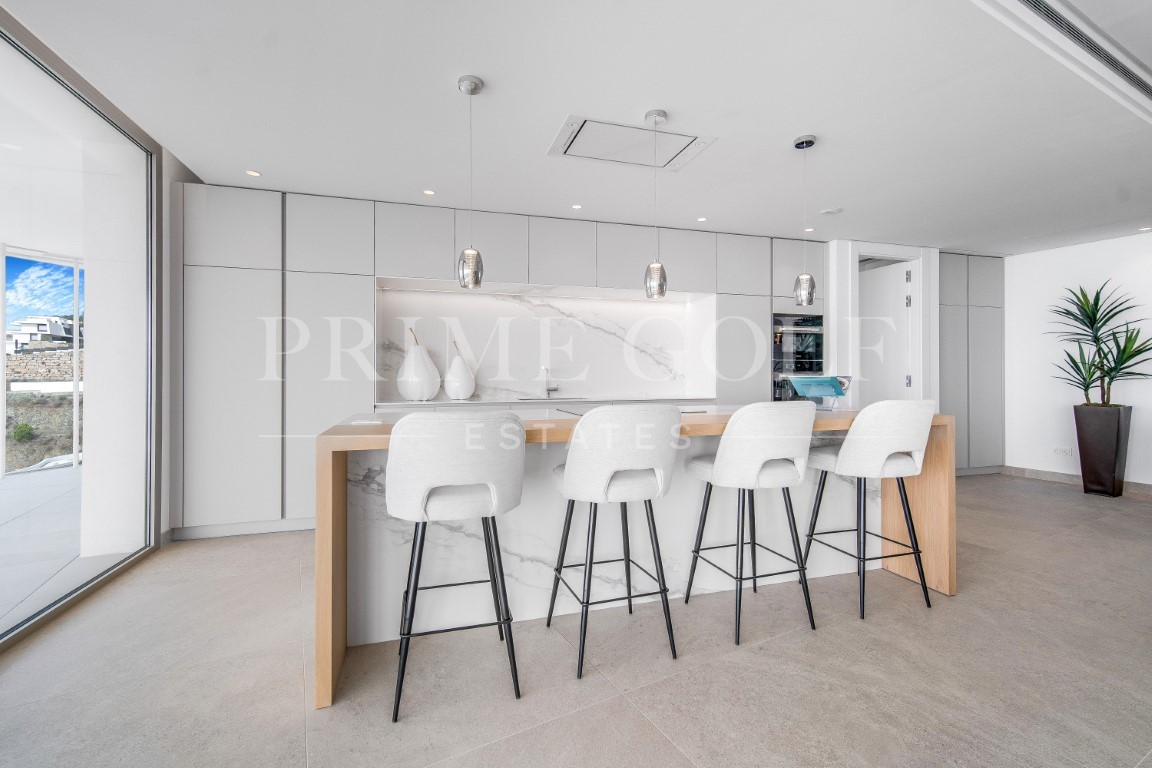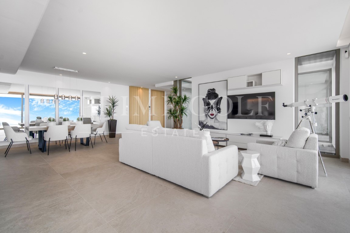 Luxury three bedroom apartment located in the brand new exclusive community The View. This award winning gated community is located in an elevated position above Marbella’s famous Golf Valley, in the hills of Benahavís with incredible panoramic views which stretches to the Mediterranean sea and beyond; and is only ten minutes drive to San Pedro and fifteen minutes to Puerto Banús. There is a full range of amenities available to owners including 24hr security, concierge service, health club with full spa, gym, indoor and outdoor pools, lush gardens and more. A property designed to optimize natural light with the highest quality materials and fixtures. Upon entering the property you have a spacious open plan living and dining area; open plan fully fitted kitchen with top of the range appliances; two master suites with access to the terrace; a guest suite; guest toilet; laundry room; and a multi purpose space which could be used as a home office. All rooms give access to the large terrace which boasts panoramic views. Other features include hot and cold air condition, underfloor heating throughout, two private parking space and two store rooms. An incredible property perfect for year round living or a holiday home.