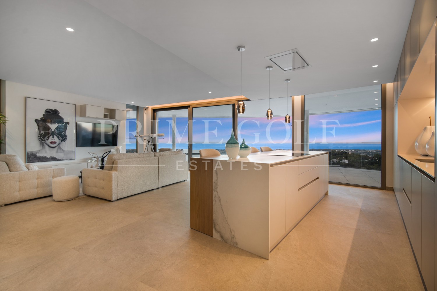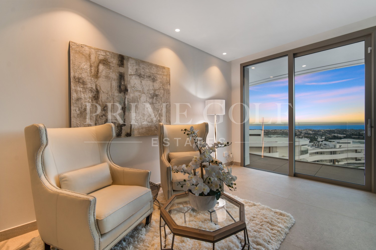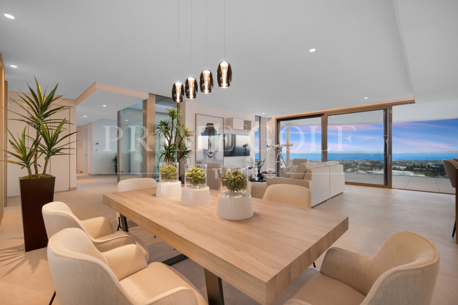 Luxury three bedroom apartment located in the brand new exclusive community The View. This award winning gated community is located in an elevated position above Marbella’s famous Golf Valley, in the hills of Benahavís with incredible panoramic views which stretches to the Mediterranean sea and beyond; and is only ten minutes drive to San Pedro and fifteen minutes to Puerto Banús. There is a full range of amenities available to owners including 24hr security, concierge service, health club with full spa, gym, indoor and outdoor pools, lush gardens and more. A property designed to optimize natural light with the highest quality materials and fixtures. Upon entering the property you have a spacious open plan living and dining area; open plan fully fitted kitchen with top of the range appliances; two master suites with access to the terrace; a guest suite; guest toilet; laundry room; and a multi purpose space which could be used as a home office. All rooms give access to the large terrace which boasts panoramic views. Other features include hot and cold air condition, underfloor heating throughout, two private parking space and two store rooms. An incredible property perfect for year round living or a holiday home.