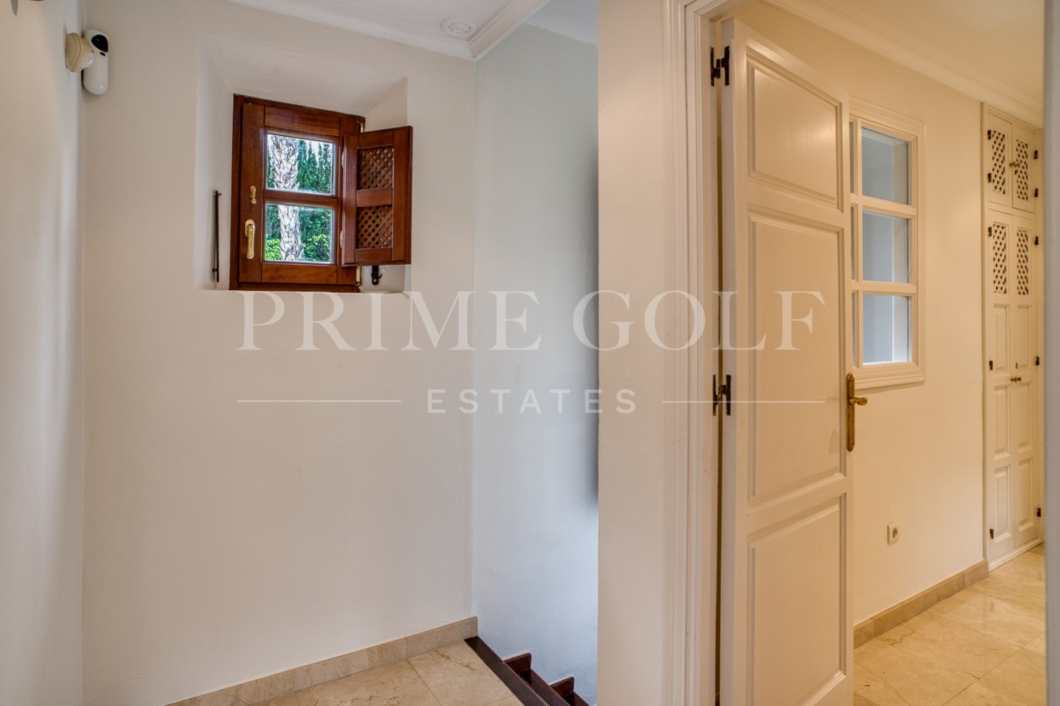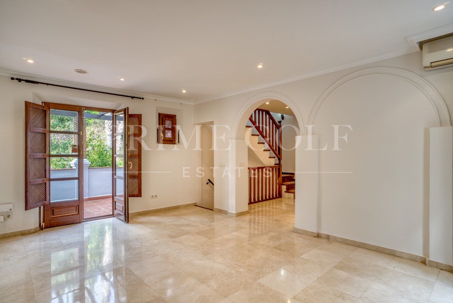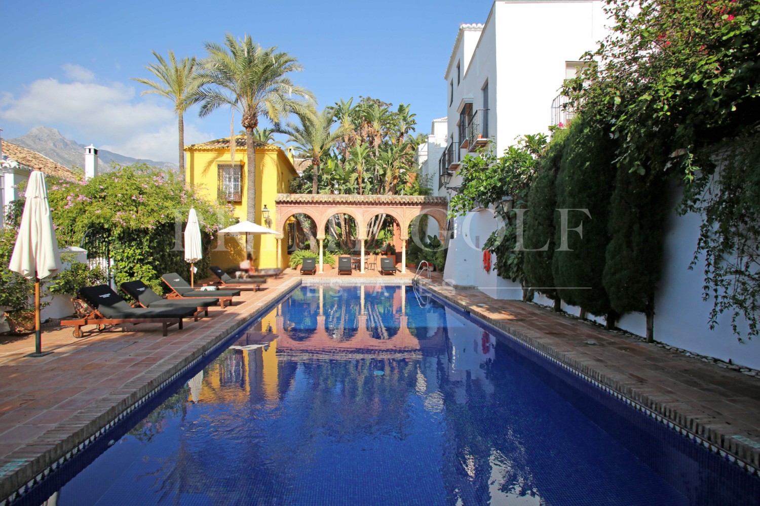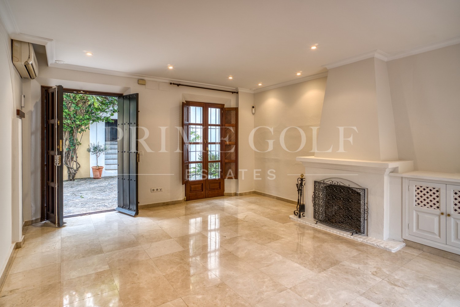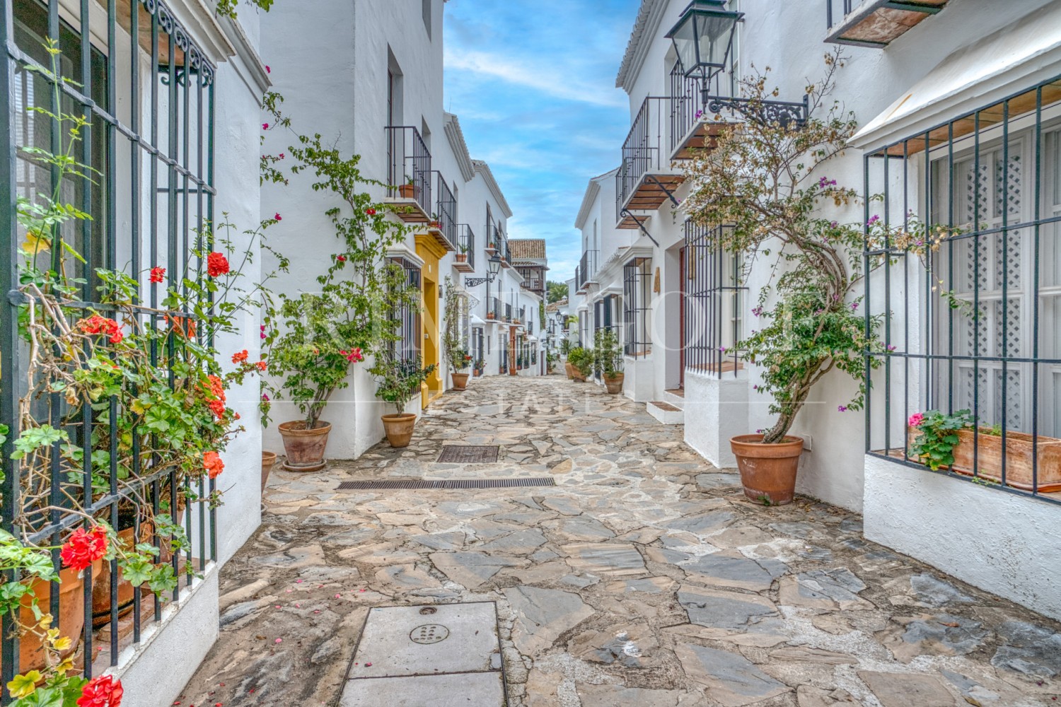 Beautiful four-bedroom townhouse located in the charming community Lomas Del Marbella Club Pueblo; a unique traditional Spanish style village complex with classic architecture, cobbled streets, courtyards, social club for residents to enjoy and a heated swimming pool. The property itself is distributed over three levels, the entrance leads to a spacious living and dining room with a built in fireplace and access to a lovely Spanish style terrace; and a fully fitted kitchen. The lower-level leads to a guest bedroom, guest bathroom and master suite. The upper level has two guest suites. Other features include hot and cold air conditioning, fitted wardrobes and lovely views of the community from all rooms. With the touristic license already in place this is a great investment opportunity or a home for year round living, and is within walking distance of the beach and the 5* Puente Romano.