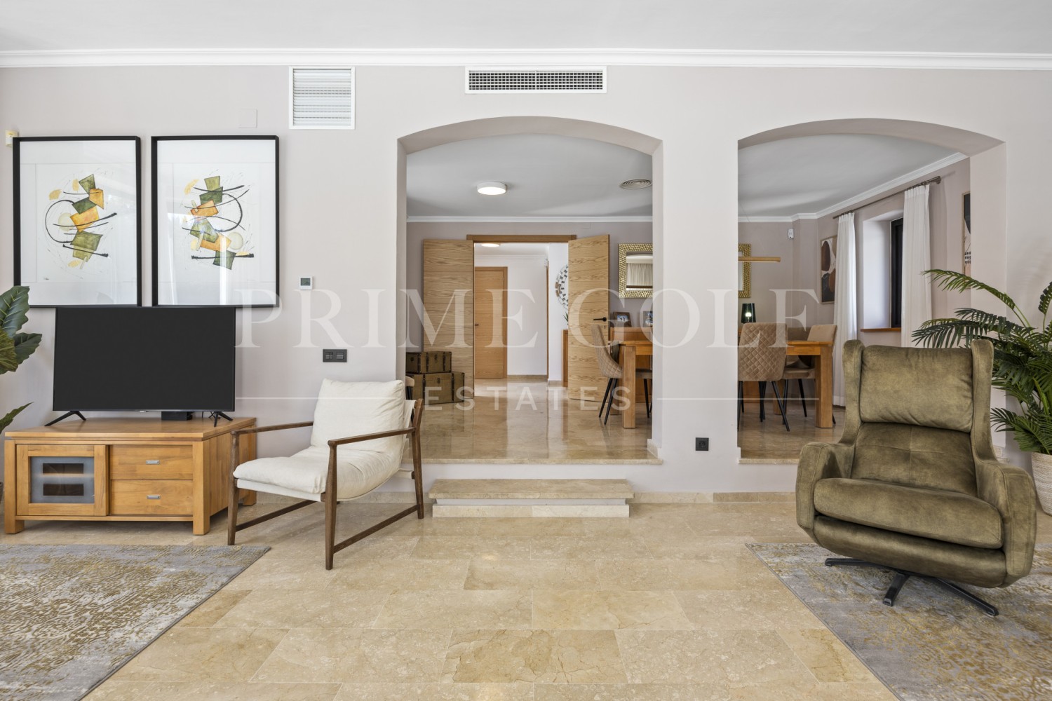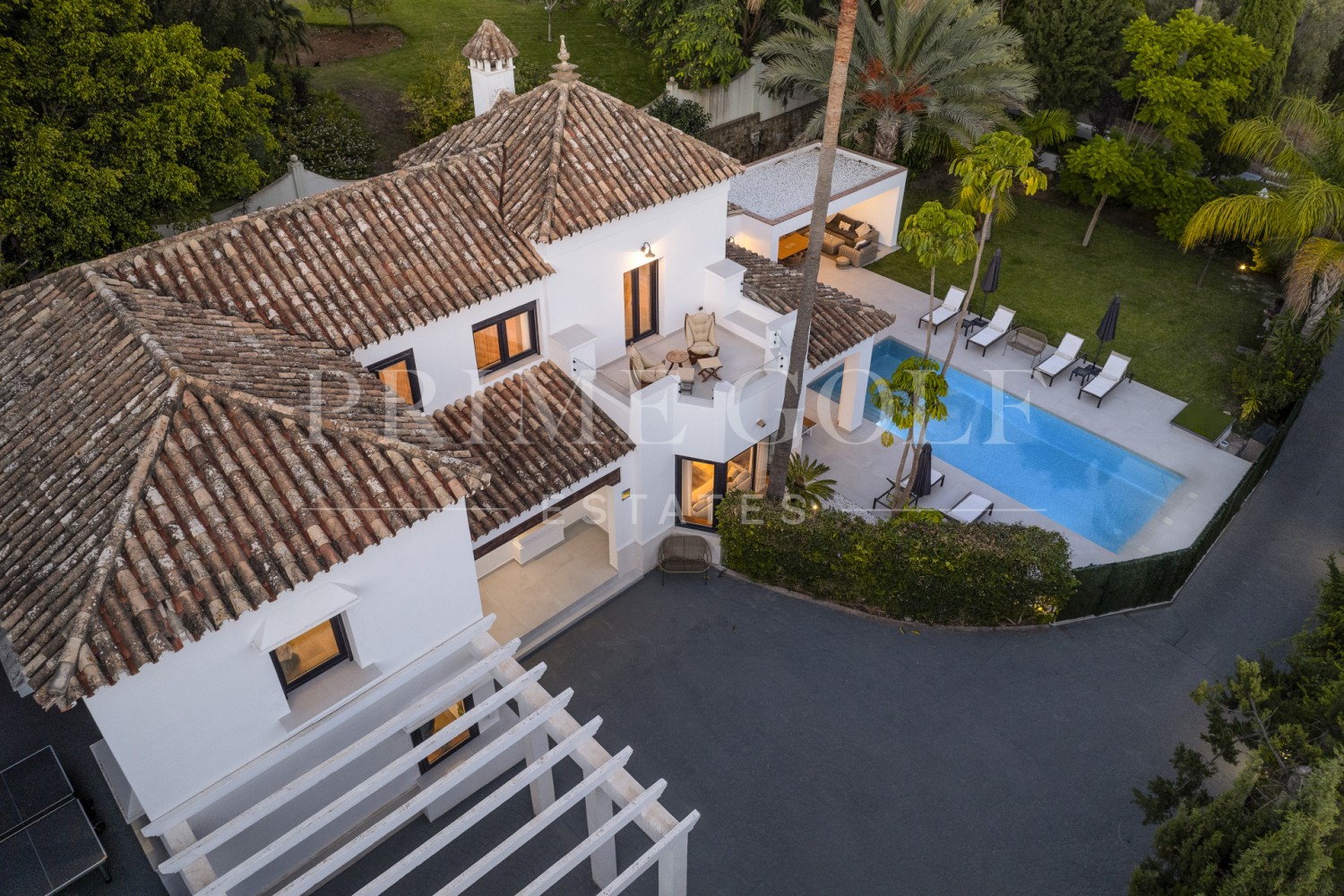Located in Paraíso Alto, between Marbella and Estepona, this villa combines the timeless charm of Andalusian style with a touch of modernity. The white walls and tiled roofs give the property a cozy feel, set in a lush and peaceful environment.