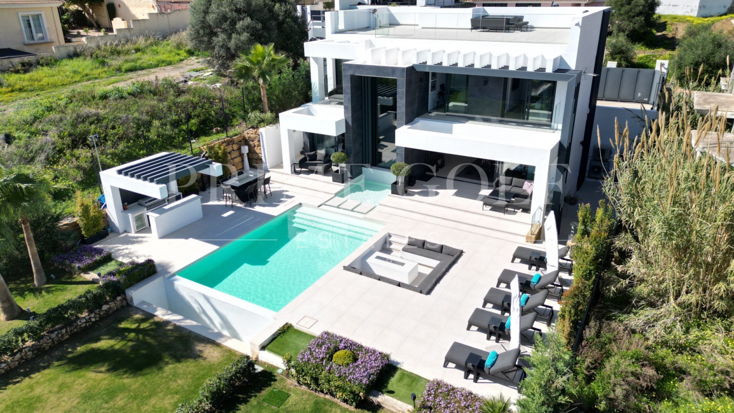 Discover the epitome of luxurious living at Villa 17, nestled within the prestigious Valle Romano Golf Course community. Priced at €2,800,000, this exquisite property offers a blend of sophistication, comfort, and convenience.
