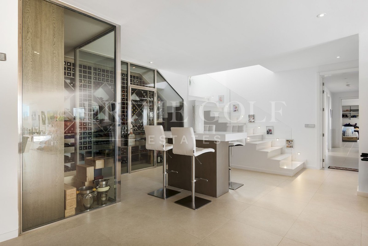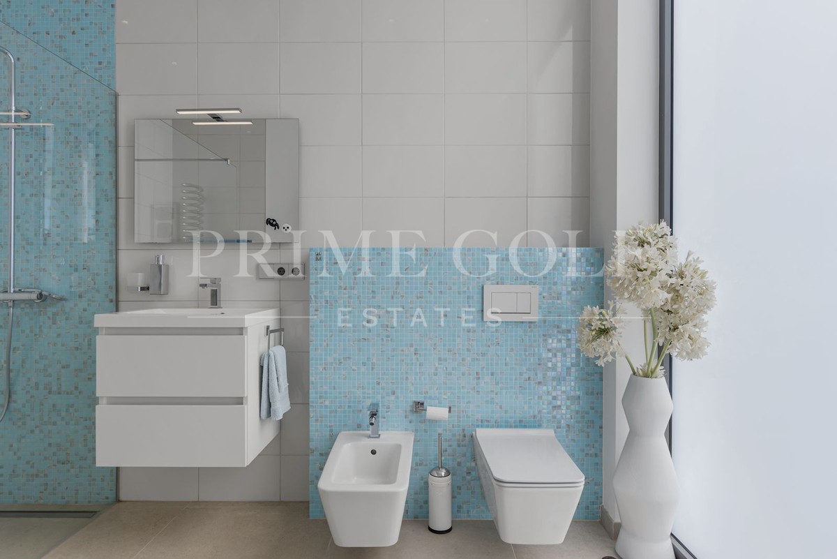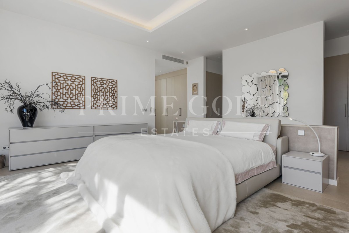 Upon entering the property, you'll be captivated by the villa's contemporary charm, featuring an open-plan layout that integrates each living space. Featuring high ceilings and expansive floor-to-ceiling windows, natural light floods the interiors, creating a bright and inviting atmosphere. The avant-garde interior design exudes a sleek, modern ambience, delivering an understated sophistication that leaves a lasting impression.
