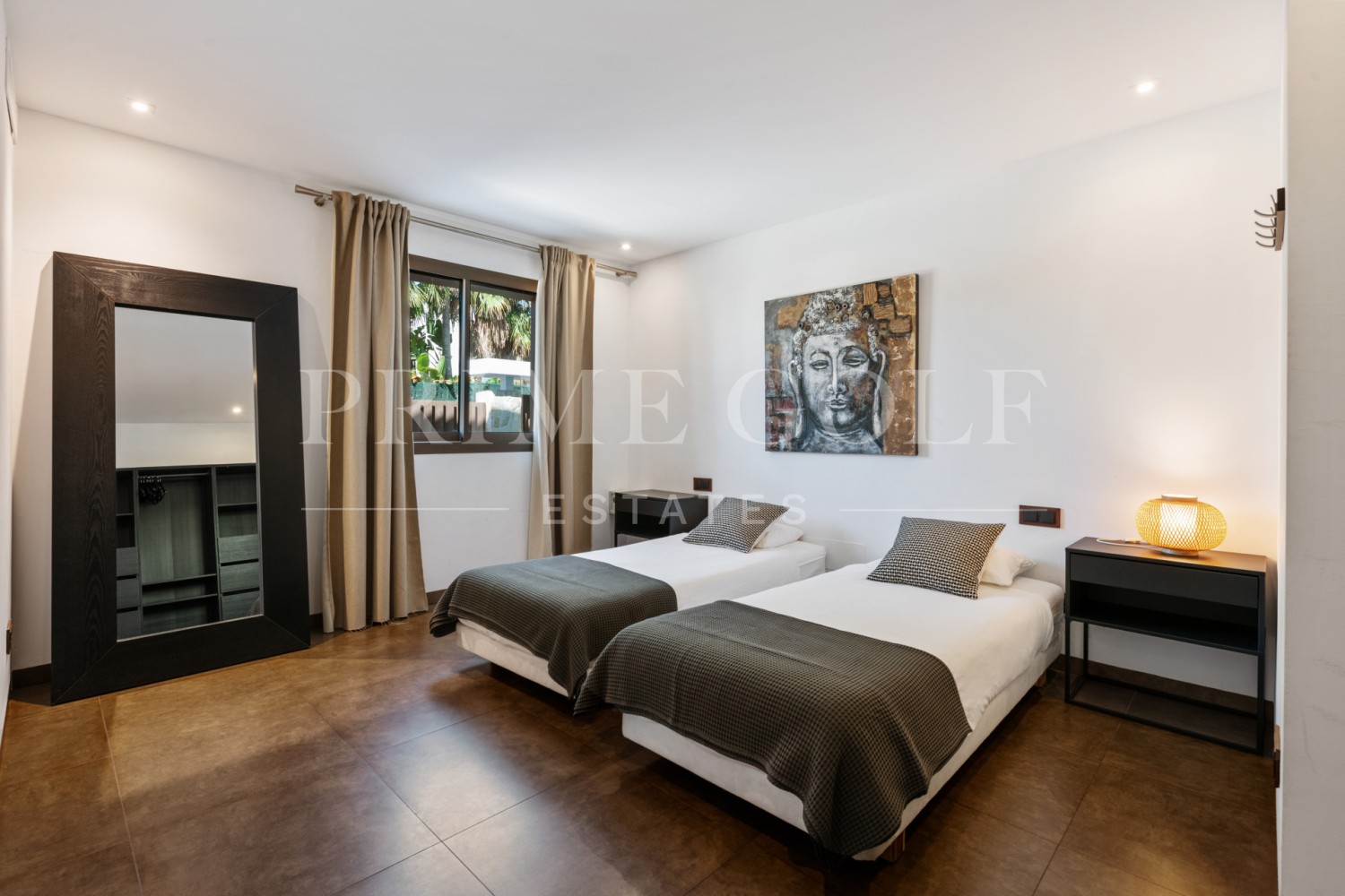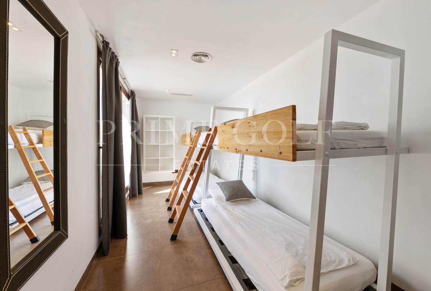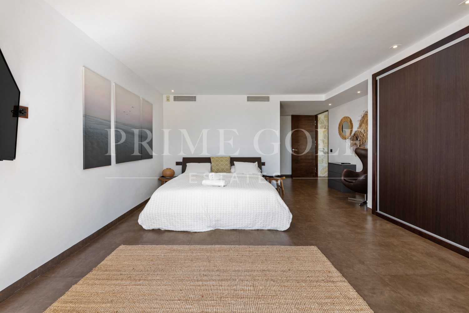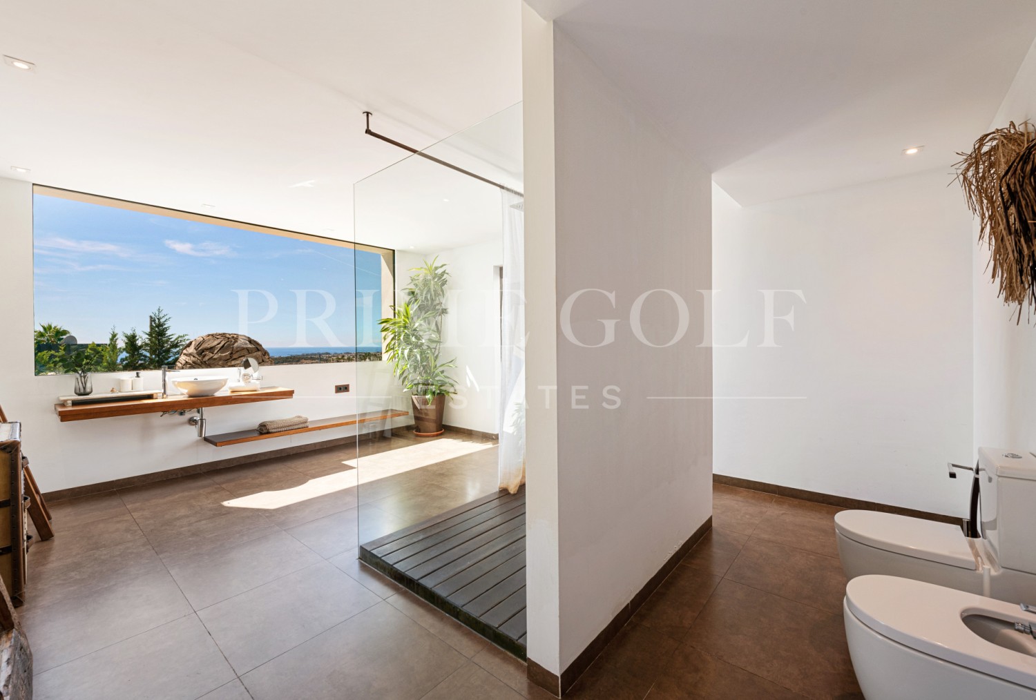 Situated in the La Alquería neighbourhood, Casa Leon is a modern golf-front villa with stunning sea, golf and La Concha mountain views. This light-filled eight-bedroom villa presents a lucrative holiday rental opportunity. Built over four levels, it features open living areas boasting breathtaking views of the Mediterranean Sea, first line to Atalaya Golf and Country Club.