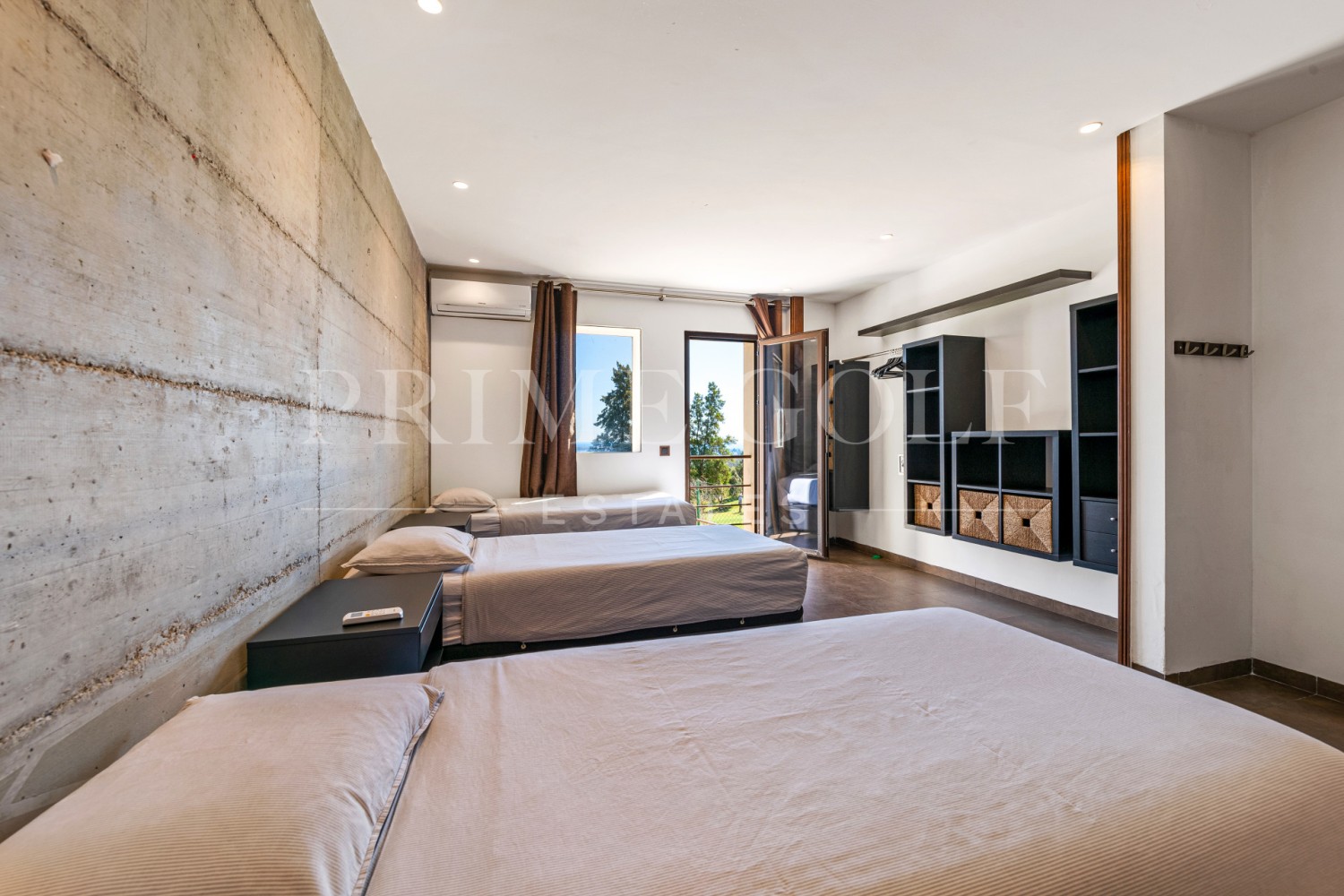 This lovely villa boasts a range of covered and uncovered terraces, perfect for relaxation and entertainment. The heated lagoon-style pool, jacuzzi, and barbecue area create a stunning setting for outdoor enjoyment, complemented by the solarium boasting panoramic views. The home features a lift servicing all levels, safes in all bedrooms, air conditioning, video entry, an alarm system, a spacious garage for two to three cars, laundry, and a storage room. The property is set up to host 21 guests and consistently achieves a 5-star Airbnb rating.