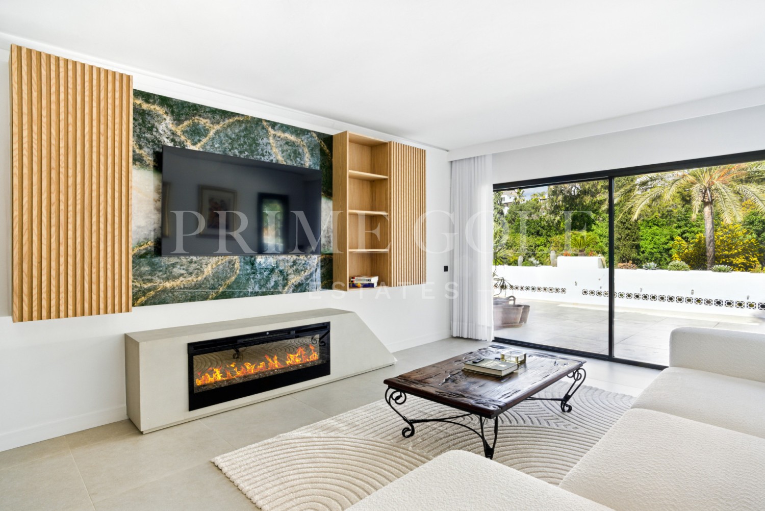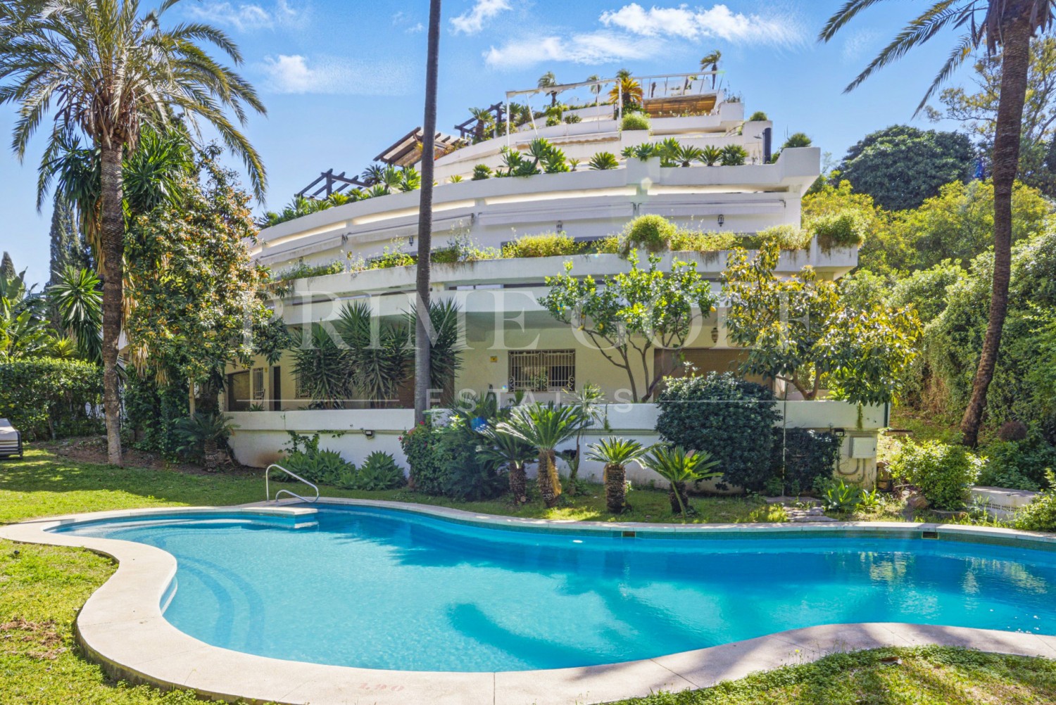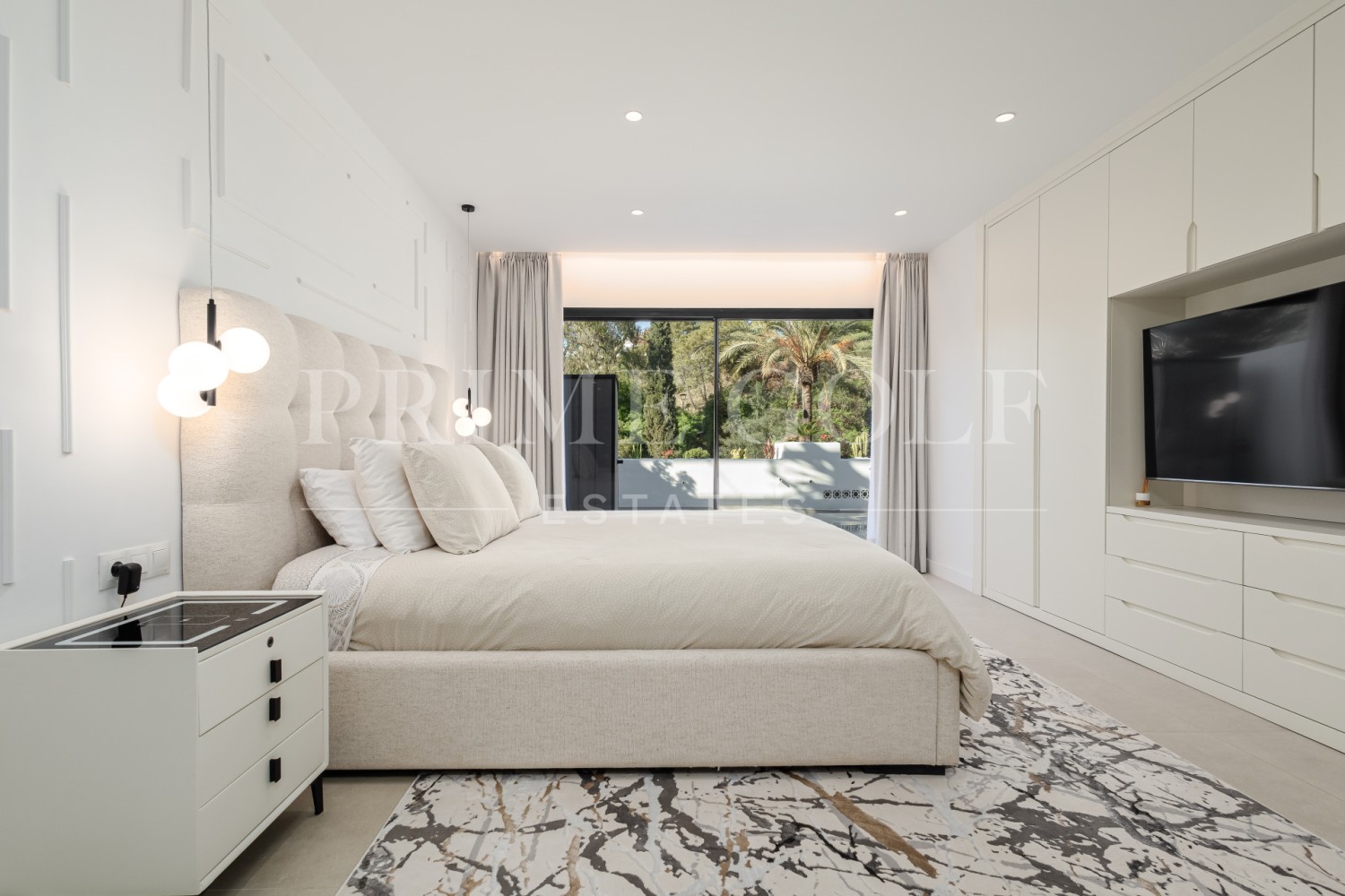 Spectacular three bedroom apartment recently renovated with a luxurious design and high end qualities, in one of the sought after complexes of the Golden Mile, Marbella: with lush tropical garden and three swimming pools. King Hills is located in one of the most prestigious areas of Marbella, at the foot of the beautiful La Concha mountain, in the Lomas de Marbella Club, only 5 minutes from the Puente Romano Hotel and the promenade with its beautiful beaches and restaurants. The property has an open plan living and dining area with access to the large private terrace; fully fitted open plan modern kitchen; two guest suites; impressive master suite with access to the terrace; cinema room; guest toilet; and a separate laundry area.. Other features include a private parking space, a storage room, hot and cold air conditioning and electric blinds.