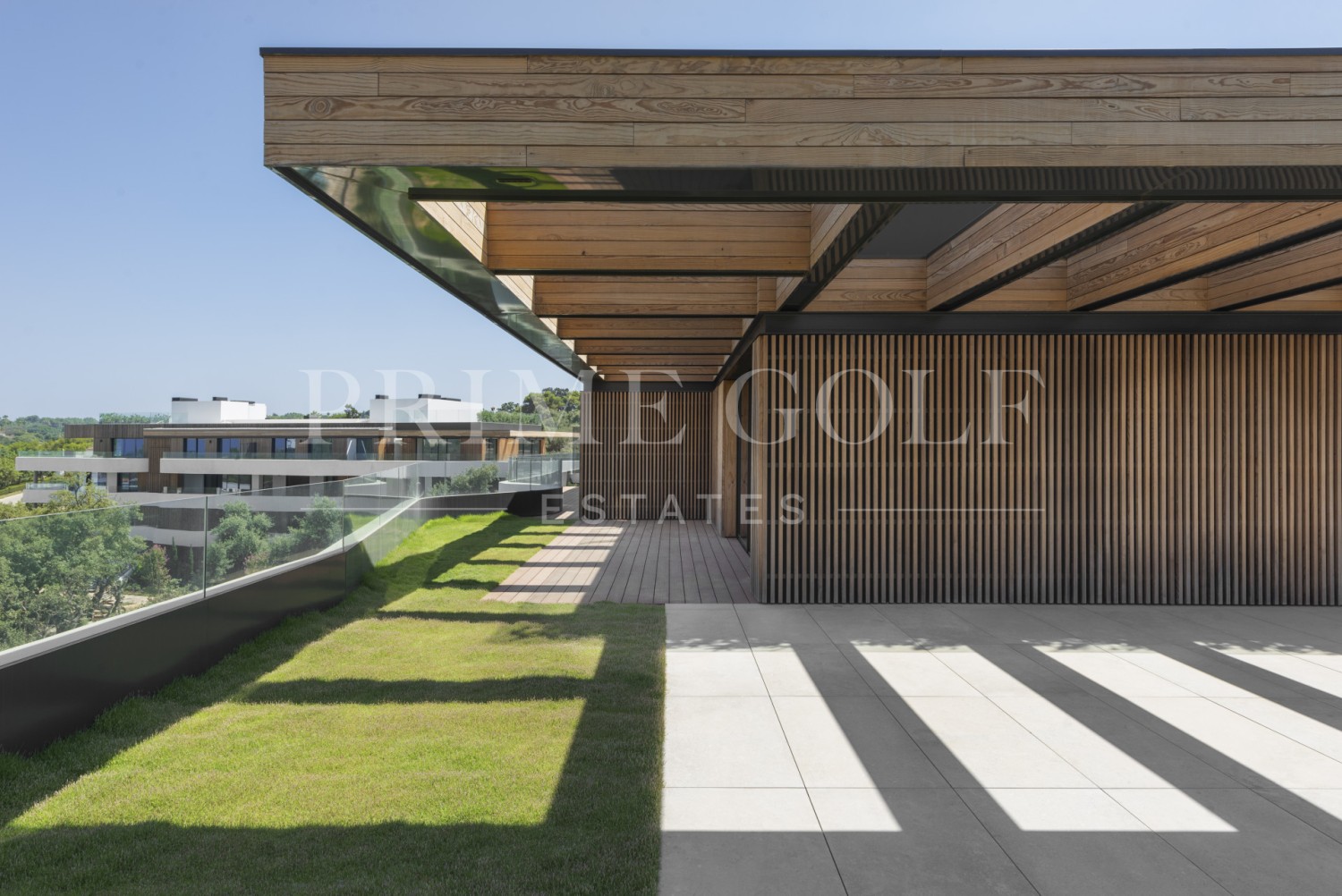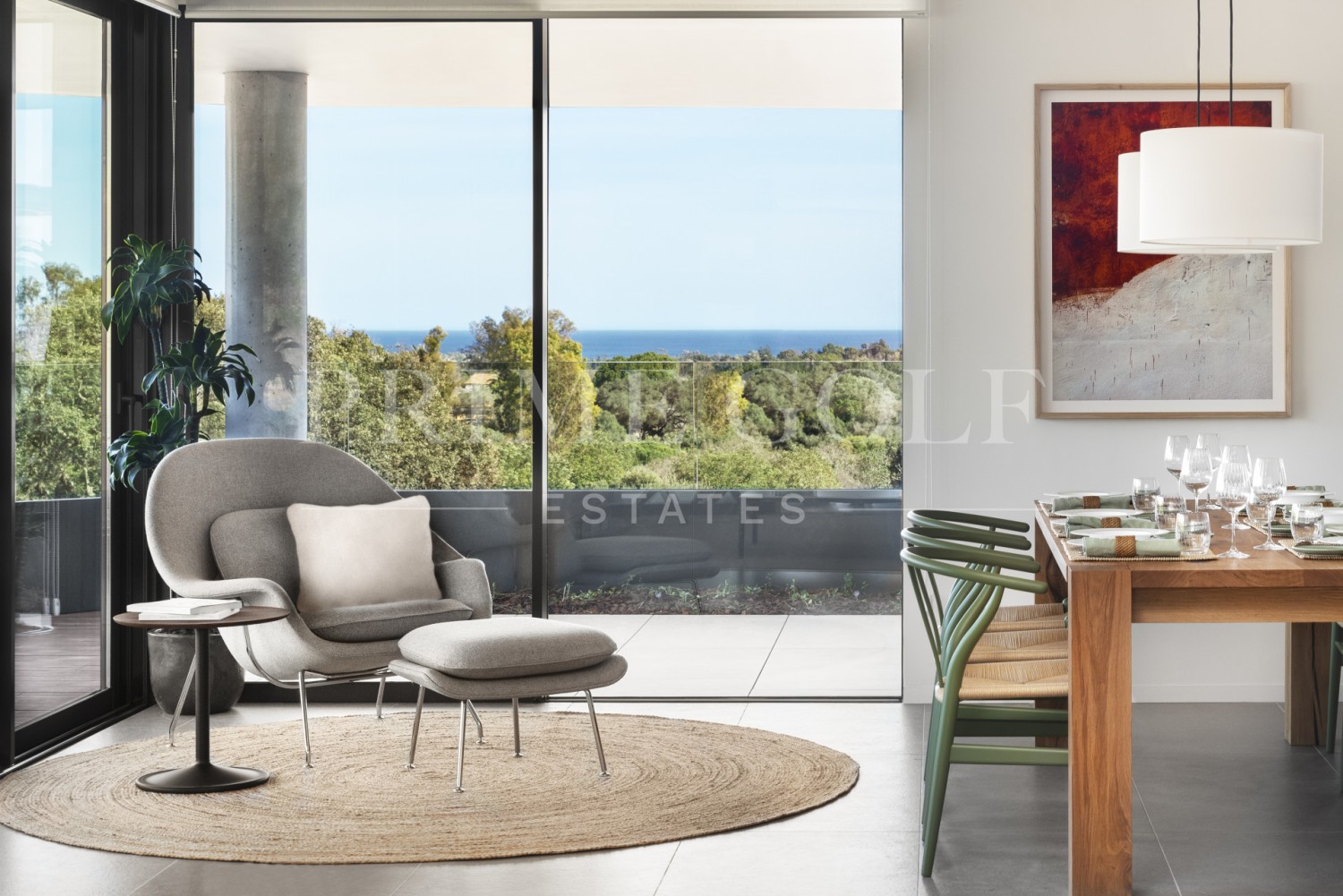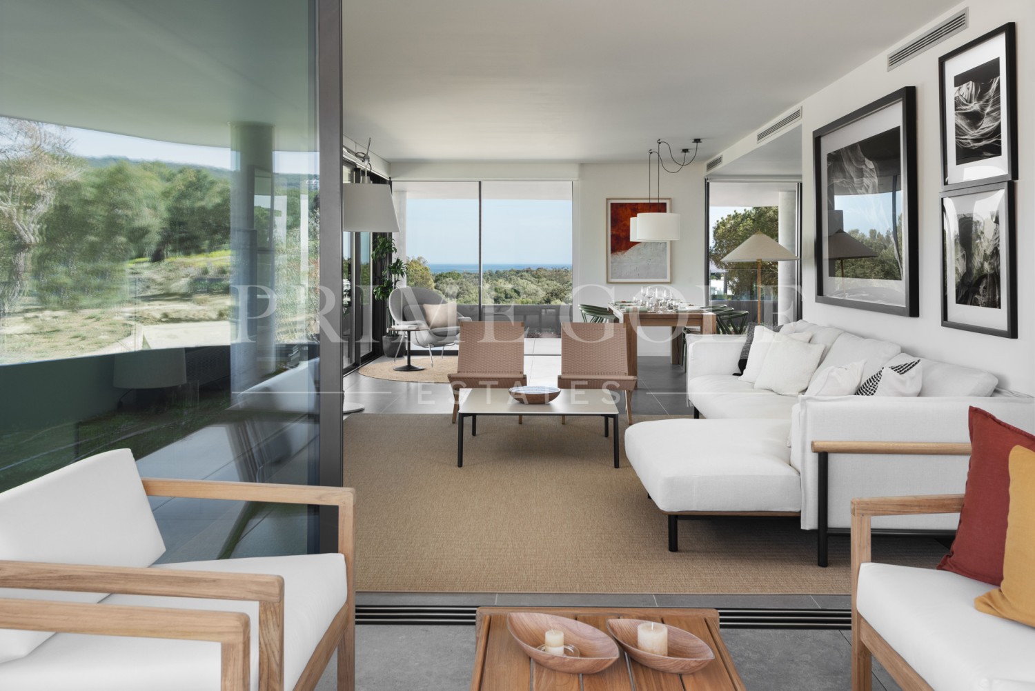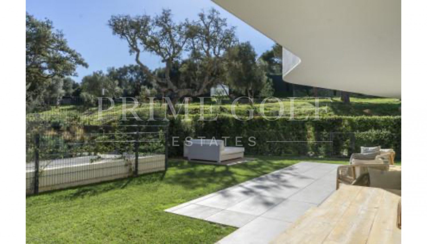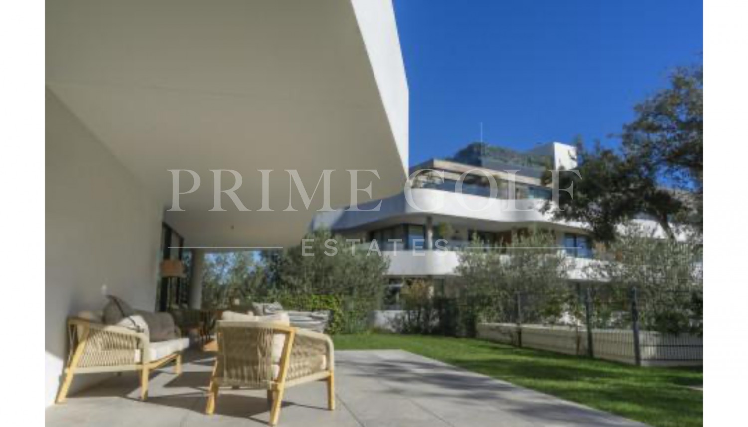 An exclusive eco-friendly 3-bedroom apartment on the ground level in La Reserva, Sotogrande. The traffic-free apartment is surrounded by tranquil parkland, pine and cork trees with stunning mountain views with just a short cycle (on the cycle path) or drive to the stunning facilities provided within this luxurious village style resort.