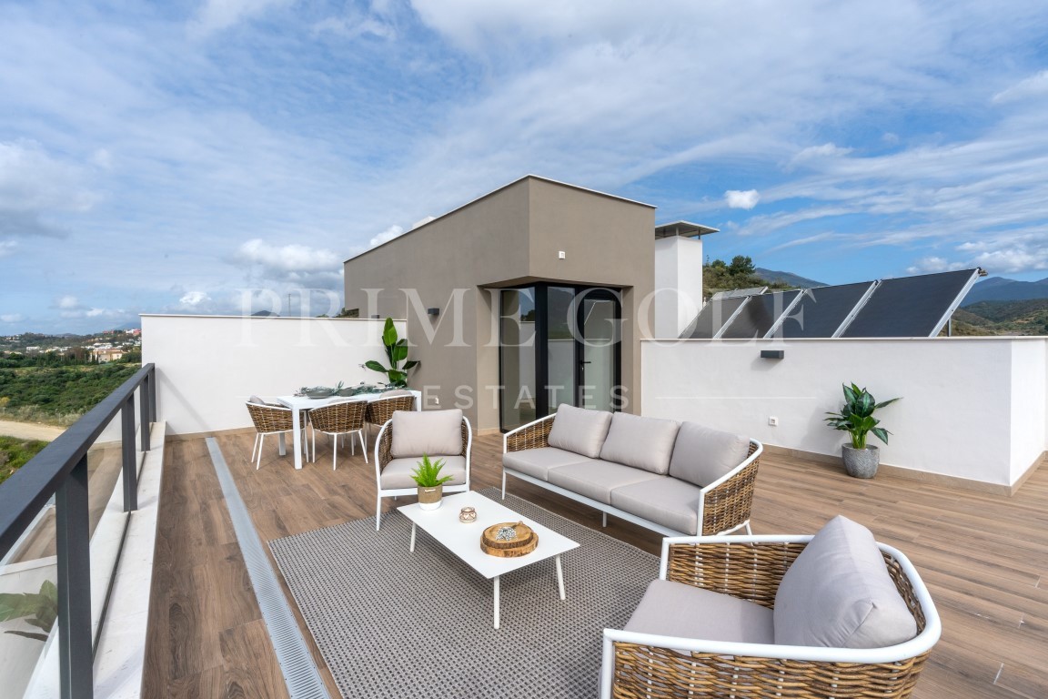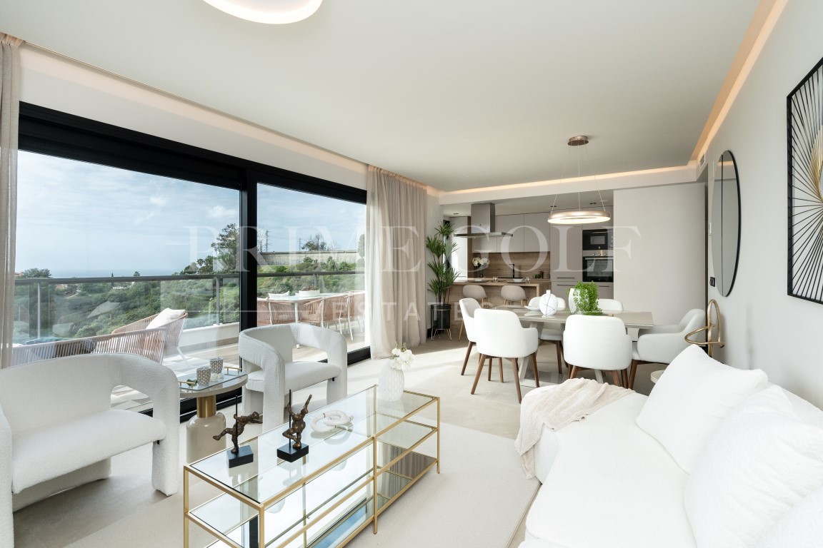 The Marbella Lake project has been designed to ensure that all of the homes enjoy impressive panoramic views from the generously sized terraces and living rooms. Architecture in the communal areas at Marbella Lake is inspired by the “Boho Chic” and “Country Chic” aesthetic concepts where natural materials and colours are combined to blend into the local scenery in a balanced way, favouring a relaxed ambience and an escape to peaceful surroundings.