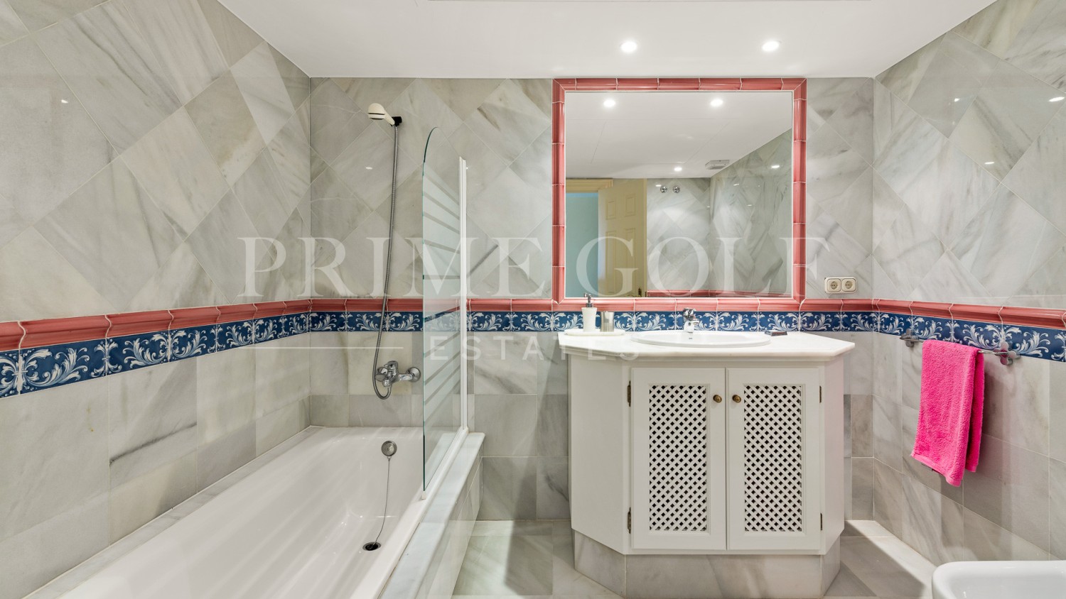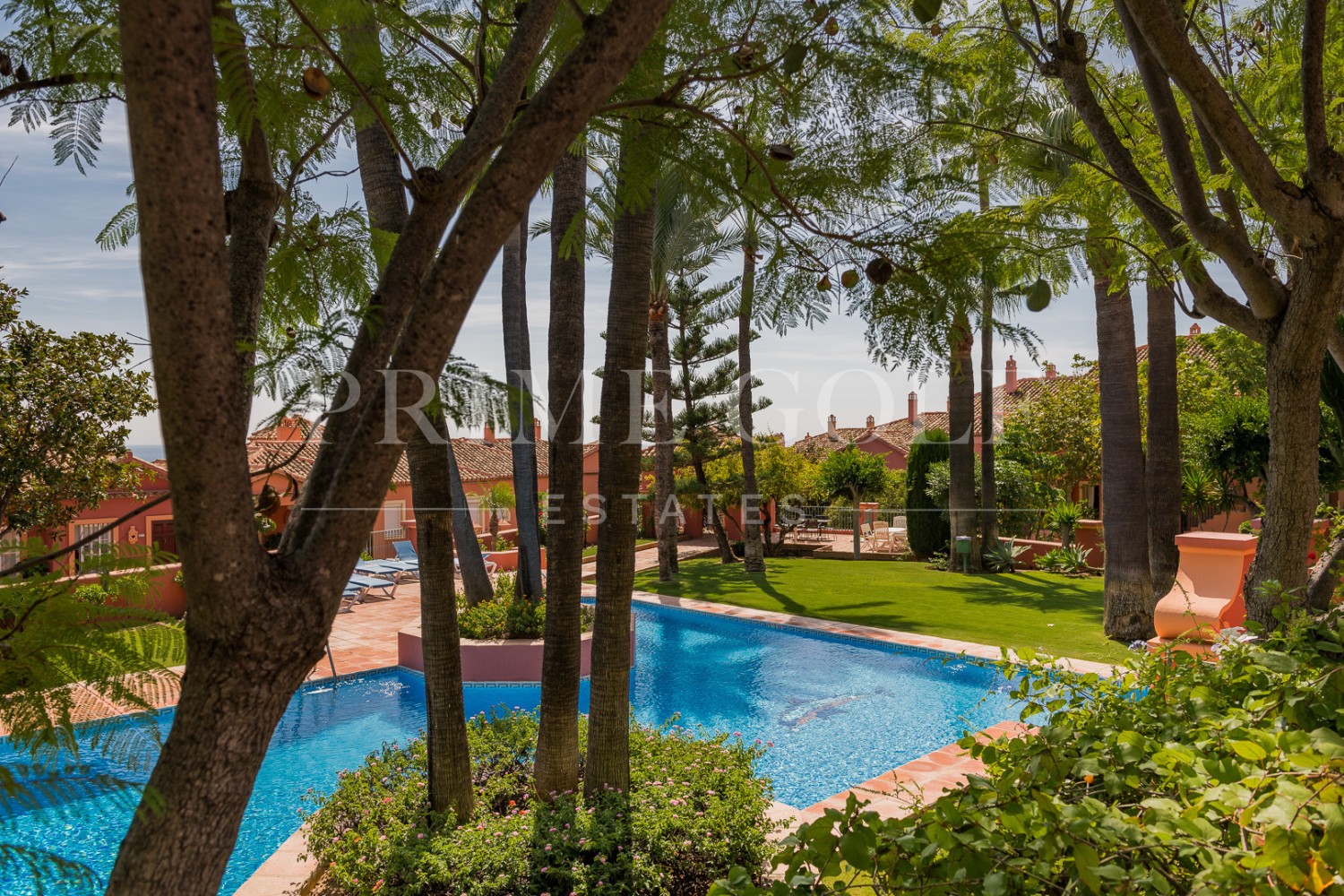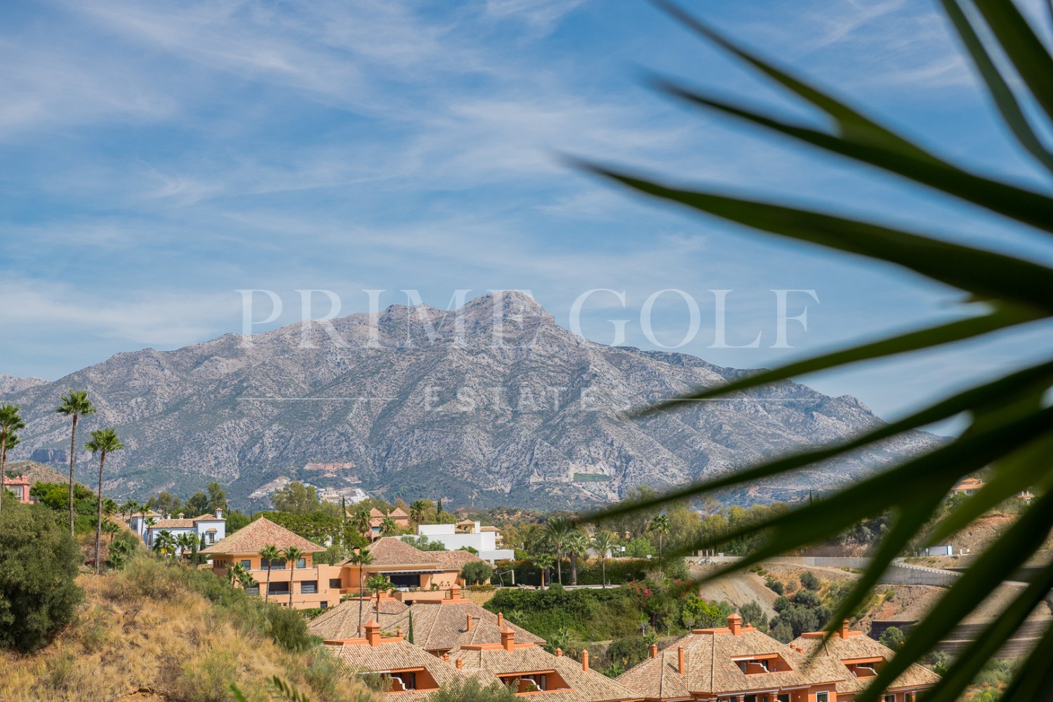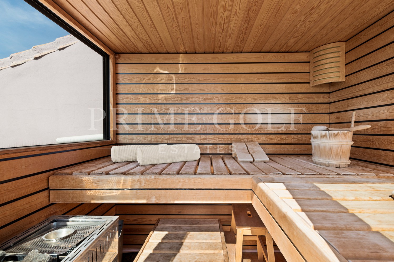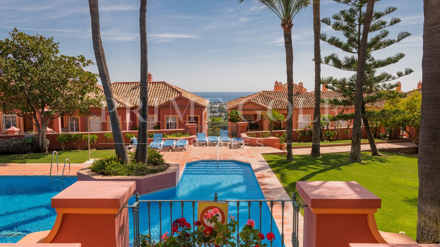 This beautiful penthouse sits atop an elevated position on the edge of a cliff that provides the home with mouth-watering sea and mountain views that stretch beyond Gibraltar and the African coastline. Known as the "penthouse in the sky", the property showcases a perfect blend of traditional Mediterranean architecture with modern design elements and upgrades and the result is a home of exceptional comfort and beauty. Its curving layout allows natural light to liven up the interiors while the lush backdrop of sea and mountains provide an immediate sensation of exclusivity and luxury. Entering the home on its main level there is an entry hall that leads into all the living quarters on this floor. Straight ahead there is a well-appointed living room with a dining area and a modern, upgraded kitchen ideally laid out in a spacious open plan. The large windows allow the beautiful views to be admired from inside the home. There are two en-suite guest rooms on this level in addition to a home office that can also be used as a bedroom. Directly outside is the main terrace that provides ample space for dining outdoors and enjoying the mouth-watering views. Upstairs there are two more en-suite bedrooms including the spectacular master retreat. This luxurious room boasts access to two terraces, a walk-in dressing room and a luxury bathroom that also benefits from the amazing views of the surroundings. The upstairs terrace also features a sauna and is the perfect place to enjoy the sunsets each evening. Being located in Monte Halcones, the property is protected with 24h gated security. The low-density community features beautifully landscaped gardens and a spectacular pool area offering lots of space to take the sun during the warmer months. The community has a shopping centre with a selection of shops and restaurants within walking distance. The beaches of Guadalmina Baja can be reached in 5 minutes by car, and just 10 minutes to Estepona or Marbella centres. For rentals, the property is rented partially furnished, requiring living room furnishings. There are several top golf courses in the area, and Malaga airport is 45 minutes away.