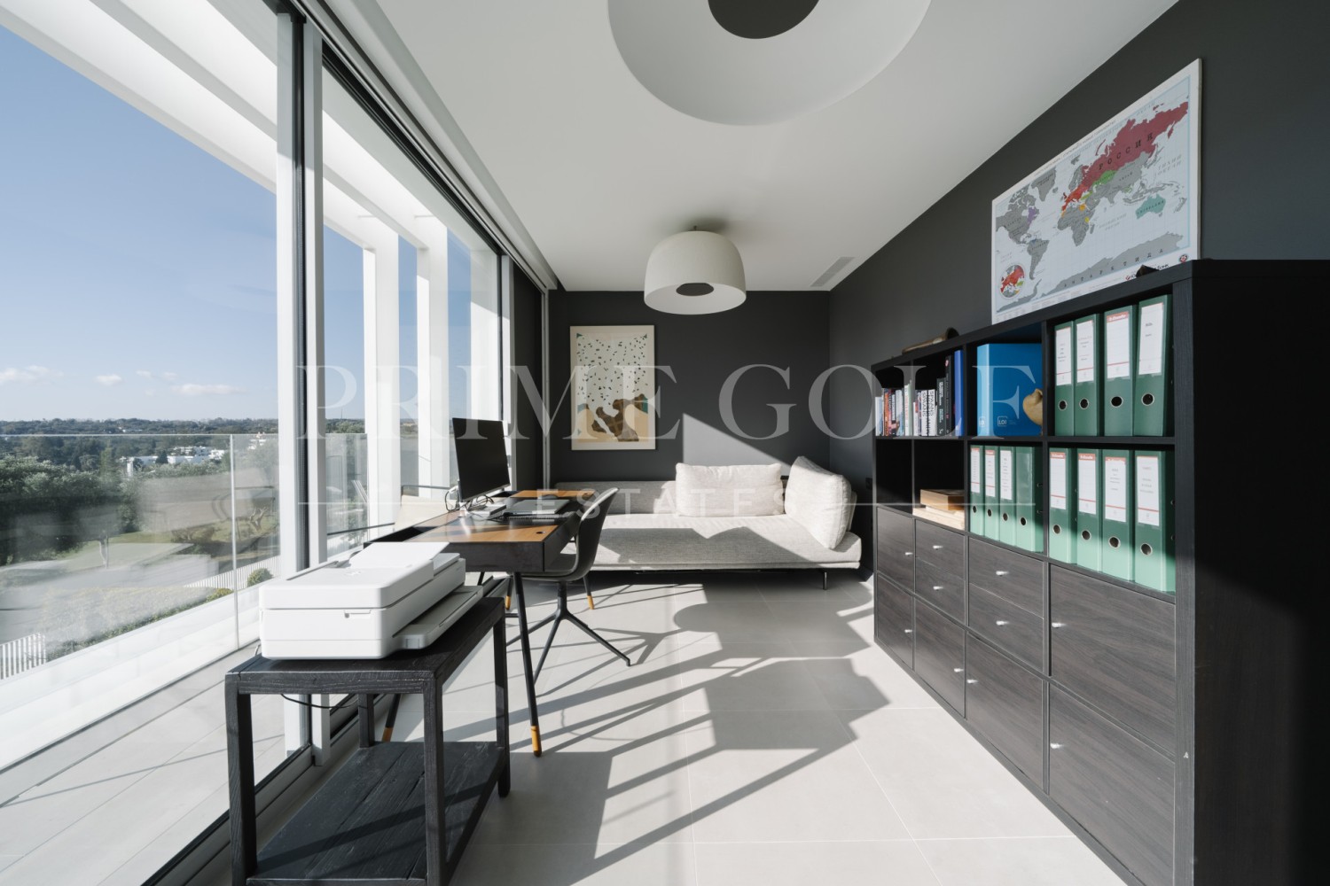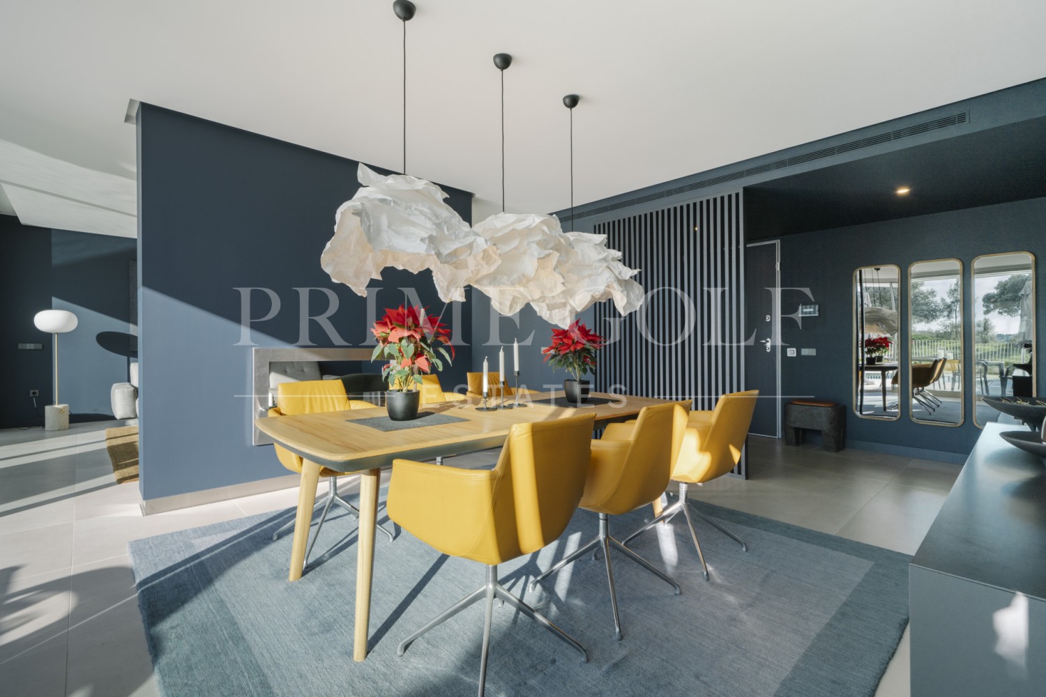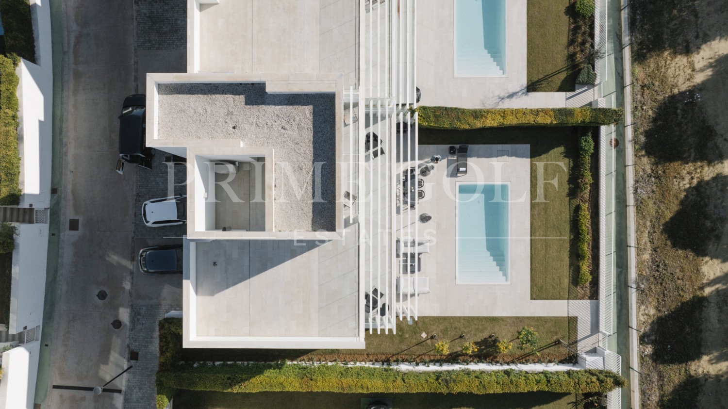 Frontline golf. Sea views. Silence. Security. This three-floor villa sits within a renowned gated community in Sotogrande. Designed for modern living, its five-bedroom layout is ideal for families. Unlike most homes in this neighbourhood, the entrance is at ground level, allowing seamless indoor-outdoor flow between the living space, garden, and pool.