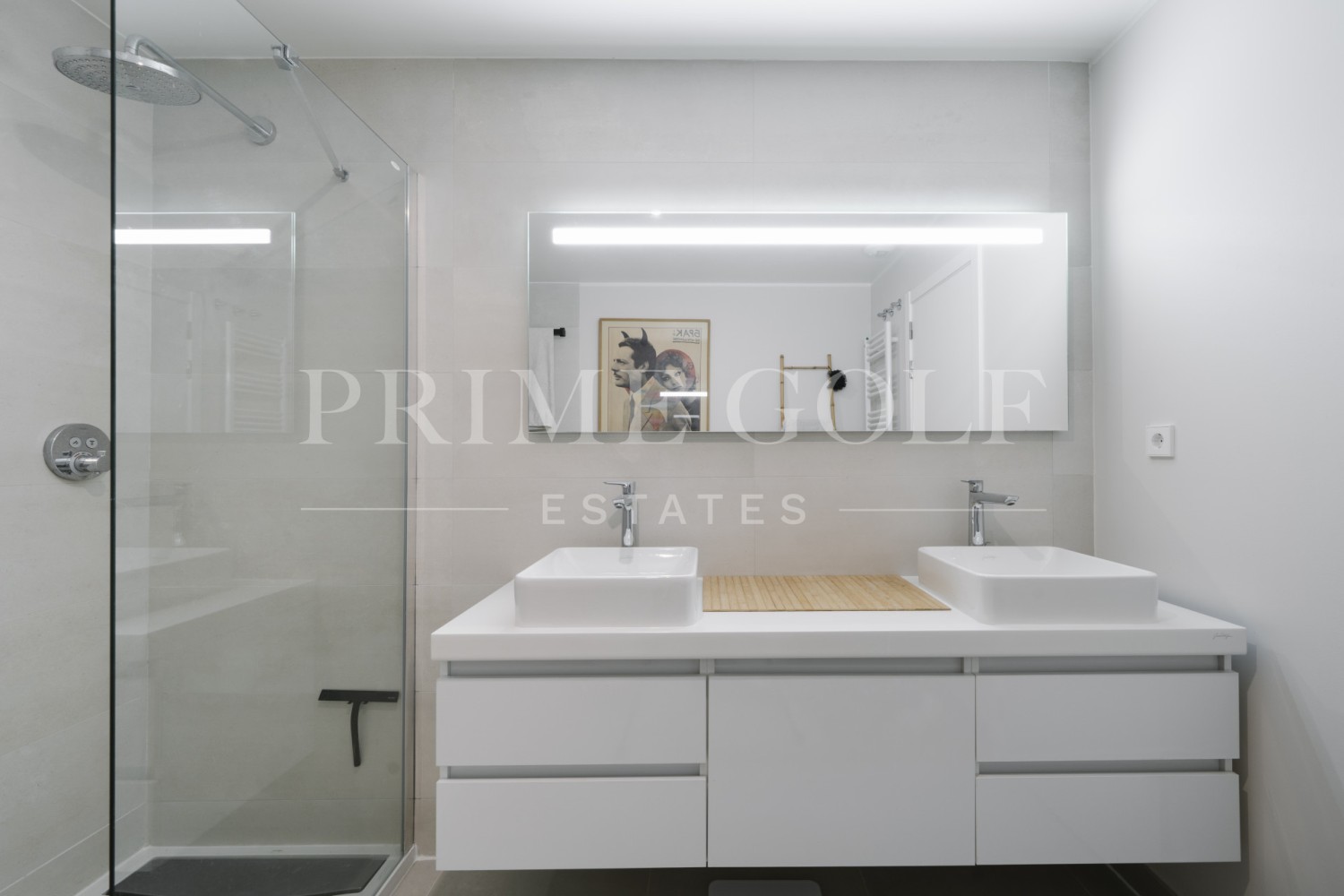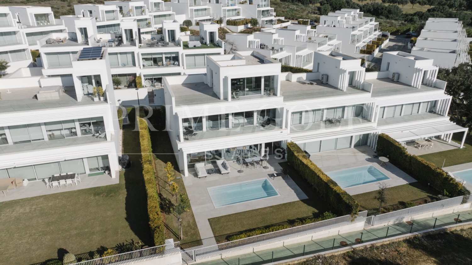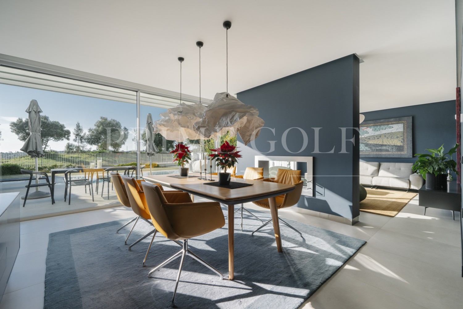 Frontline golf. Sea views. Silence. Security. This three-floor villa sits within a renowned gated community in Sotogrande. Designed for modern living, its five-bedroom layout is ideal for families. Unlike most homes in this neighbourhood, the entrance is at ground level, allowing seamless indoor-outdoor flow between the living space, garden, and pool.