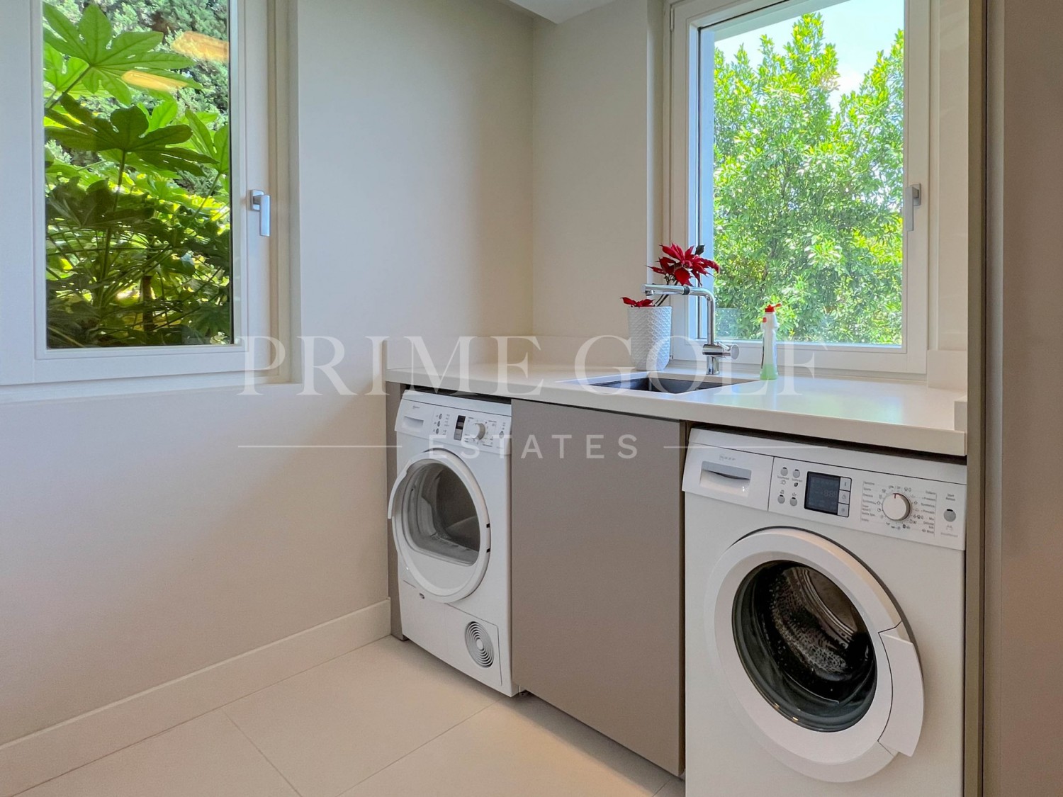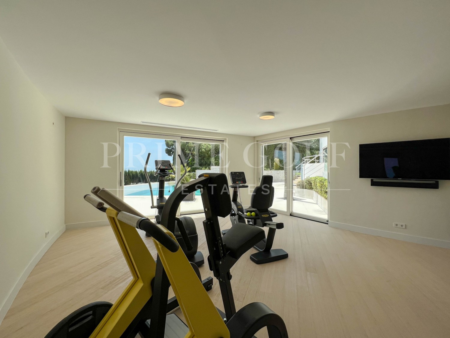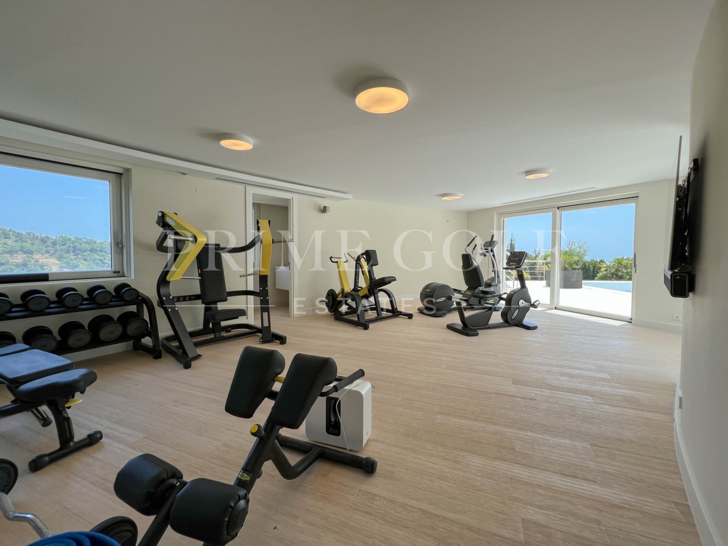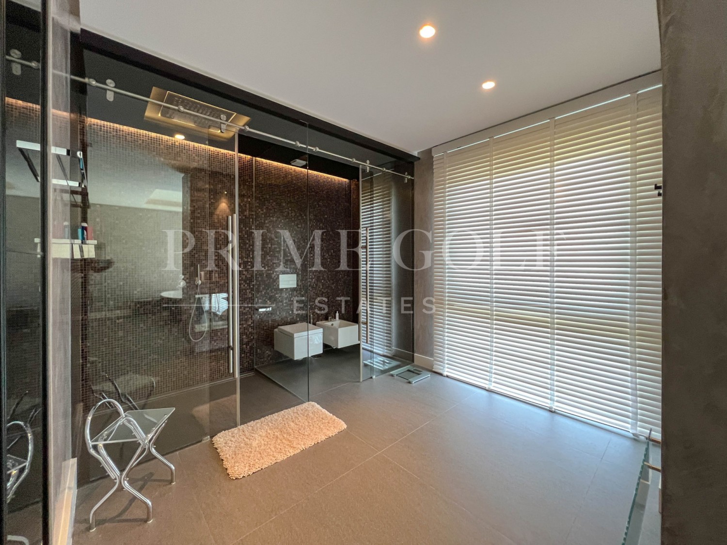 The villa has 5 bedrooms, 8 bathrooms, a spacious living room, a spacious kitchen, many terraces with panoramic views, a splendid garden with a heated swimming pool, well-equipped gym and spa facilities, cinema and entertainment zone, guest apartment, storage and utility rooms a private garage for 4 cars. It is not just beautifully designed and elegantly furnished, but also equipped with high quality safety and domotic system. There are air conditioning and underfloor heating throughout the house. The house has all the necessary appliances and systems installed including solar panels, automatic irrigation system, electric blinds, modern fireplace, dolby stereo system, satellite tv and etc.