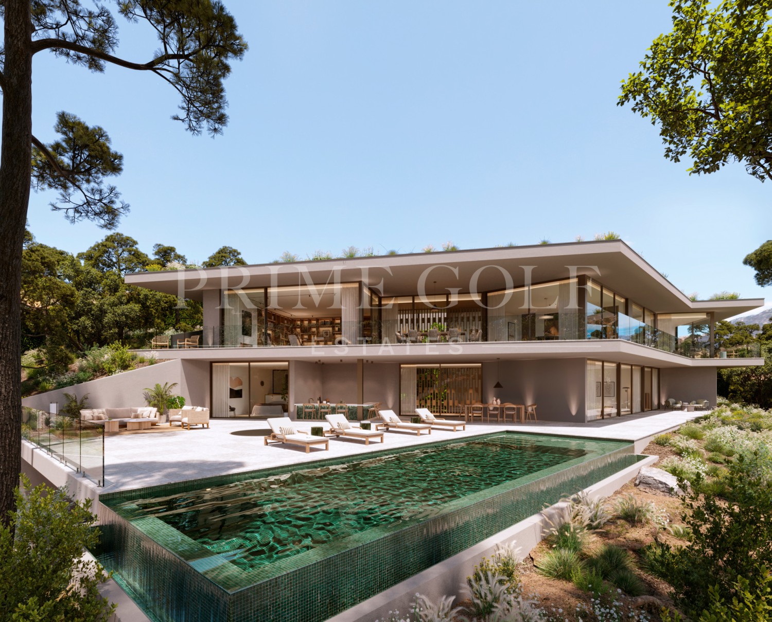 The villa includes: 5 bedrooms, 5 en-suite bathrooms, 2 guest toilets, extensive terraces, an integrated outdoor lounge area and a stunning swimming pool. Villa I2 radiates sophisticated charm with its use of noble materials and top-tier specifications. It achieves an ideal synergy between state-of-the-art design and ecological sensitivity, featuring a minimal environmental footprint, green roofs, optional solar energy, and landscaping designed to thrive in drought conditions.
