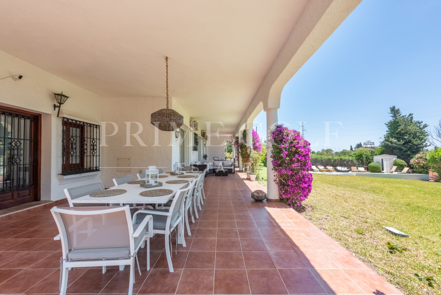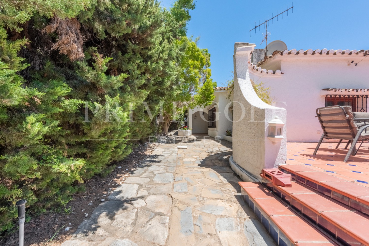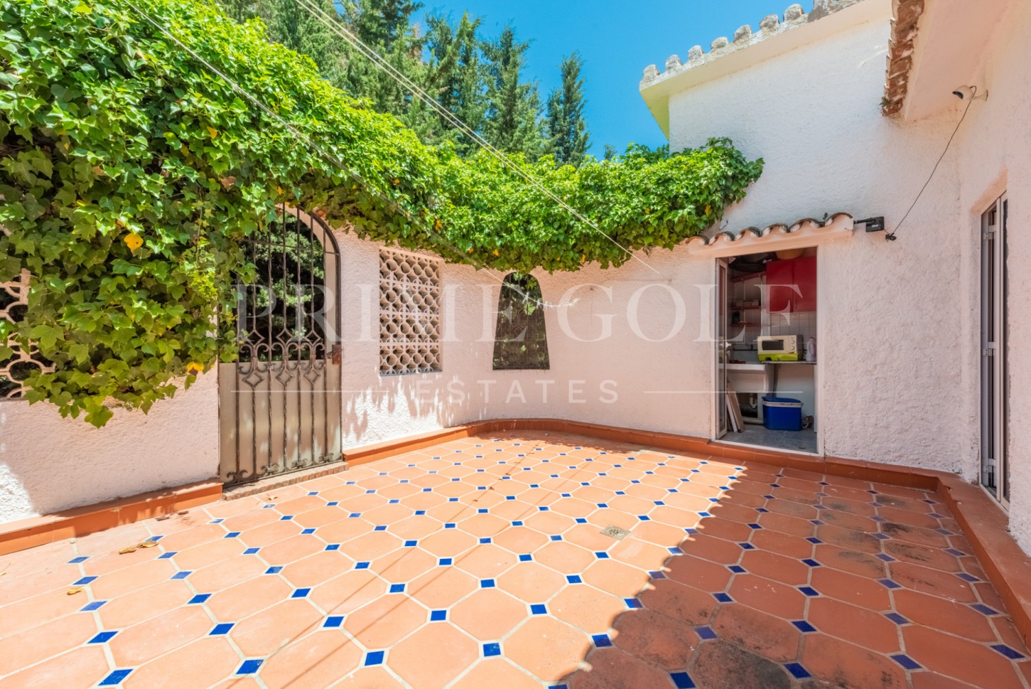 Enchanting Andalusian-style villa boasting a sprawling garden, ideally situated within walking distance of Atalaya Golf. Bathed in sunlight, the villa is designed on a single level, with an expansive garage nestled on the basement floor. Enjoy unparalleled privacy as the property is secluded and not overlooked.