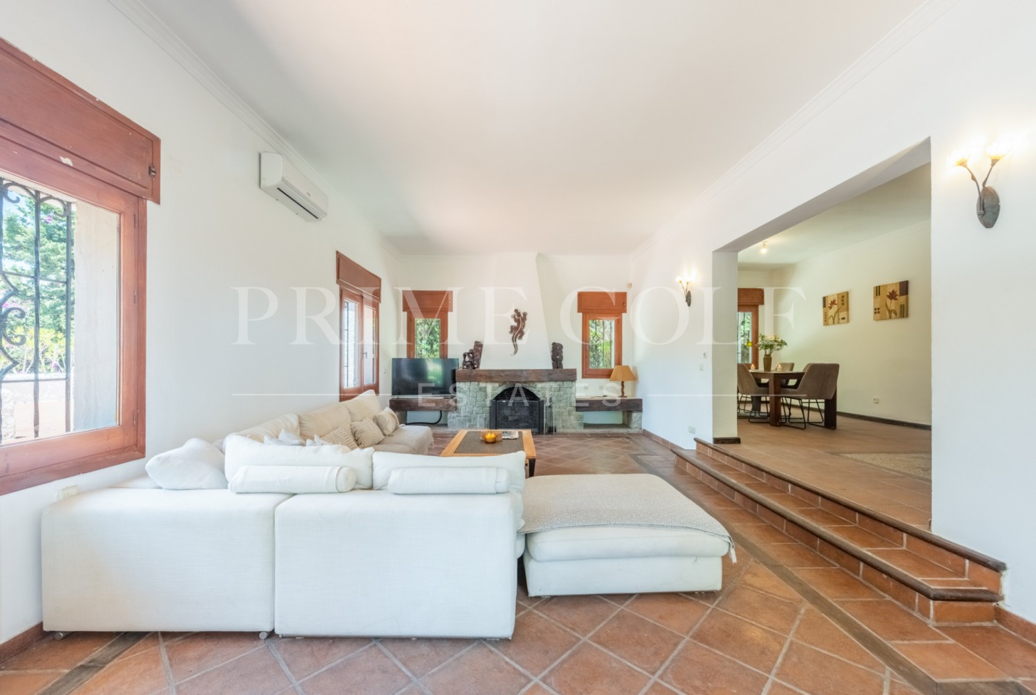 Step onto the vast terrace that extends nearly the entire length of the house, offering ample space for dining, lounging, and soaking up the sun. Inside, the villa exudes warmth and charm, featuring a delightful living room with a cozy fireplace, an adjacent dining area, and a recently renovated kitchen. A convenient utility room is located beside the rear patio. With a total of 6 bedrooms, including 2 with en-suite bathrooms, a family bathroom, and 2 additional guest toilets, there's plenty of space for family and guests. Some bathrooms and the kitchen have been refurbished, yet there's still potential for further upgrades, reflected in the price of the villa.
