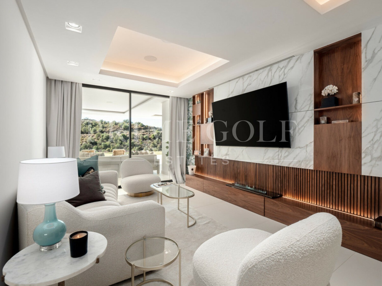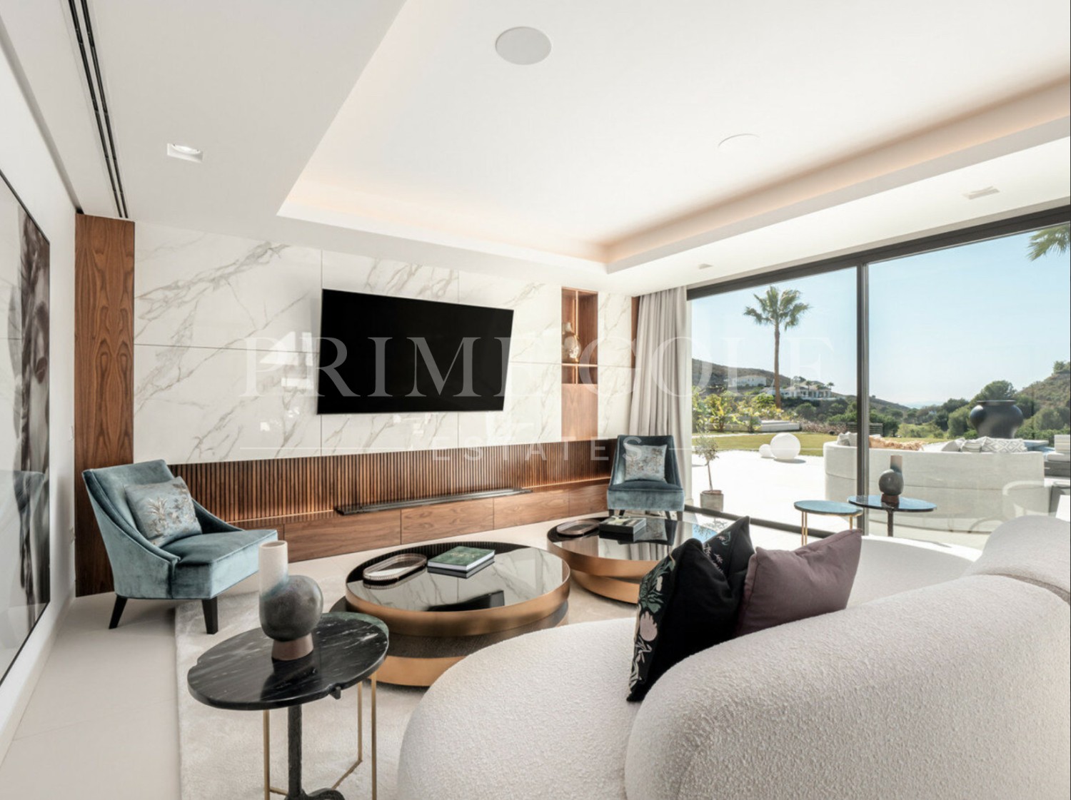This contemporary luxury villa for sale in Marbella Club Resort has been recently built to the highest standards. This villa offers a perfect combination between a ultra-modern property and peaceful surroundings. The front-line golf situation provides outstanding views and breathtaking surroundings. Marbella Club Resort is a well-established gated community known for its high-level security service and its prime location, close to Puerto Banús and Marbella by car, but away from the bustle of the city.