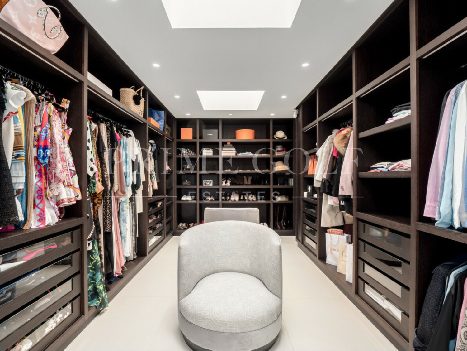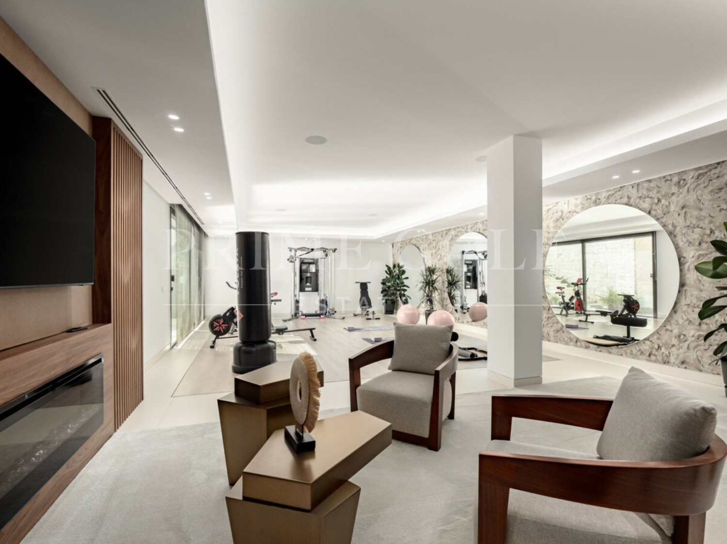 The outsides of this property are one of the main factors, with gardens specially designed to enjoy the warm weather. The huge swimming pool opens up to the golf course, and to the right of the property, there’s a separate sitting area with an outdoor kitchen. Ideal for hosting events and meetings! From the gym in the basement, you have access to a zen garden.