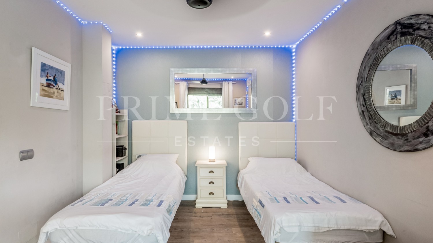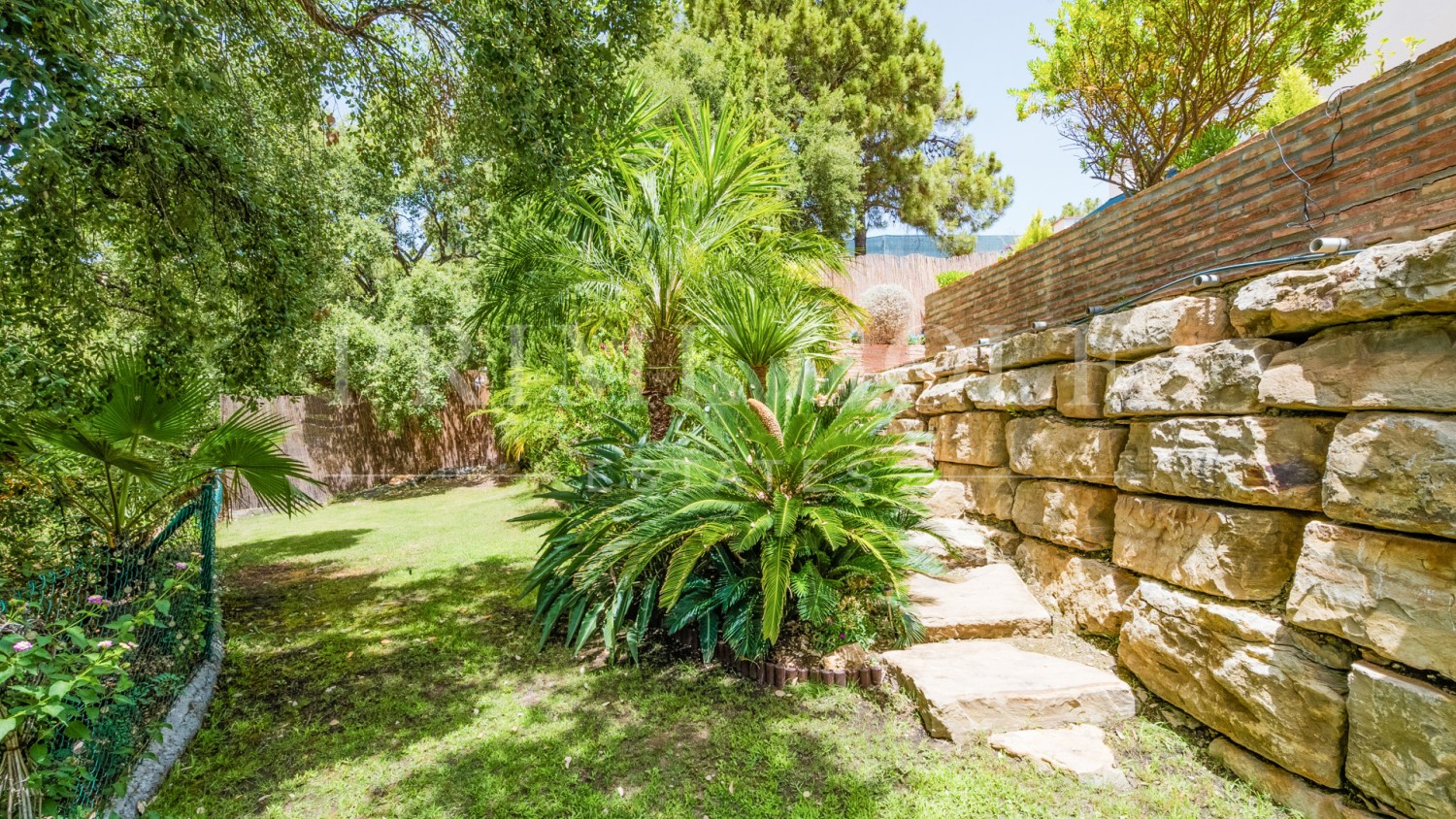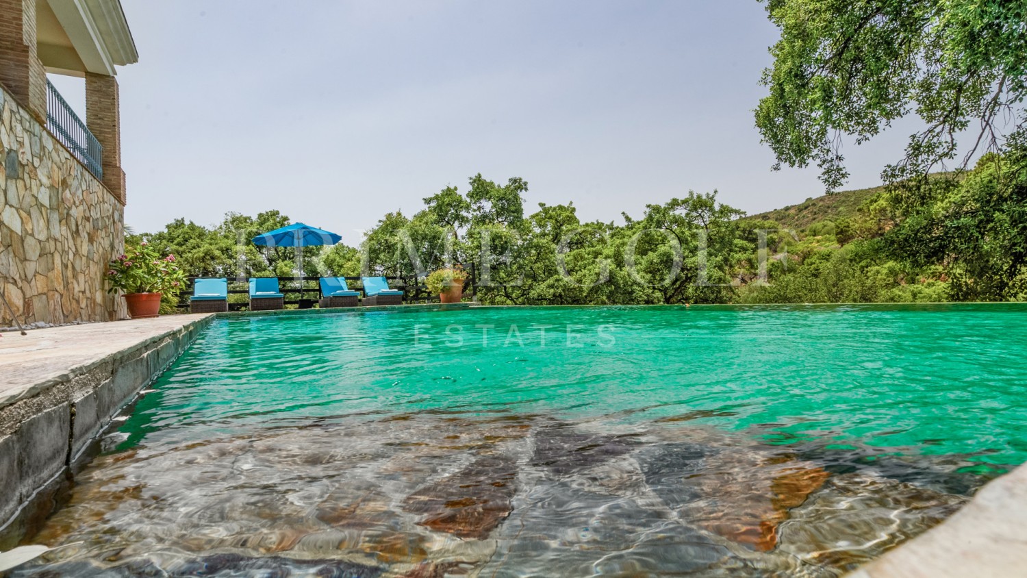 The villa is a contemporary Andalucían style, west-facing, and spans two levels. It features three double-bedroom suites set in the cool overlooking treetops, each with tasteful natural slate mosaic, wood, and glass bathrooms that complement the natural surroundings. The master bedroom suite is exceptionally spacious at 40m2, larger than a typical two- bedroom flat in Central London. All bedrooms open onto large terraces, providing privacy and stunning views.