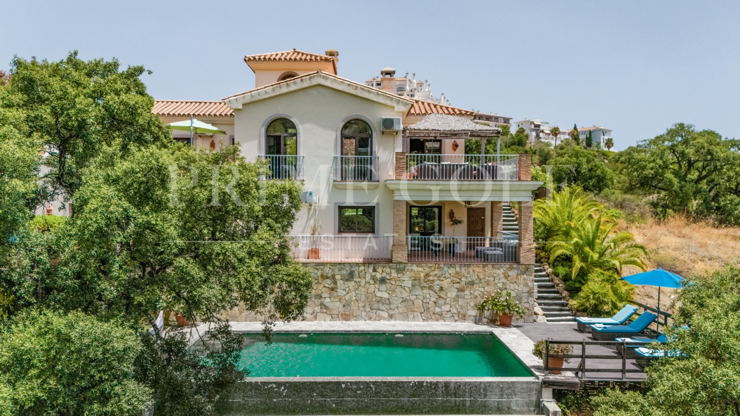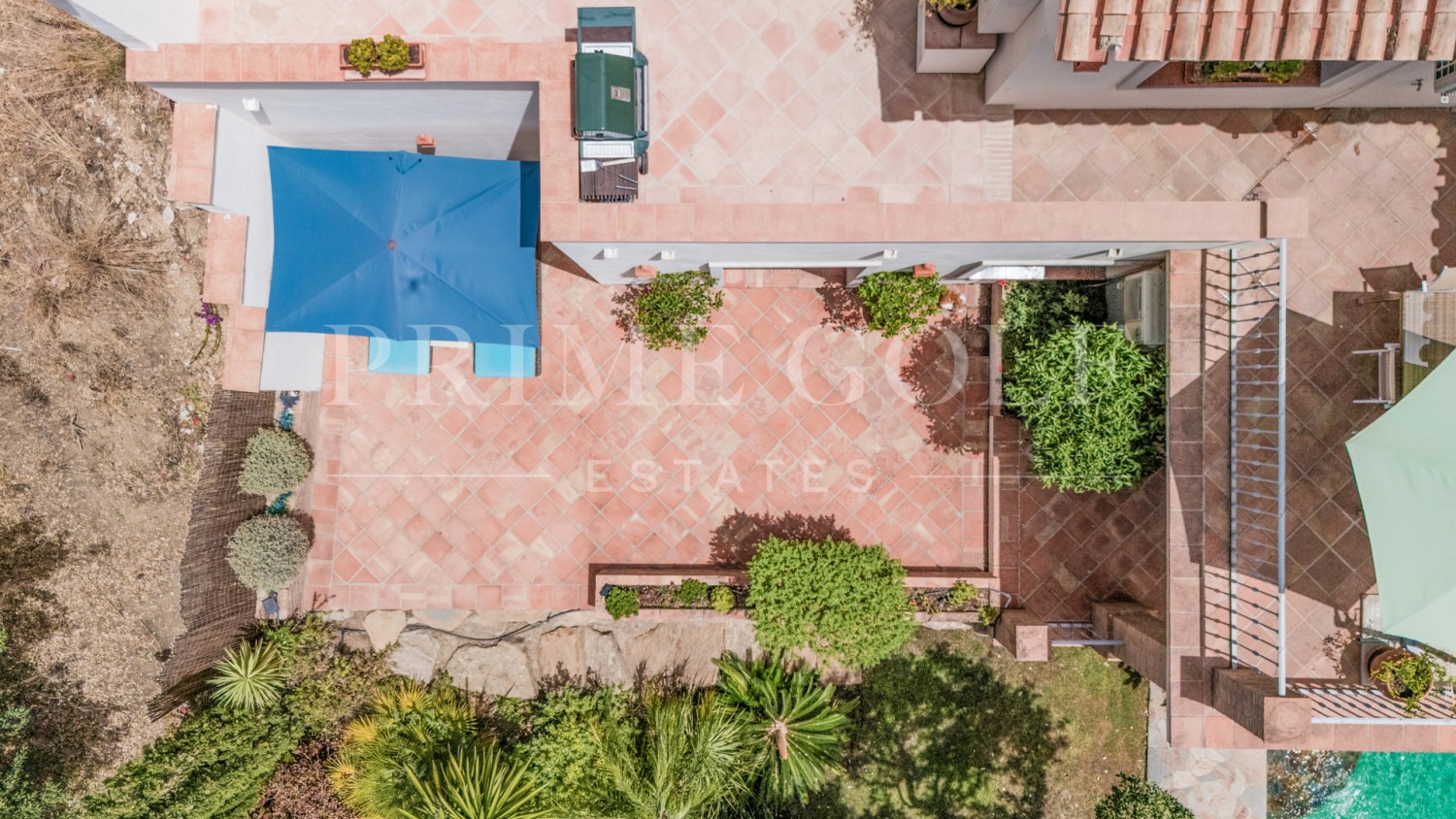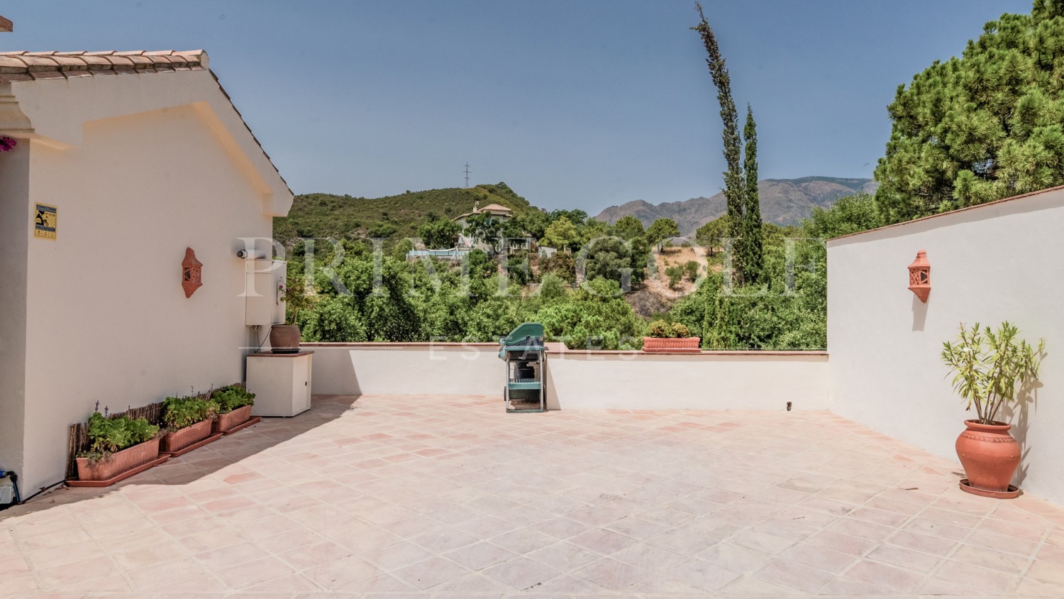 Situated in the serene Forest Hills of Estepona, 'Ifield House' offers breathtaking panoramic views of the sea and mountains. Surrounded by evergreen cork oak and pine trees, this location provides a lush, green environment even during the height of summer. Forest Hills is a tranquil community home to a diverse mix of year-round residents, including families and retirees from various nationalities. The closest neighbours are English, and owned a renowned local golf course. Despite its peaceful setting, the area is well-equipped with amenities, including a tennis club, gym, riding school with stables, two local restaurants and a beach just four minutes down the hill where there is a supermarket, petrol station, Beso Beach club and restaurant, the newly opened Sublim beach club, bar and restaurant at Laguna Village and the facilities of the neighbouring 5* Kempinski Hotel.