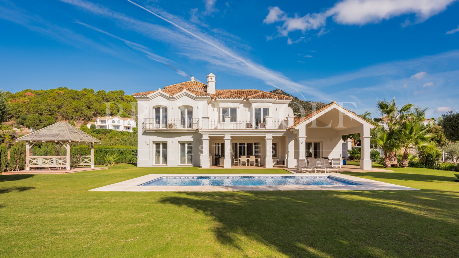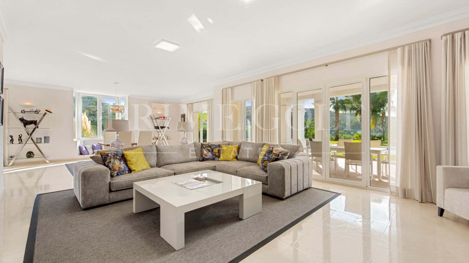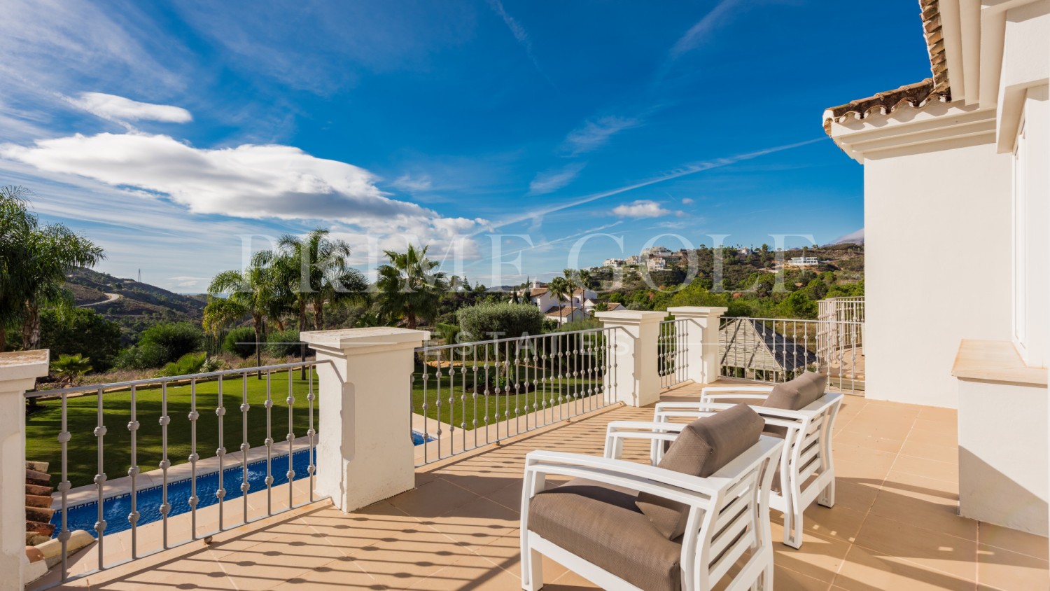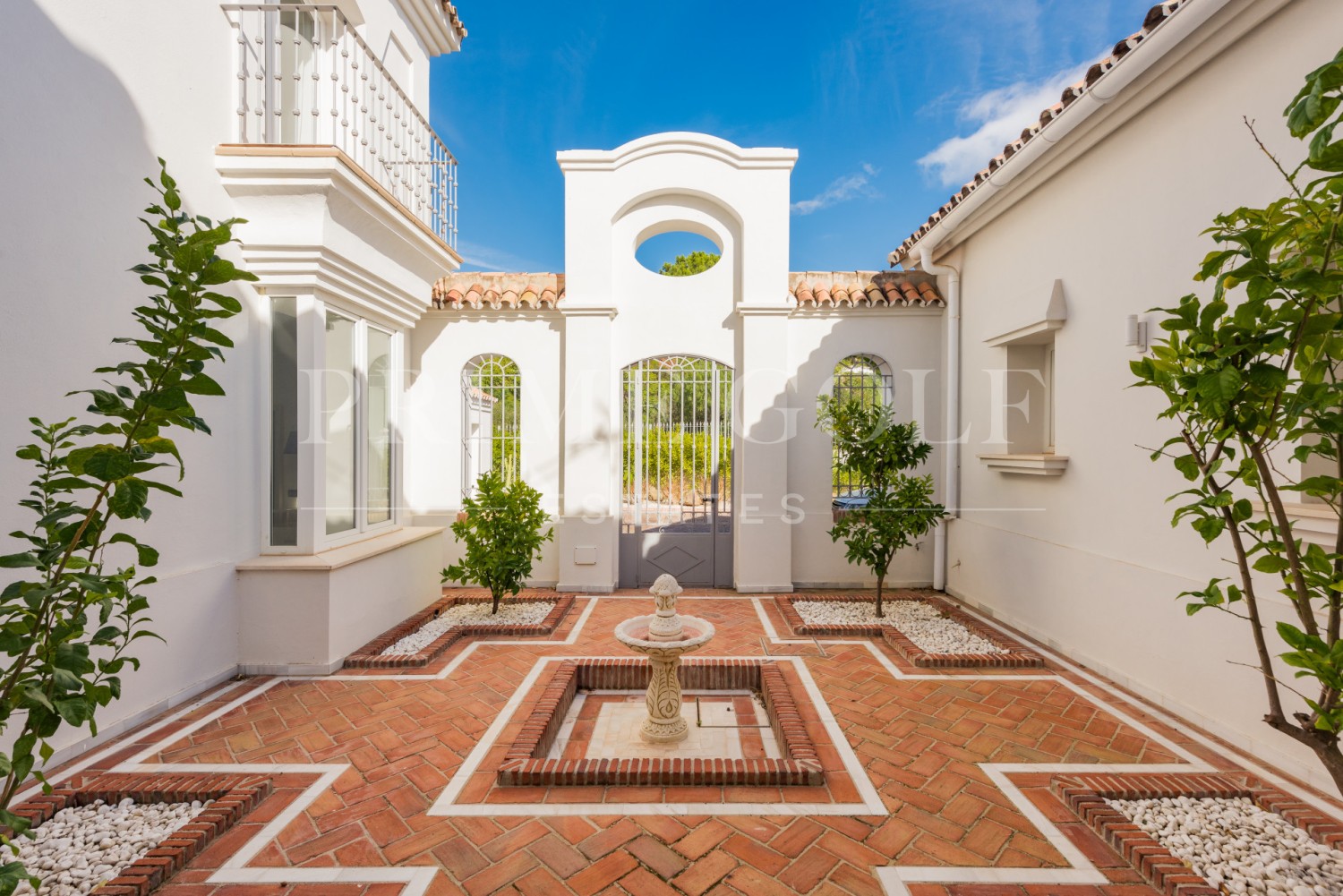 This beautiful family villa is located in the exclusive community of Marbella Club Golf Resort, a sought-after gated urbanization nestled in the valleys between Estepona, Benahavis and Marbella. The property features 2 expansive floors of living areas recently renovated to high standards and abundant outdoor space, including covered and uncovered terraces, private terraces from the main bedrooms, balconies, and a large mature garden surrounding the swimming pool.