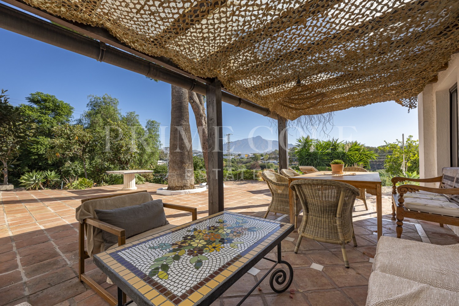 This charming country house in the exclusive area of Guadalmina Alta harmoniously combines the tranquility of rural living with close proximity to all essential amenities. With impressive panoramic views of idyllic natural surroundings, a peaceful lake, and the majestic La Concha mountain, this property is a true gem.