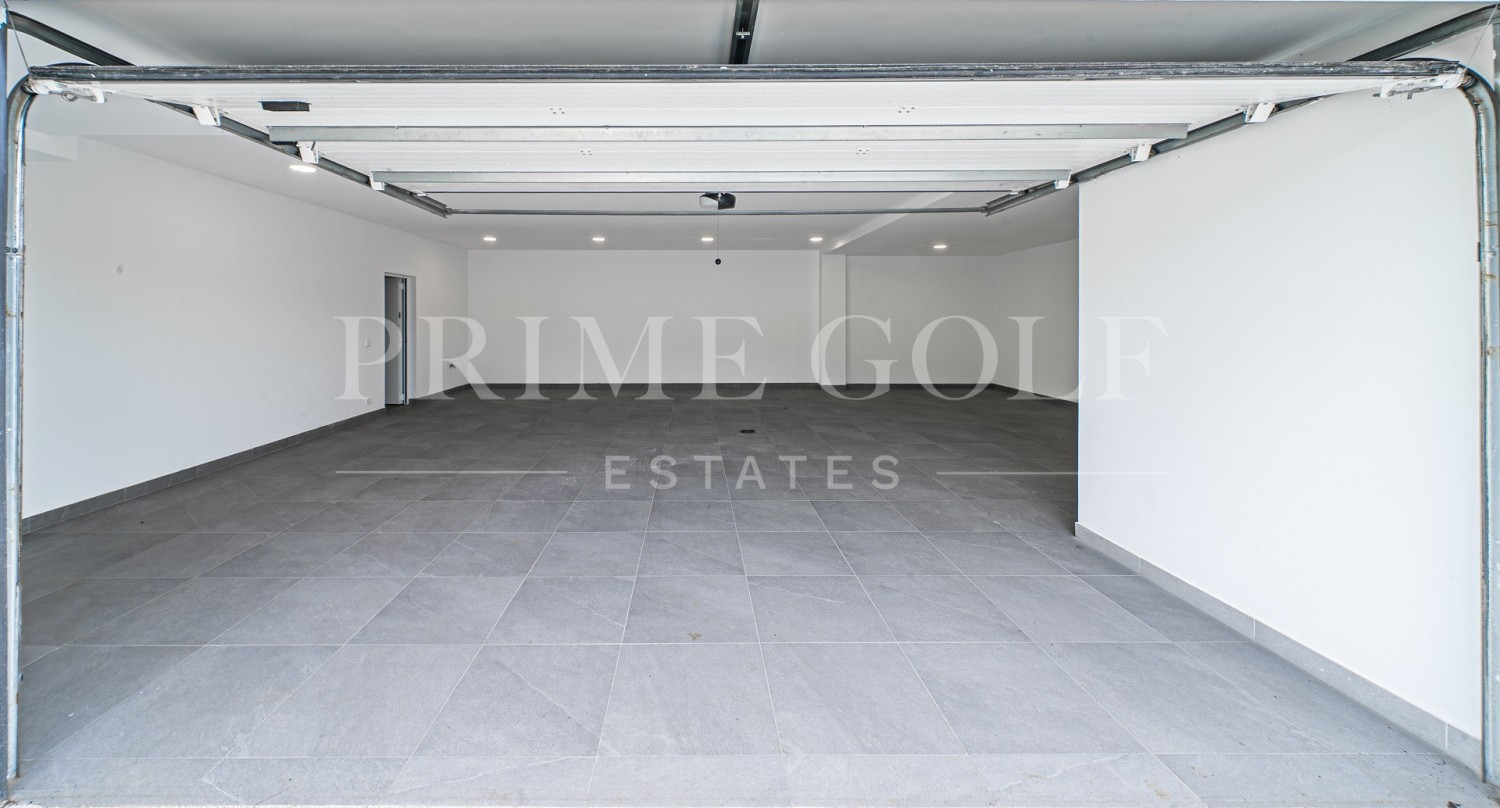 Entering the villa, the main floor has a large space divided into several areas. The fully equipped kitchen with state-of-the-art appliances has a custom-made island.