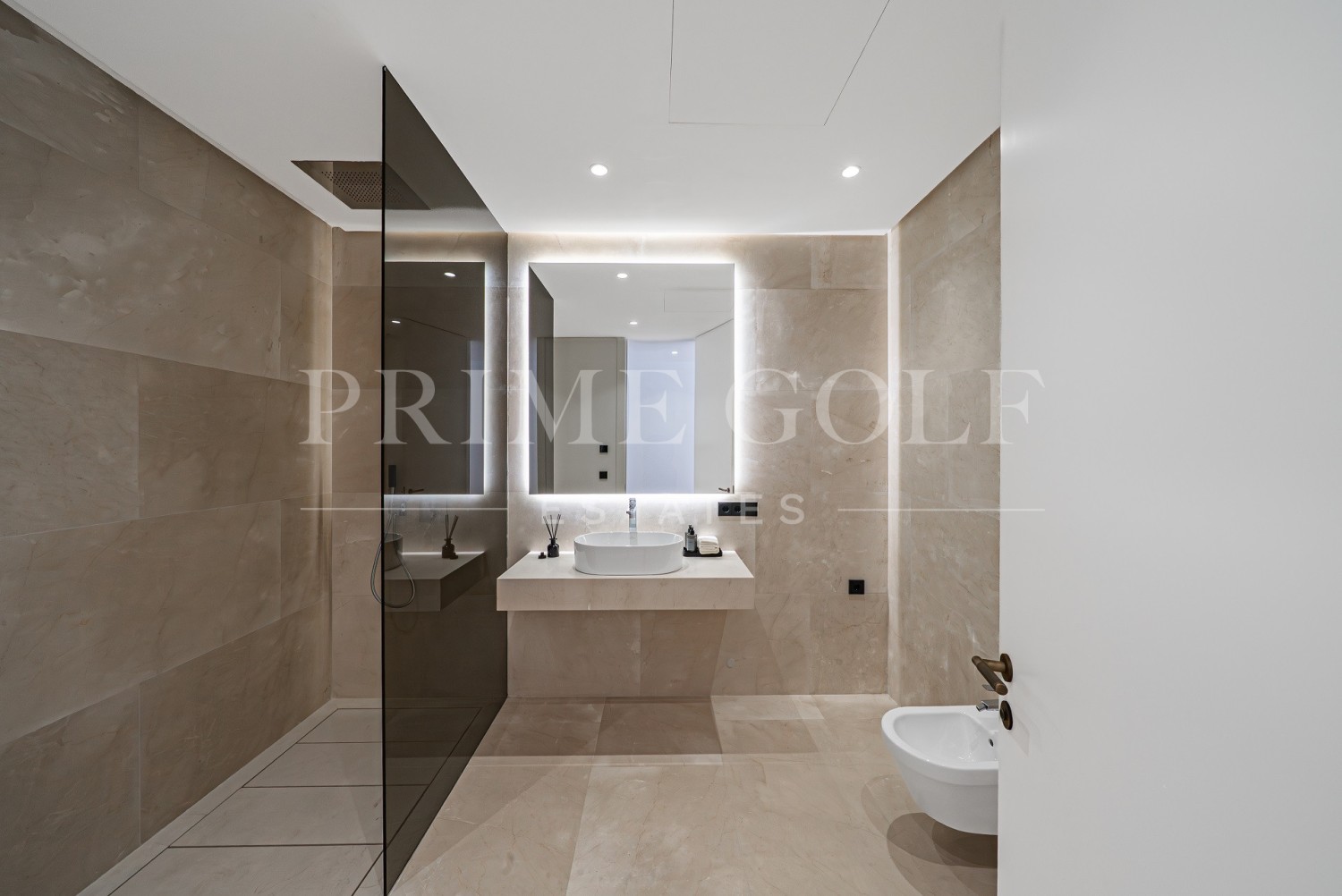 The upper floor consists of 3 bedrooms with bathrooms and dressing rooms en-suite. The master bedroom with access to the large terrace has a spectacular view of the pool and the sea.