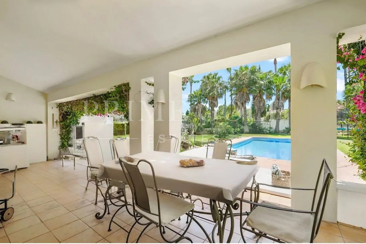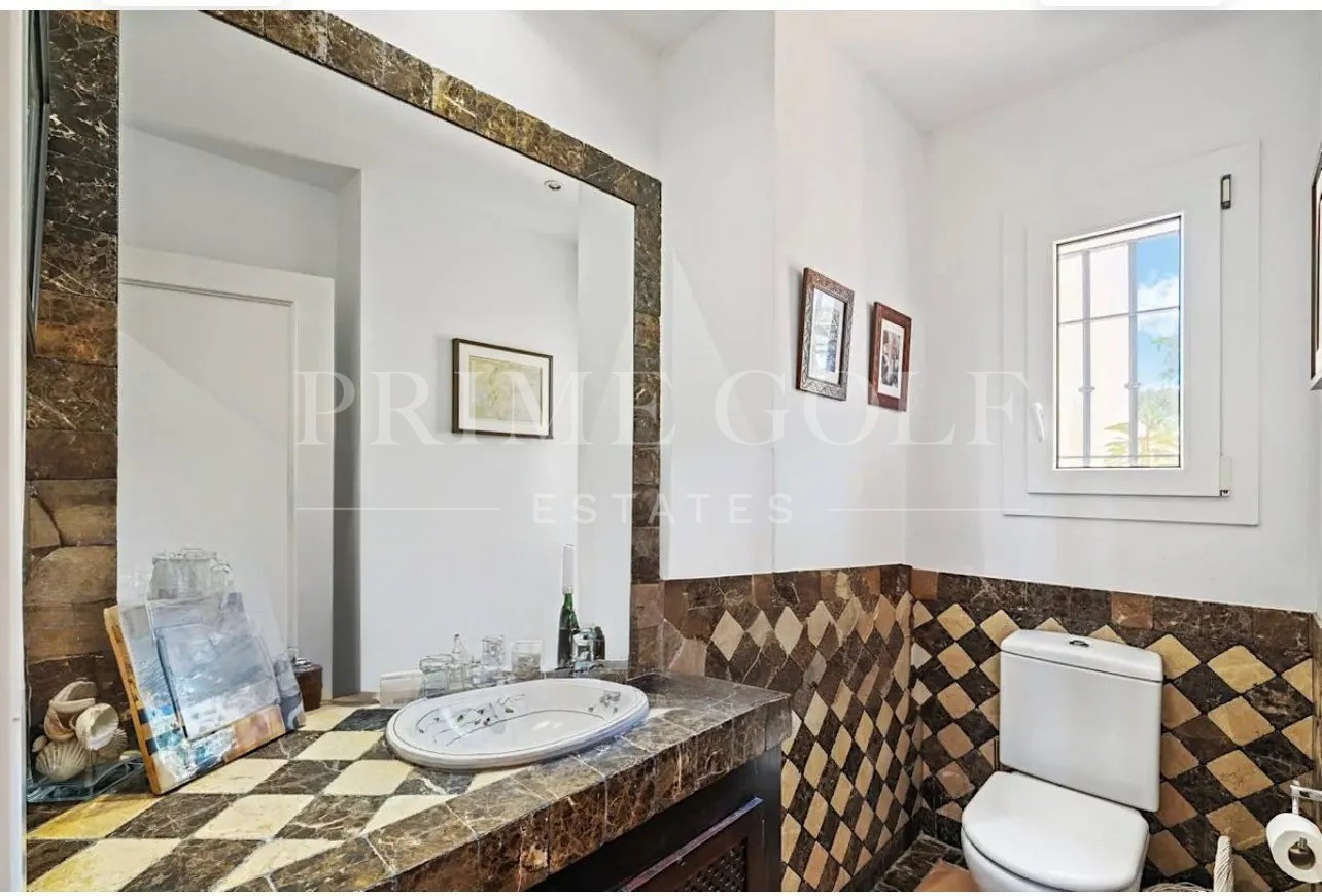 A key highlight of the ground floor is the easy access to the garden-covered terrace and pool area, creating a perfect transition between indoor and outdoor living. The terrace is ideal for alfresco dining and lounging, complete with comfortable seating and a dining table that overlooks the beautifully landscaped garden. For those who love to entertain, a pizza oven and barbecue enhance the space, offering the perfect setup for memorable gatherings with family and friends.