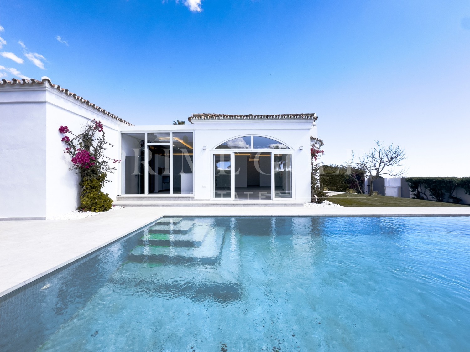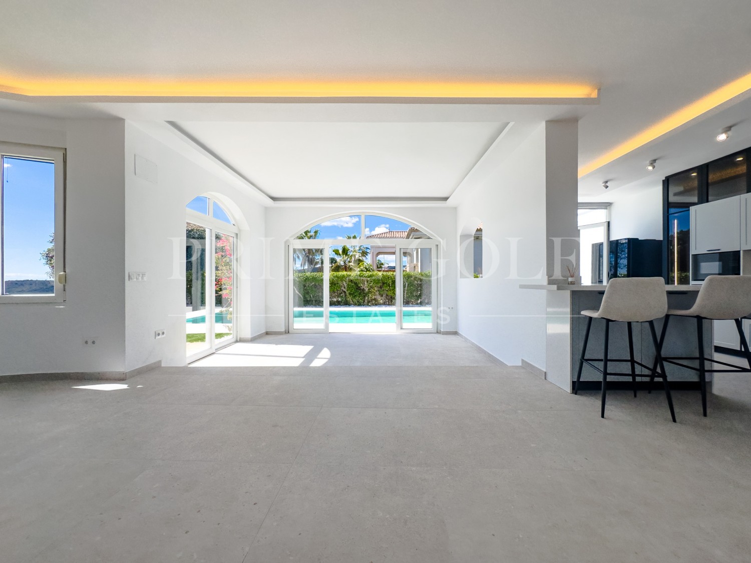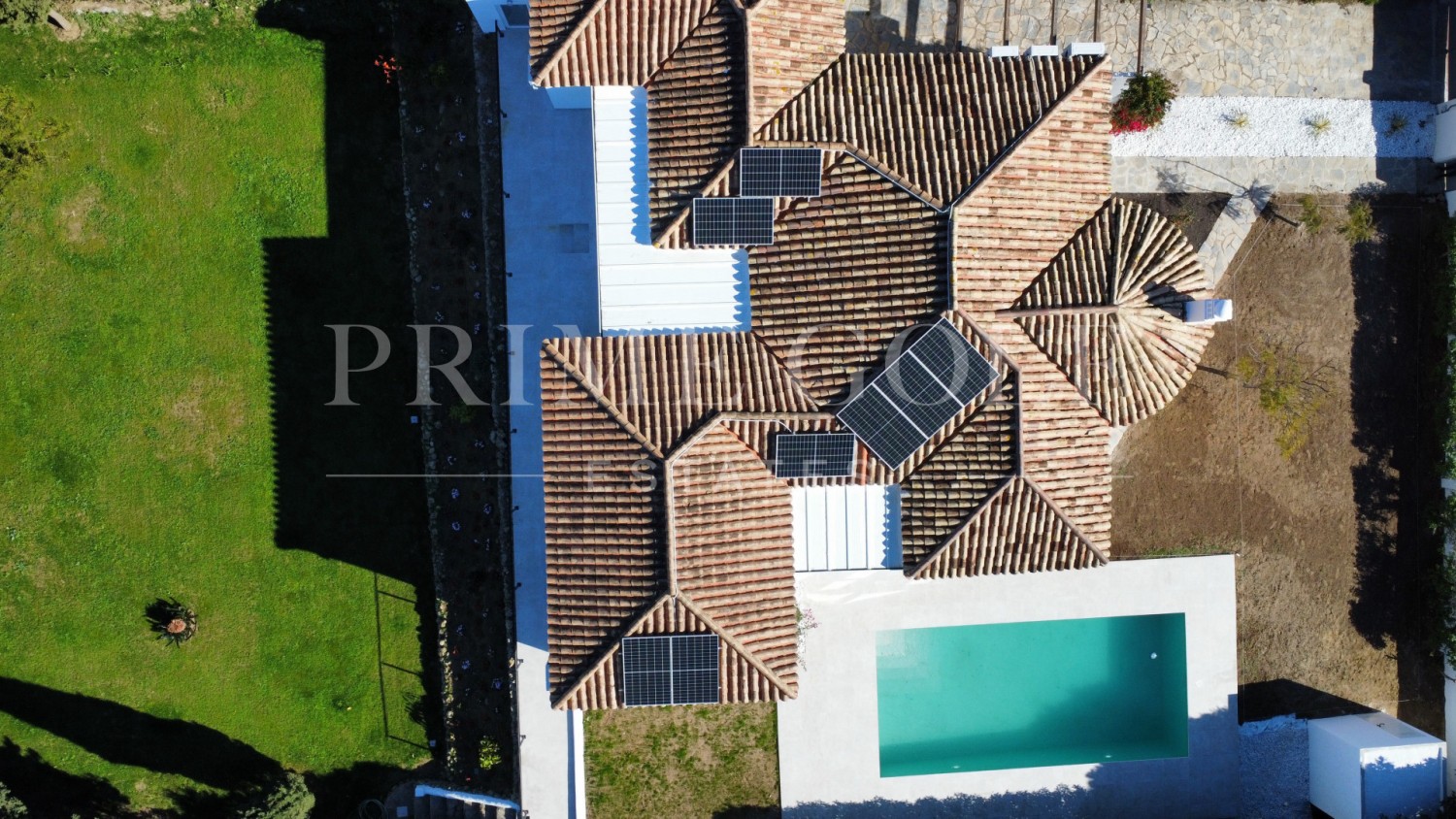 Elegantly poised in the perfect hillside location within the private Hacienda Guadalupe urbanisation sits this charming traditional Andalucian villa. The large private plot overlooks Parque Central del Sol giving great connection with nature with the views outstretched to the Sea and Africa beyond.