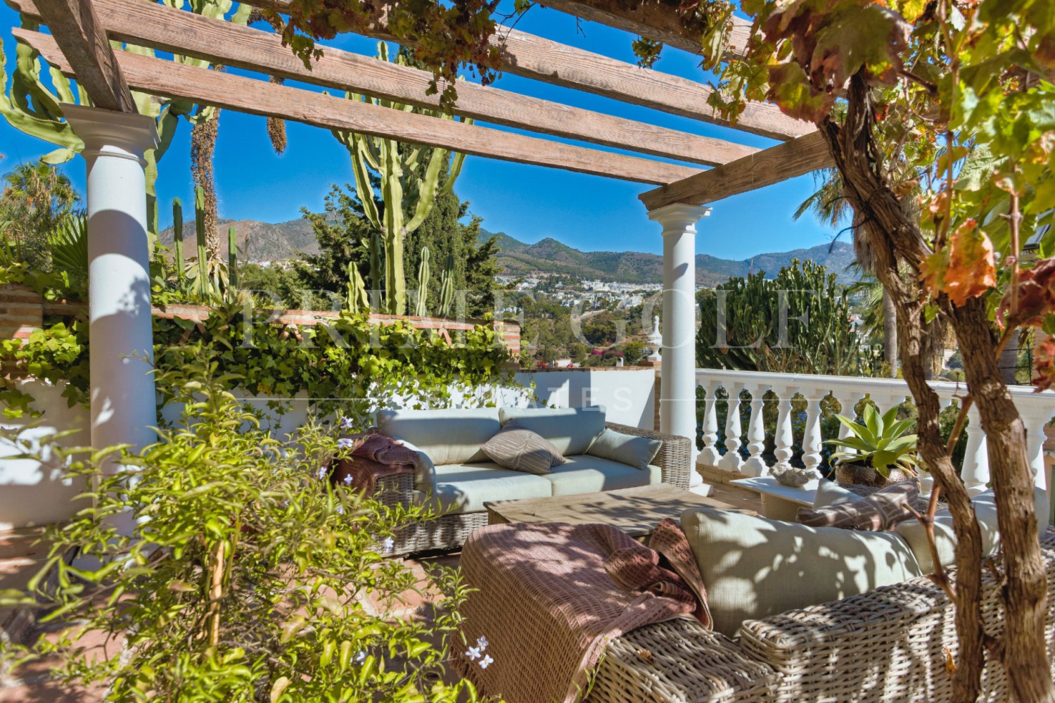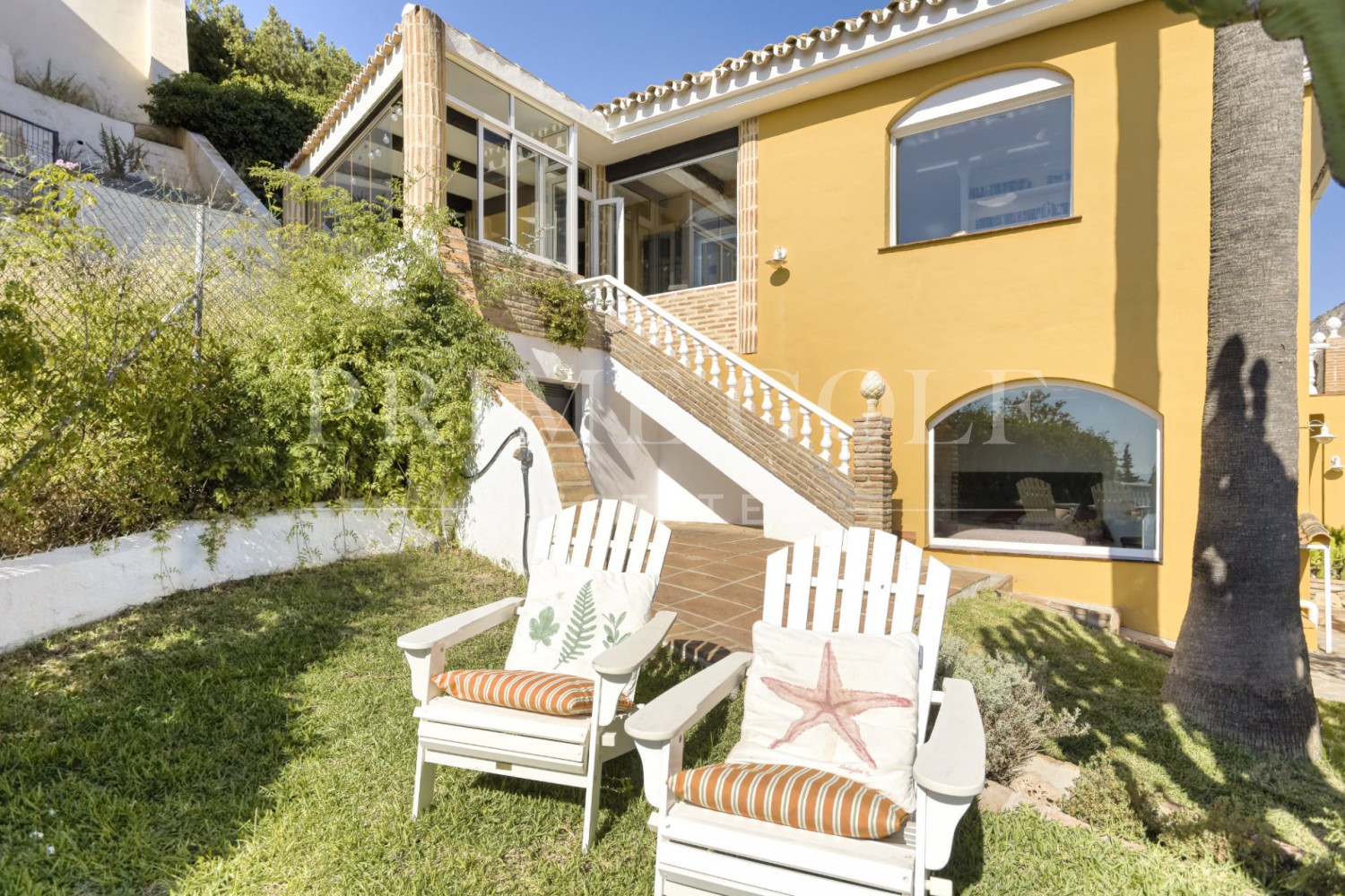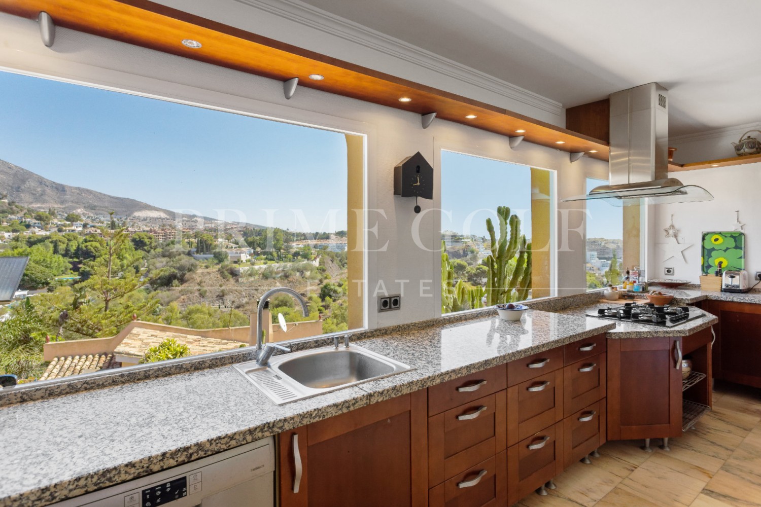 Welcome to this lovely, large villa in Torremuelle. The villa is located on a small hill with amazing views over the coastline and mountains of Benalmadena Costa. The location is just perfect, close to the sea and with excellent communication. You can reach the beach or the train station within minutes of walk. The new racket centre with tennis and padel courts in Torremuelle is also just a few minutes away.