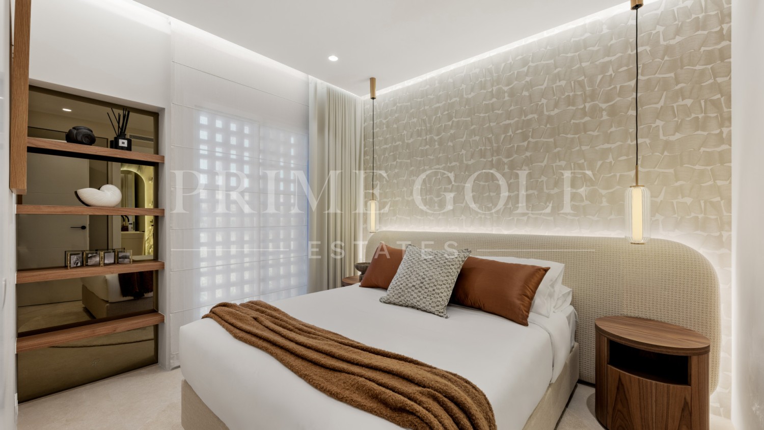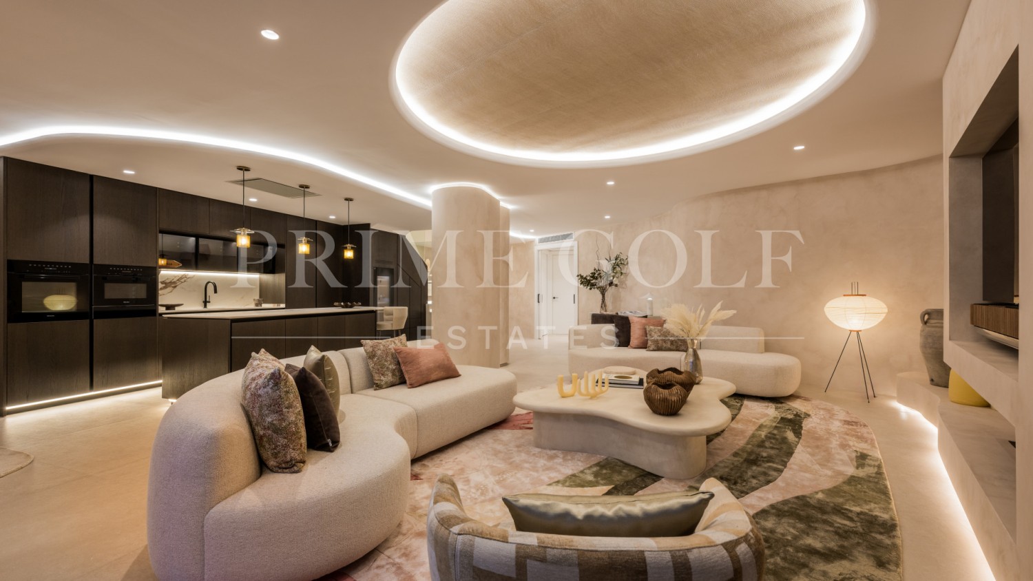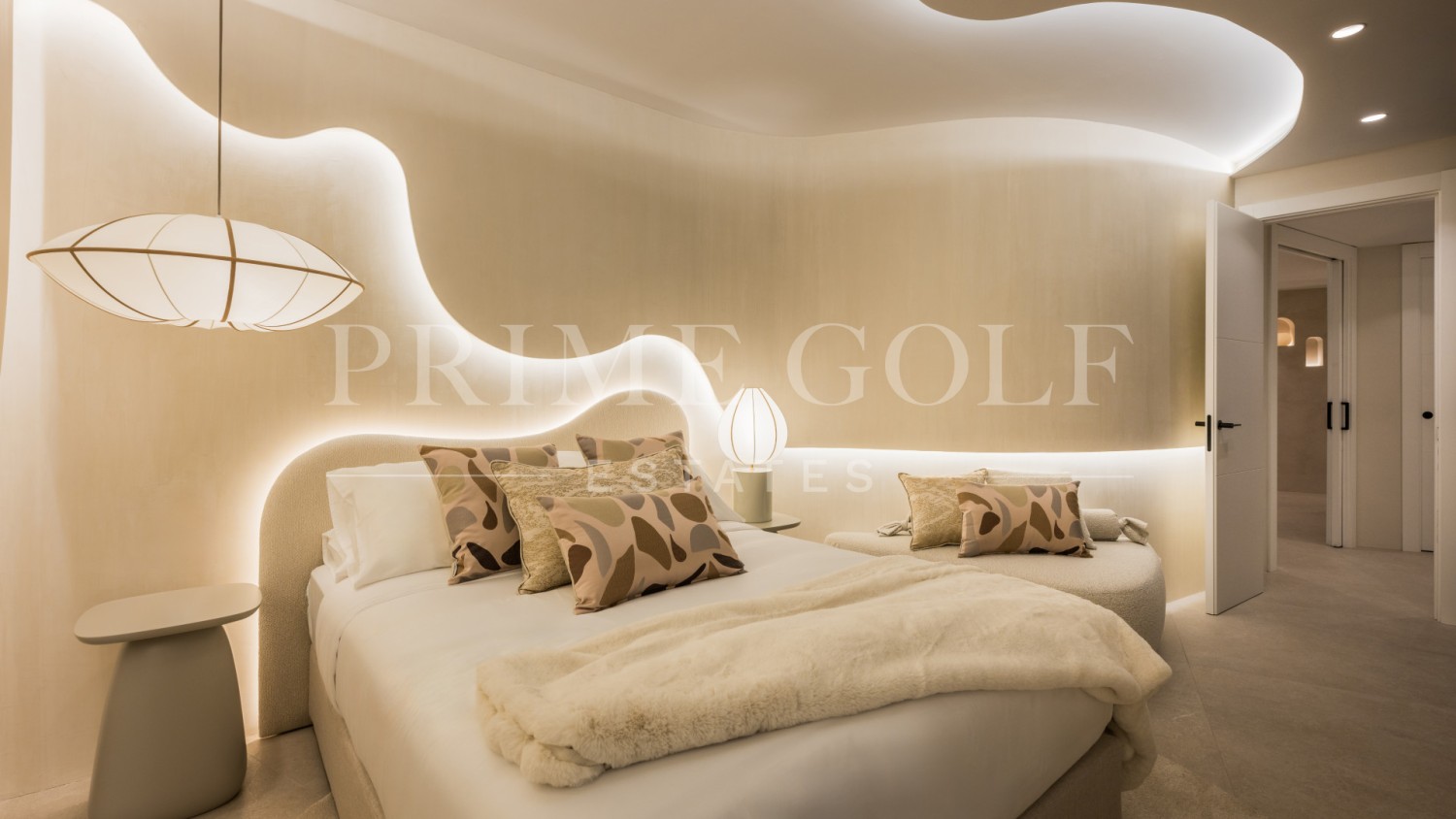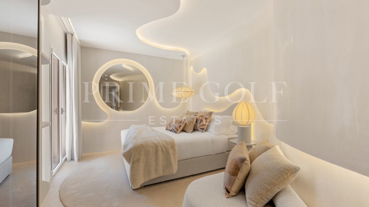 Exquisite four-bedroom, frontline beach duplex penthouse in La Morera, Reserva de Los Monteros. This beachside gated community has 24hr security, communal swimming pool, indoor pool, tropical gardens and direct access to the beach. This luxury property has been finished using high quality materials and elegant furniture. On the entrance level you have an open plan living and dining area with access to a spacious terrace with wonderful sea views; fully fitted open plan kitchen with Miele appliances; three guest suites; guest toilet; and a laundry room. The upper-level leads to the impressive master suite, complete with a walk-in closet and two private terraces. One of the terraces has a sauna and gym and the other gives access to an outdoor kitchen, jacuzzi lounge area and dining area; where you can relax and enjoy the amazing views. Other features include hot and cold air conditioning, underfloor heating, two private parking spaces and a storeroom.