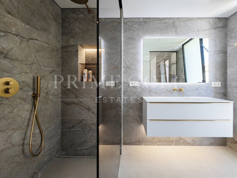 The property is a haven for leisure and entertainment, featuring a private heated swimming pool, a fully equipped gym, and a games room. For those who enjoy outdoor living, the villa offers a private garden, a barbeque area, and multiple terraces, including a covered terrace perfect for al fresco dining. The panoramic views of the sea and mountains can be enjoyed from every angle, making this villa a perfect retreat for relaxation and enjoyment.