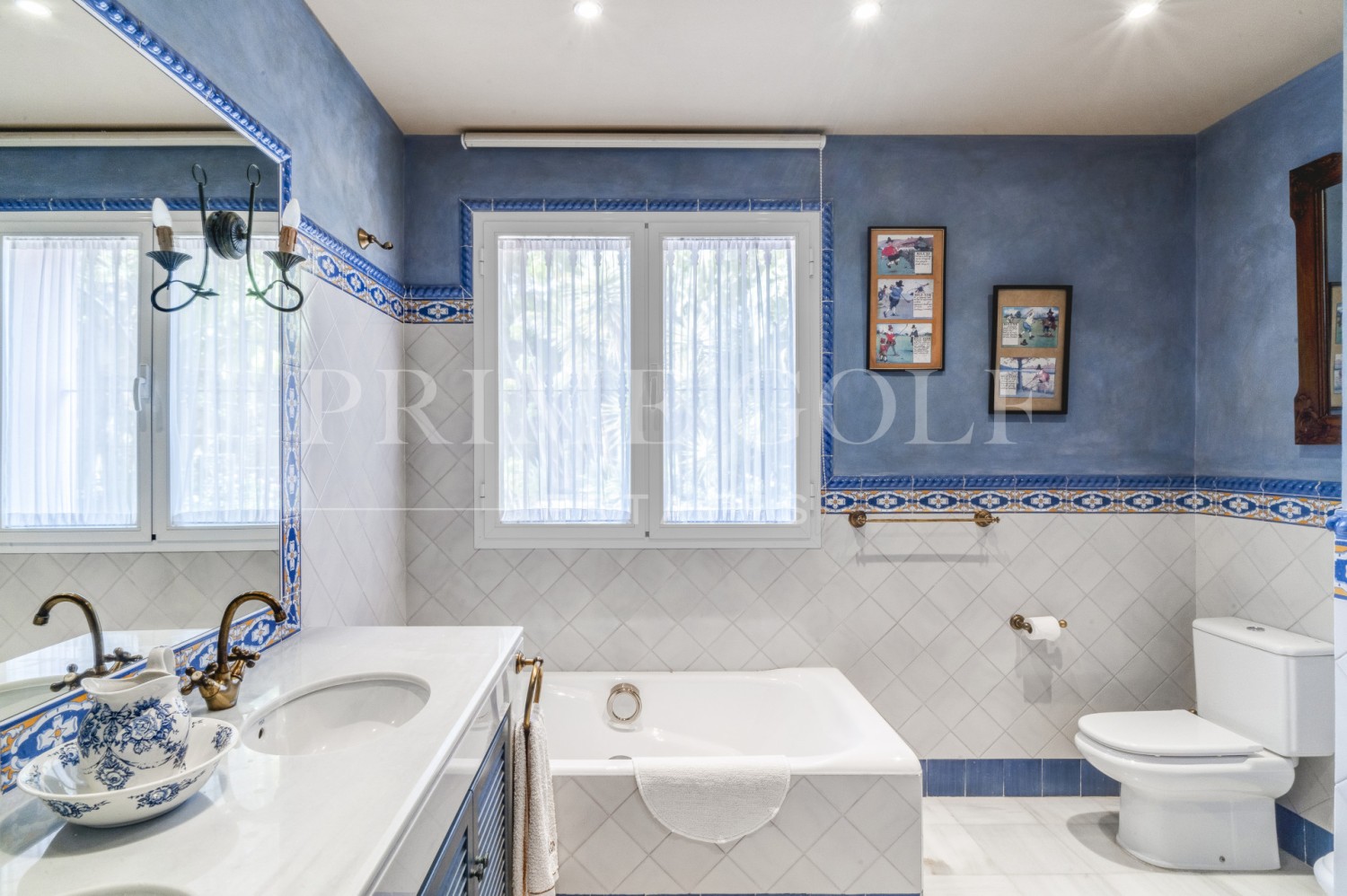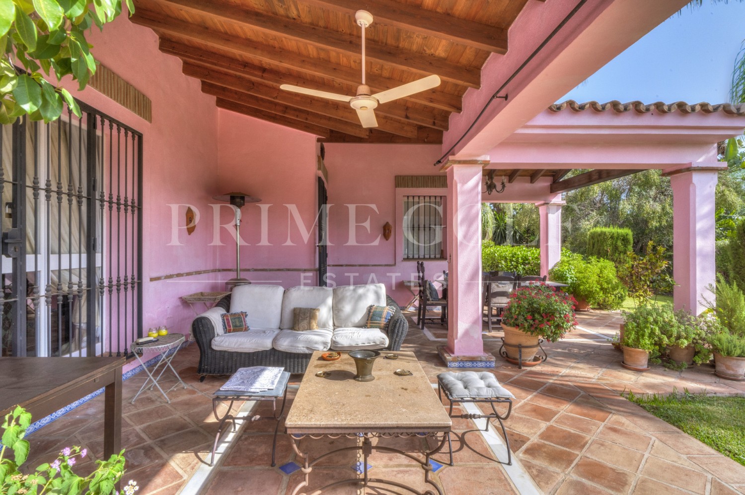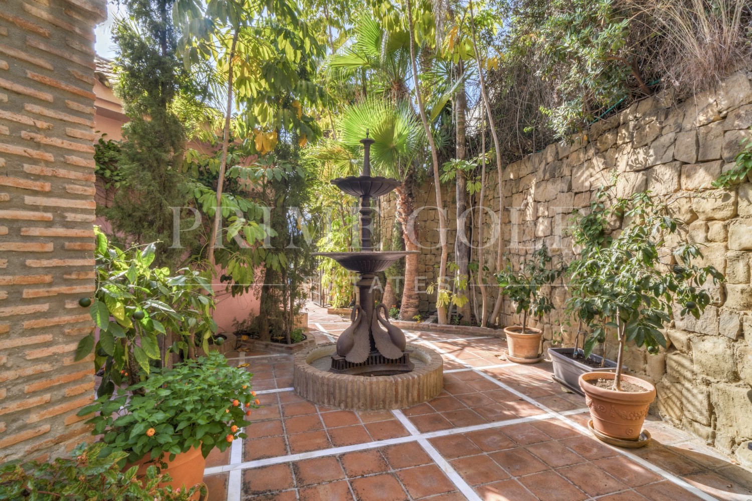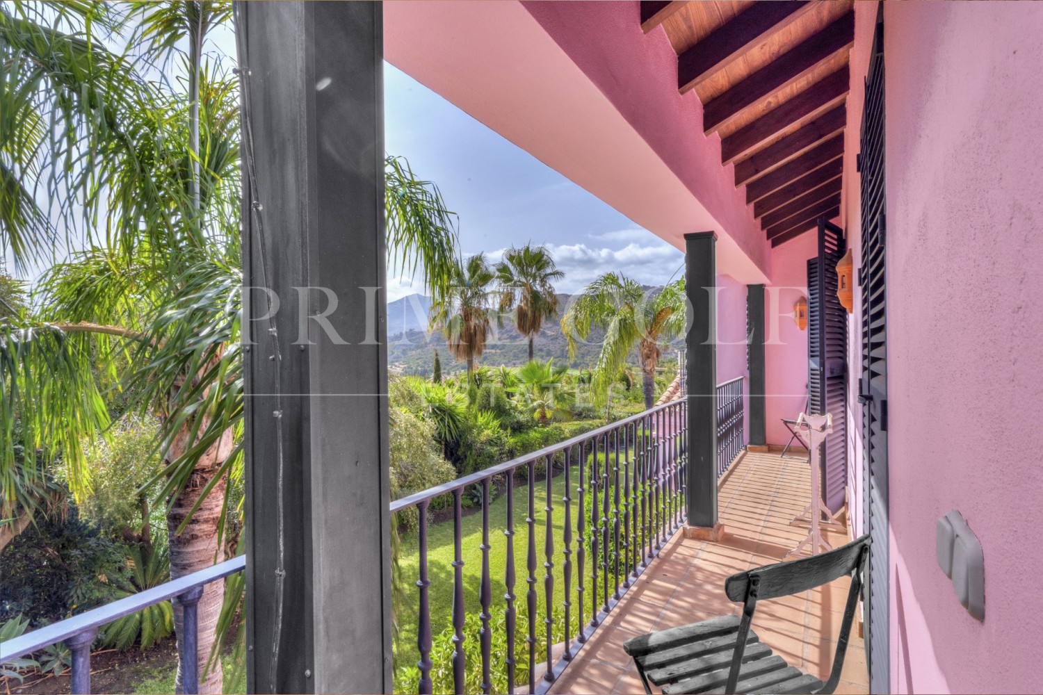 Charming five-bedroom Andalusian style villa in the gated community Puerto de Los Almendros, Benahavis. Located in a sought-after area, only ten minutes from Puerto Banús and the beach. The property is set on a large plot with mature gardens, swimming pool, barbecue area, and a courtyard with a fountain. The villa has a southwest orientation that boasts stunning views of the golf course and the country side which are fully protected. You enter the grounds through impressive gates into a courtyard with ample parking. The villa is distributed over 2 floors with a double height entrance hall and spacious rooms offering plenty of natural light throughout the house. The ground floor offers both formal and informal lounges; a dining room connected to a fully fitted kitchen, perfect for entertaining; and a Guest Suite. The first floor has the master suite and two bedrooms with an ensuite bathroom, all of the bedrooms open on to lovely balconies which can be accessed without entering the villa. In addition to reception areas this wonderful home also has a library, which could be the 6th bedroom, utility, laundry and storage rooms, and a studio apartment with independent access. Other features include air-conditioning, gas central heating, security window bars, fitted wardrobes and solar panels. This traditional villa was designed by renowned architect Cesar De Leyva and is the epitome of luxury living; it can be your full-time residence or a holiday retreat offering absolute peace and privacy.