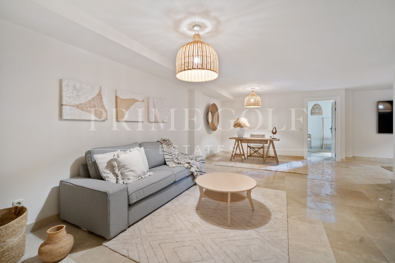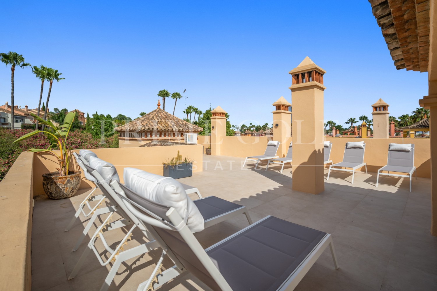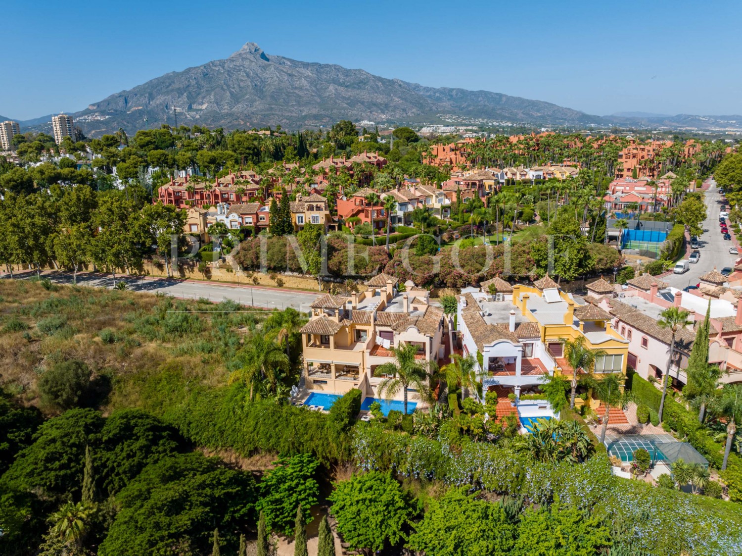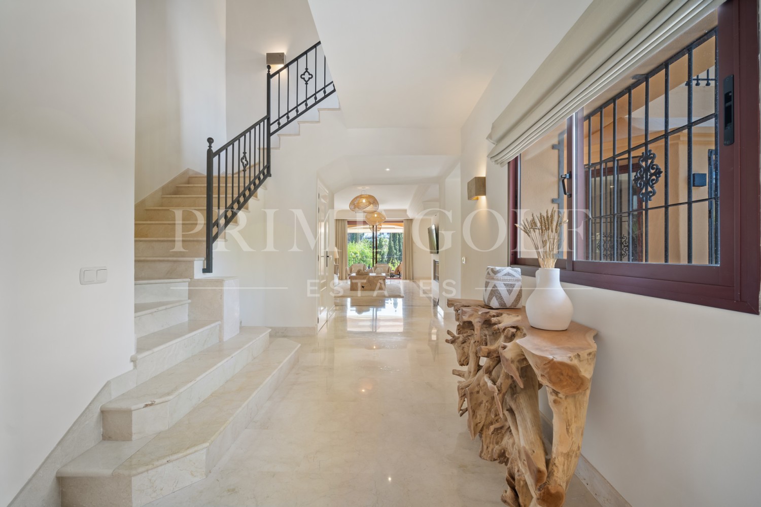 This spacious 5 bedrooms villa is situated in the gated community of Vasari Resort, Puerto Banus. Calm and very well maintained community just few steps from all the amenities and famous Puerto Banus. Perfect combination for those seeking tranquillity, but being next door to the active social life.