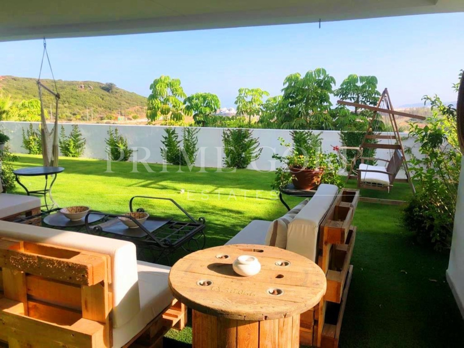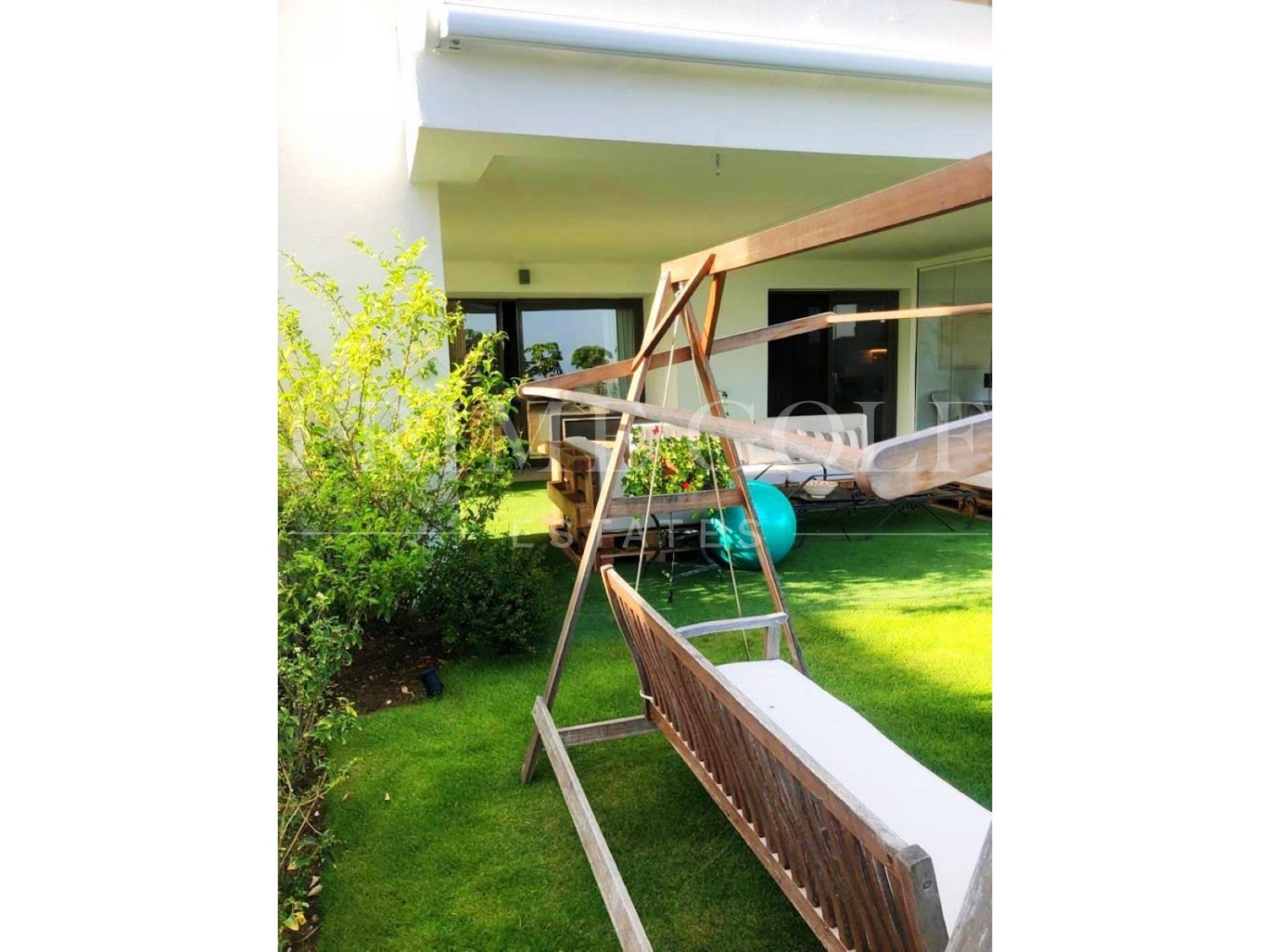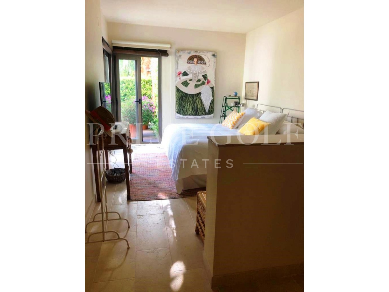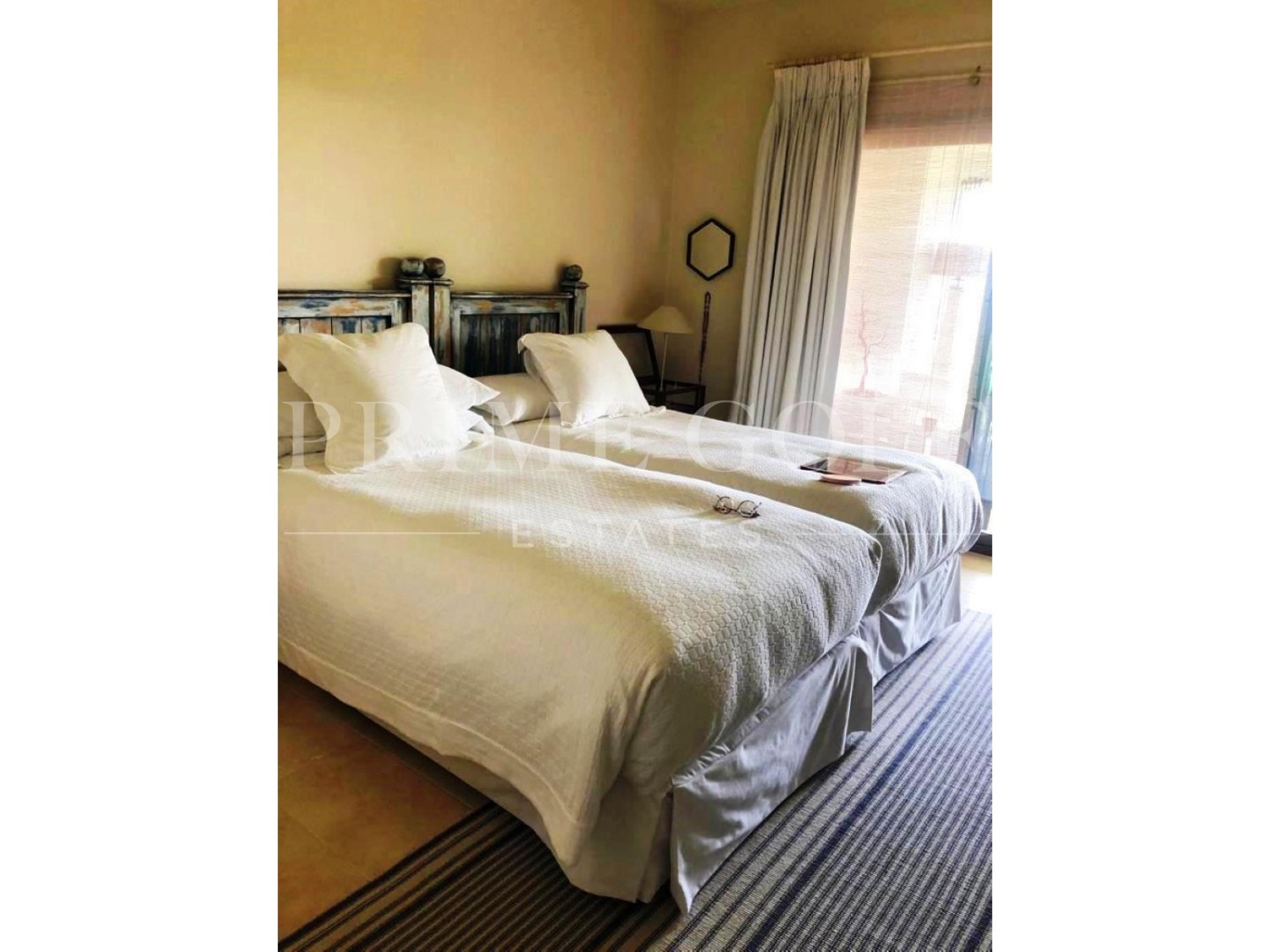 private garden, two terraces, backyard and three parking spaces. There are tho storage rooms. Big wardrobe. It has four double bedrooms, all with bathroom en suite and also a courtesy toilet. The apartment is inside the Finca Cortesin, with 24 hour security and the best views of the Bay of Casares. The swimming pool is communal, but there is possibility to have a private one on the terrace