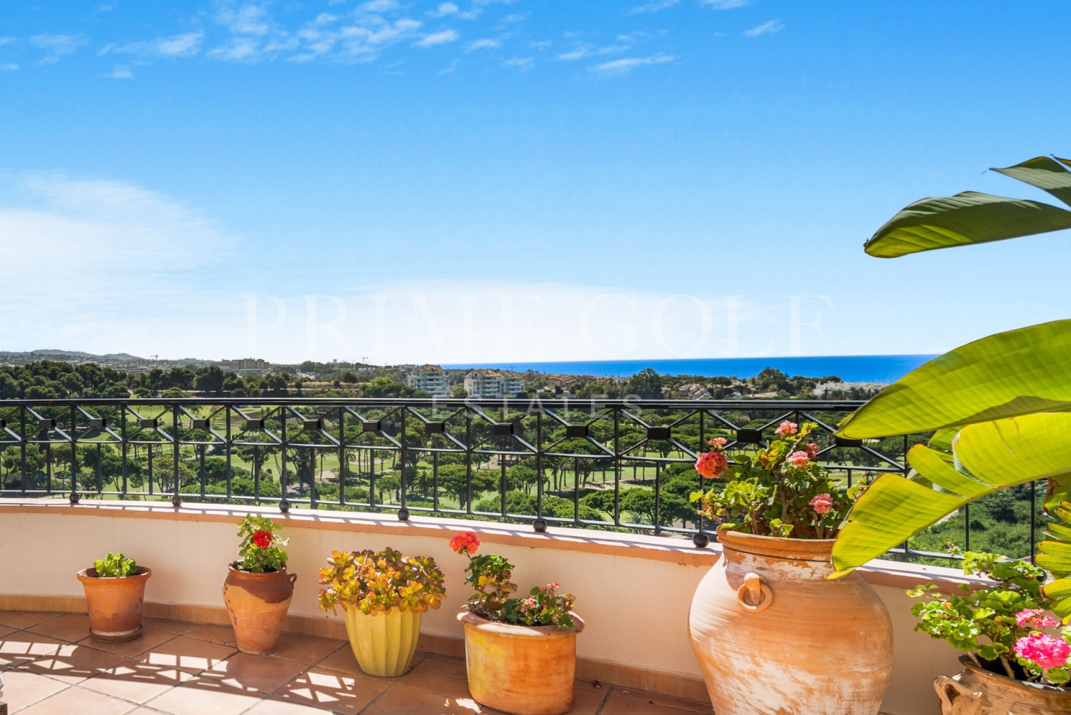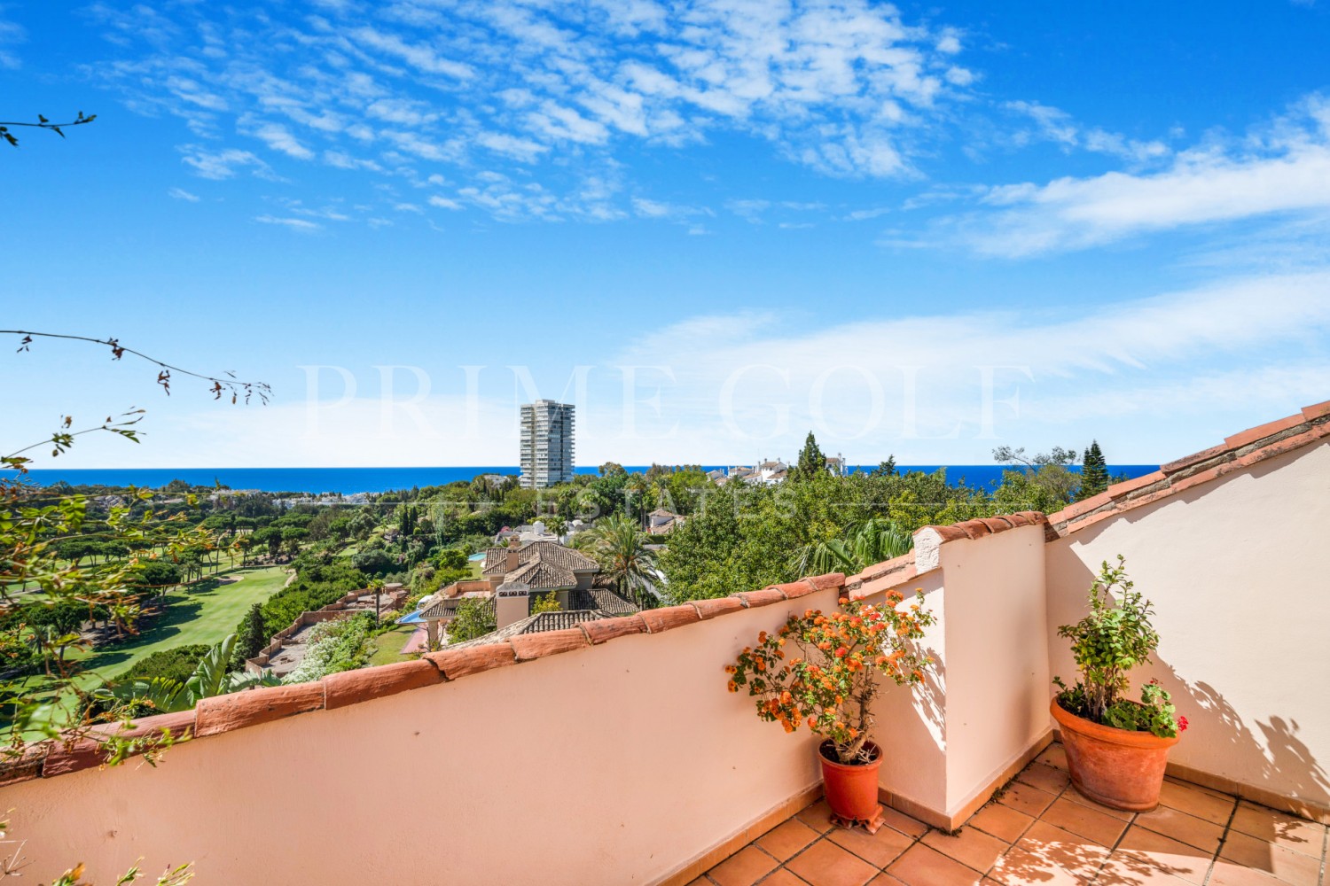 Impressive four-bedroom duplex penthouse in Vista Golf, Rio Real; surrounded by golf courses and close to the beach and local amenities. This wonderful property has unbeatable views from all rooms and terraces, overlooking the sea, golf, lake and mountains! The entrance has an open plan living and dining area with access to two private terraces with sea views; fully fitted kitchen; and two guest bedrooms with en suite bathrooms. The upper-level leads to the guest suite and master suite, complete with private terraces and amazing views. Other features include hot and cold air conditioning, fitted wardrobes, two private parking spaces and two storerooms.