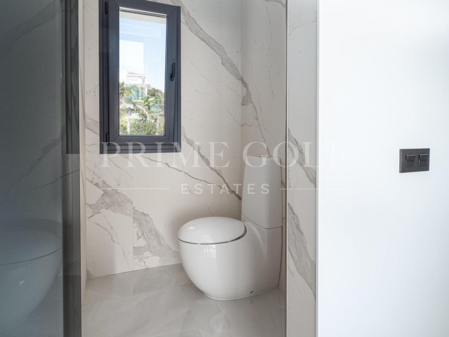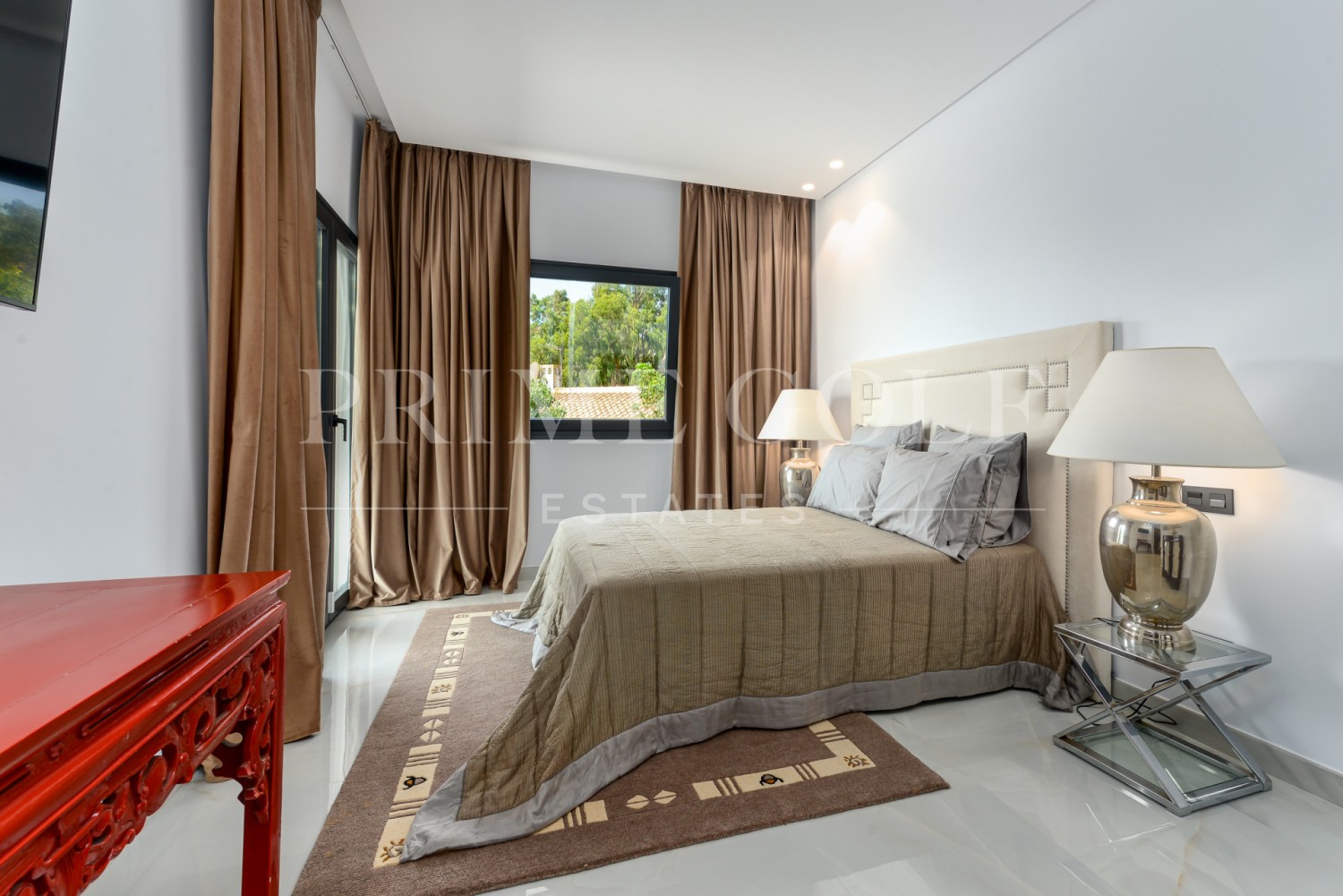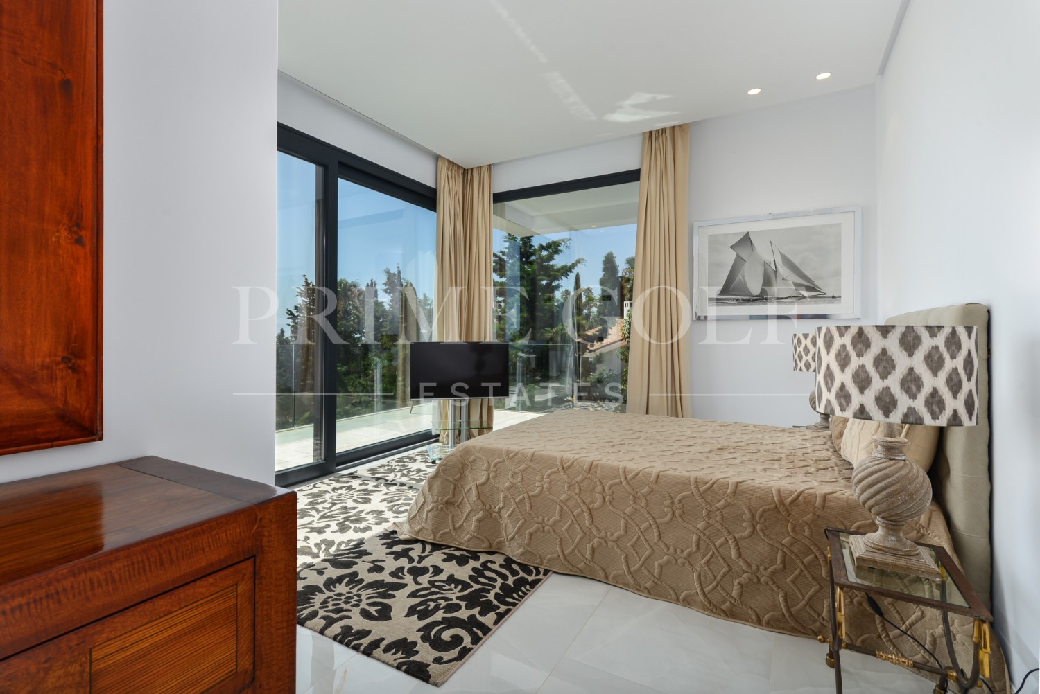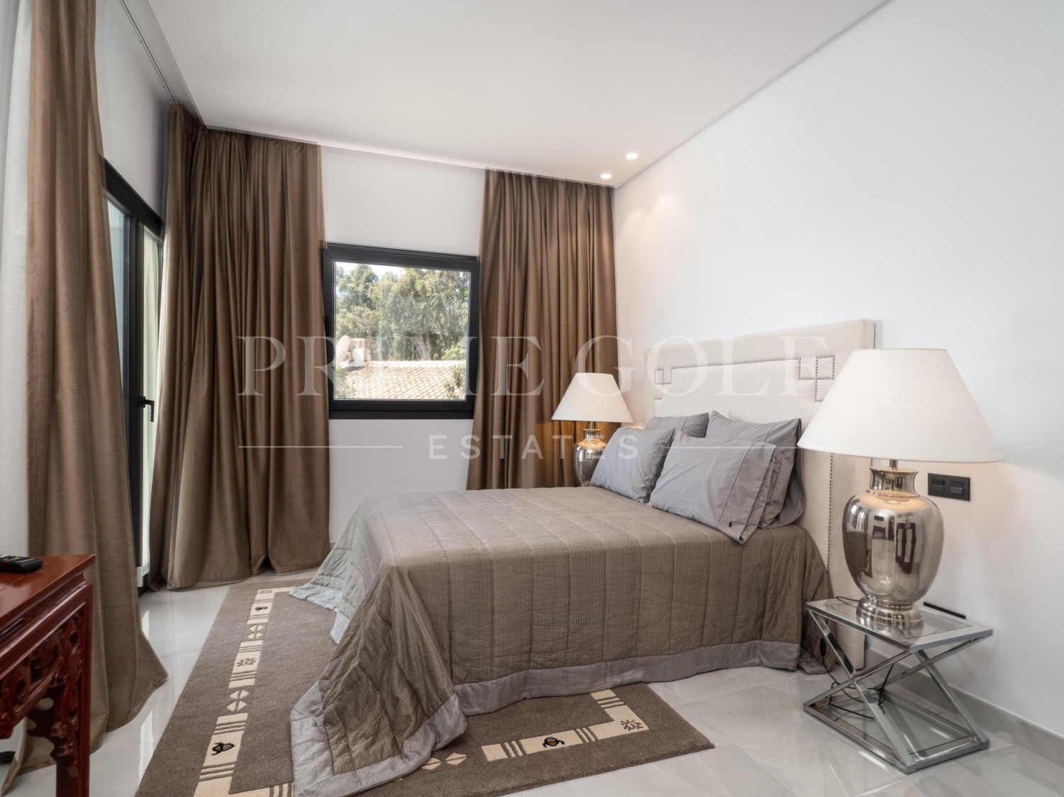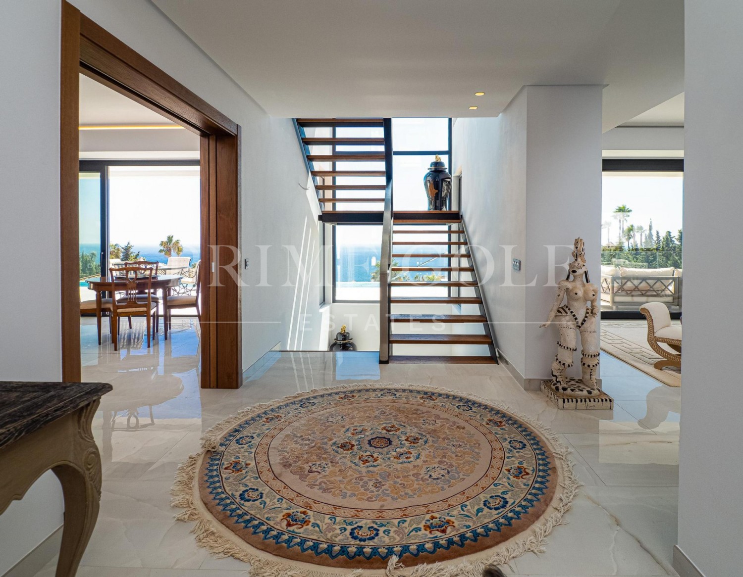 Security and comfort are prioritised with amenities such as air conditioning, central heating, double glazing, electric blinds, video entrance, and an alarm system. The property’s covered and uncovered terraces, barbeque area, and balcony make the most of the scenic garden, pool, and sea views. Located close to the beach, golf courses, and local town amenities, this villa is an exceptional choice for those seeking a luxury lifestyle in Sotogrande’s sought-after surroundings.