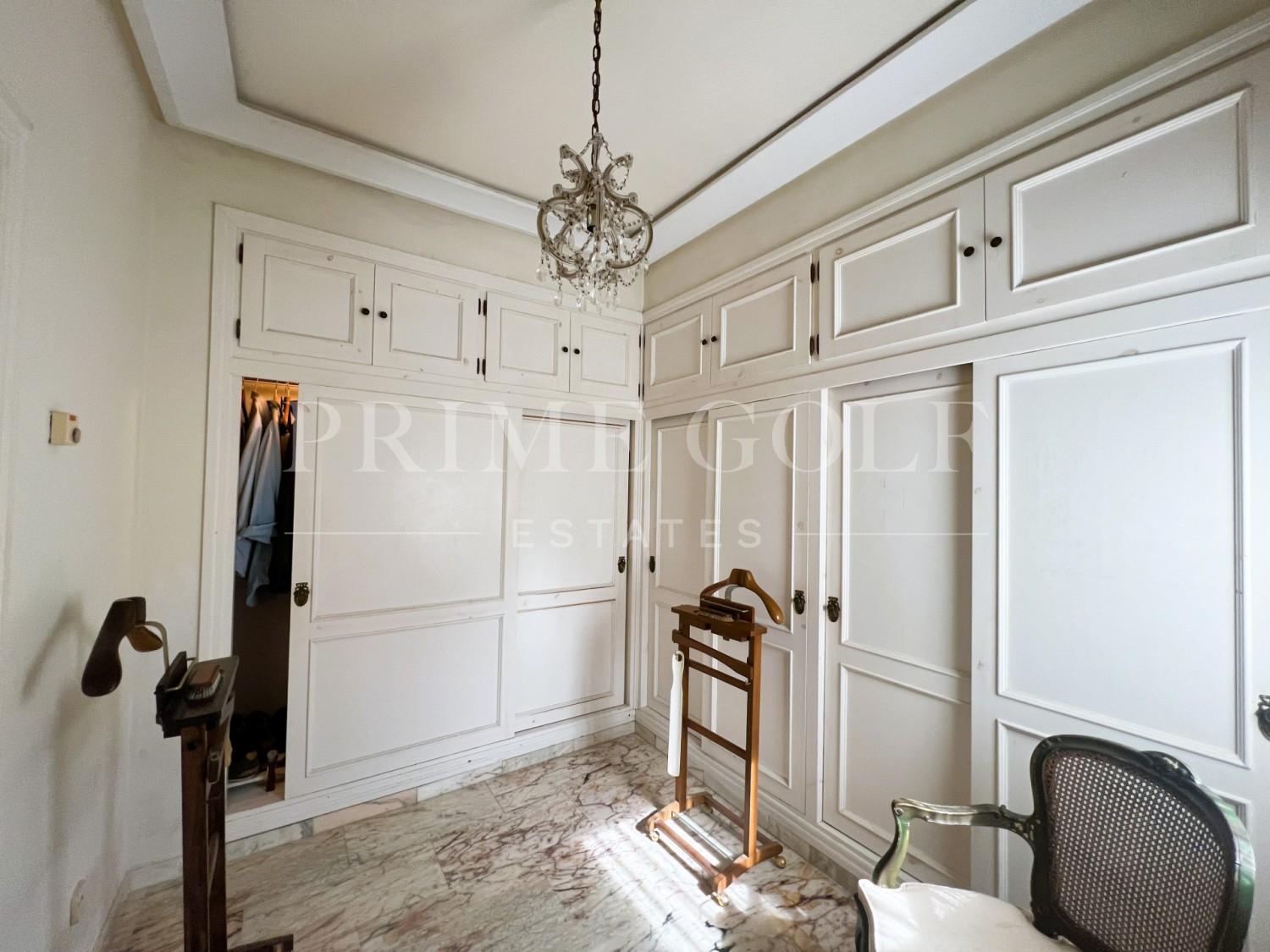 The villa offers a generous built area of 414m² on a substantial plot of 1,628m², providing ample space for comfortable family living and entertaining. Inside, there are four spacious bedrooms and three bathrooms, as well as an additional guest toilet. The property includes a private garage, a well-maintained private garden, and benefits from an advanced alarm system for added peace of mind. Although the villa requires renovation, it provides the perfect canvas for personalisation, allowing new owners to design their dream home to exact specifications.