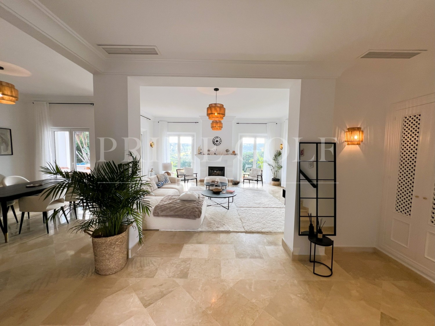 Presenting Villa G12, a refined four-bedroom villa for sale in the highly sought-after Zona G of Sotogrande Alto, Cadiz. Nestled within a prestigious gated community, this property offers a serene retreat with sweeping country, mountain, and partial sea views. The villa’s recently renovated interiors and prime position inside a renowned golf resort make it an attractive choice for those seeking a sophisticated lifestyle in Sotogrande.