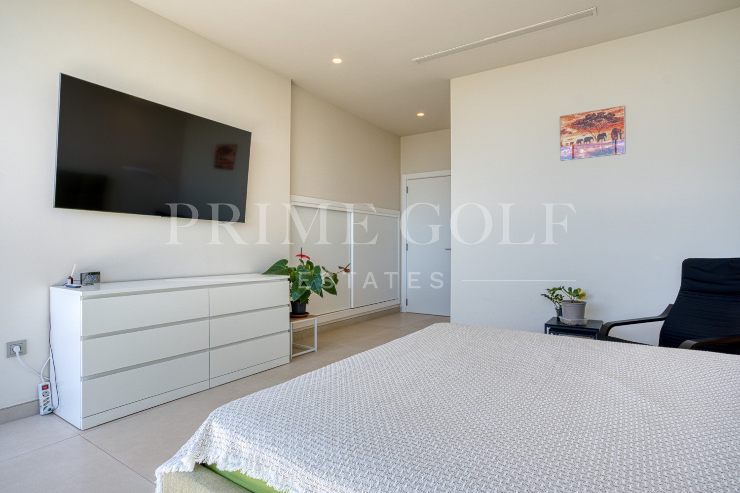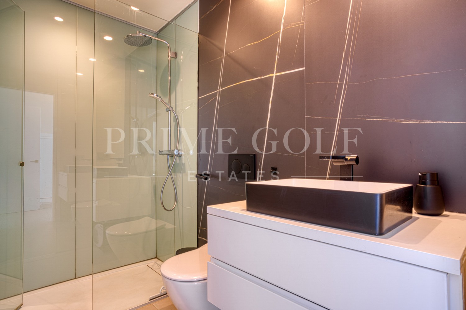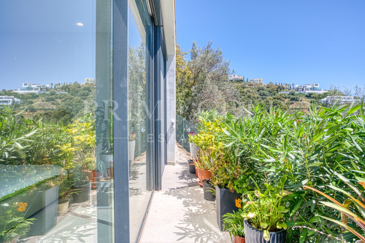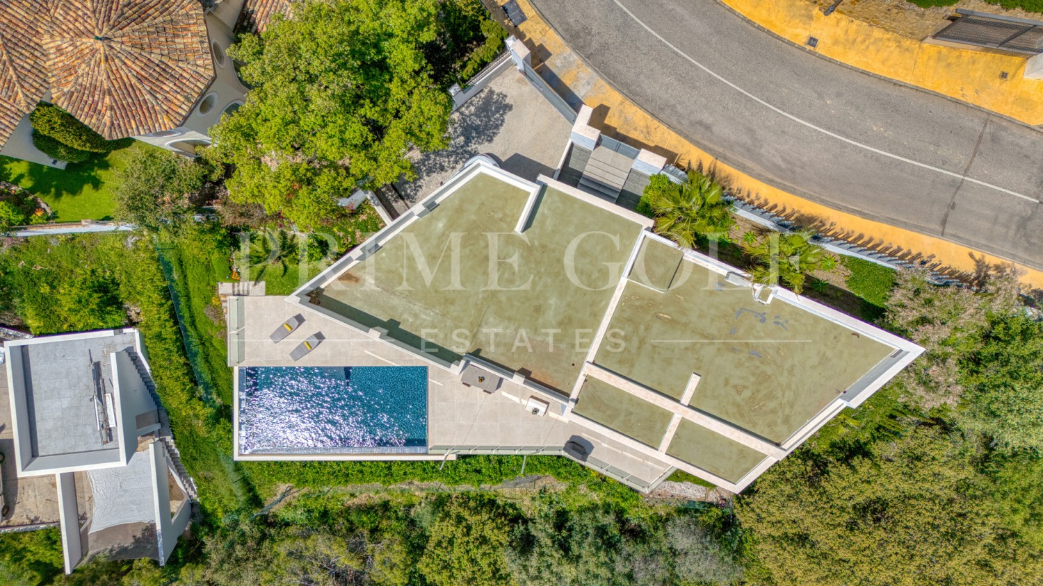 Perched in the tranquil hills of Altos de Los Monteros, just a short drive from Marbella’s centre and the beach. This three storey designer villa marries top-quality materials and uninterrupted sea views through floor-to-ceiling windows. A dramatic staircase or private elevator leads down into an open living and kitchen space that flows seamlessly onto a sprawling terrace with heated infinity pool, including a pool cover. Above, the master suite enjoys its own terrace, spa-style ensuite and a bright office, while the middle level hosts a second ensuite bedroom. The lower floor offers two further ensuite bedrooms, two generous storage rooms and a laundry room. Other features include; water-based underfloor heating, aerothermal climate control, electric blinds and a secure carport for two cars. This property has been meticulously specified to deliver the ultimate in contemporary luxury living.