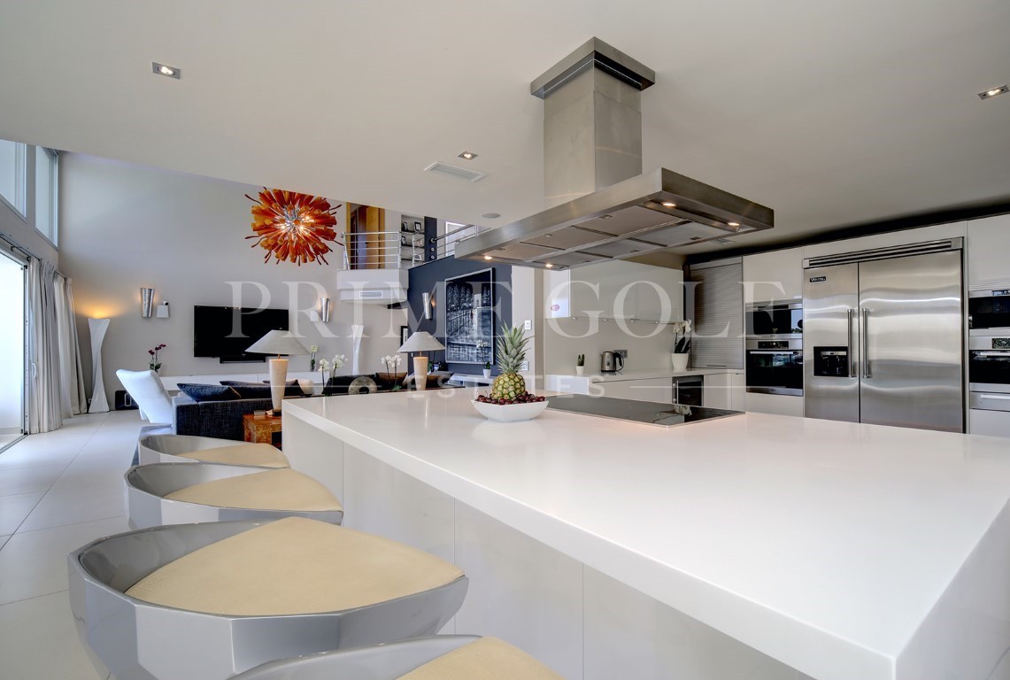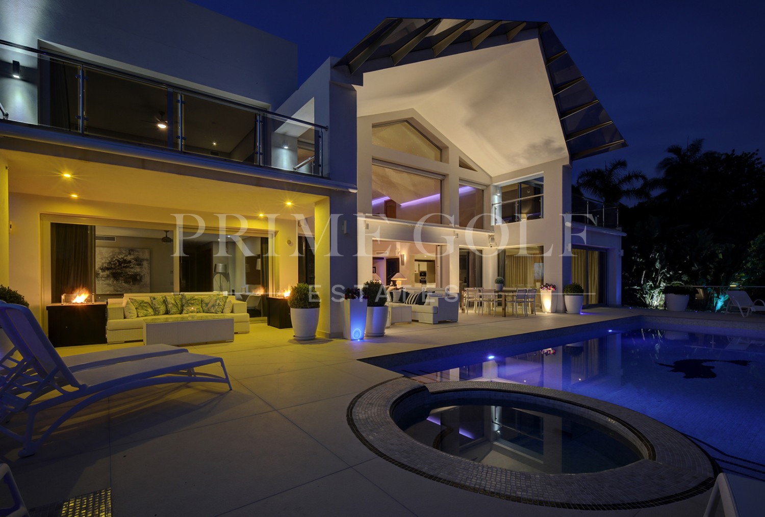Stunning five-bedroom villa in the exclusive Golf Valley of Nueva Andalucia, Marbella. Located in an exclusive gated area of Los Naranjos, with 24hr security and just a short drive to the beach and local amenities. This magnificent property is distrusted over three levels. The entrance level has a large open plan modern kitchen with dining area that flows into the spacious sitting room, with its stunning double height ceilings, which in turn leads straight out onto the west facing terrace and pool area; guest suite; guest toilet; and lounge room. The first floor has two bedrooms with en suite bathrooms and private terraces. The lower level of the property has two bedrooms with en suite bathrooms; a gym; cinema room; laundry room; and access to the double garage. Other features include driveway for four cars, hot and cold air conditioning, fitted wardrobes and private garage for two cars.
