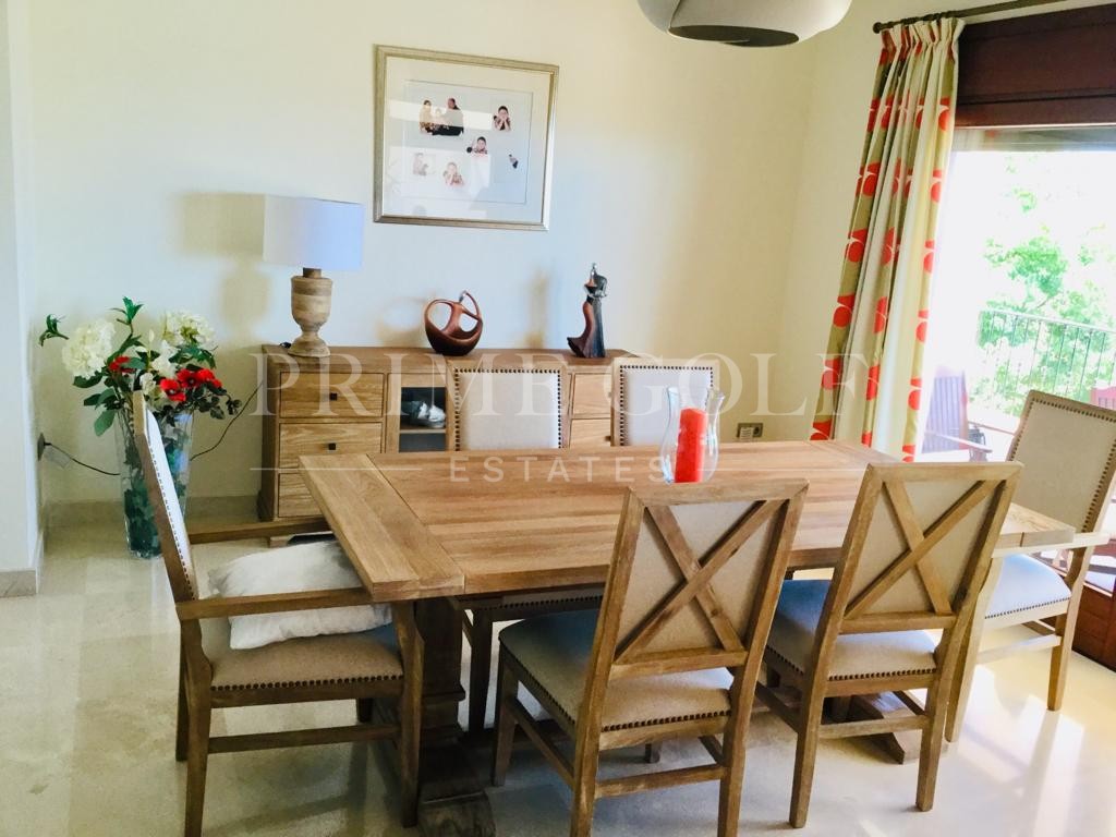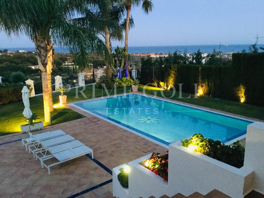Fantastic six bedroom, south facing villa located in the prestigious community Los Flamingos, Benahavis. Located in a sought-after area with 24hr security and only a short drive to the beach and local amenities. The property is distributed over three levels and boasts panoramic views to the golf mountains and sea. The property consists of a living room; dining room; fully fitted kitchen; five bedrooms en suite; and a guest apartment with kitchenette. There is also private terraces, garden and swimming pool as well as luxurious amenities such as an indoor heated pool, games room, sauna, jacuzzi and cinema room. Other features include hot and cold air conditioning, underfloor heating throughout, garage for six cars, alarm system and fitted wardrobes throughout.