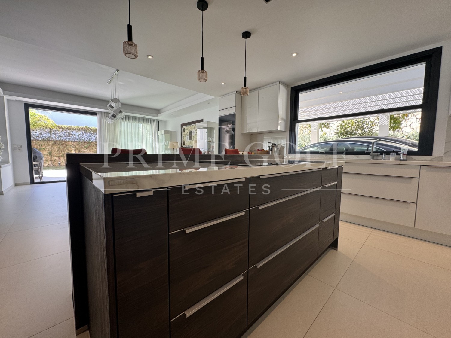 This stunning modern villa is situated in the well-established residential area of Monte Biarritz, just one kilometer from San Pedro de Alcántara. Offering convenient access to the N-340 motorway and located at the gateway to Benahavís, this property provides the perfect balance of tranquility and connectivity.